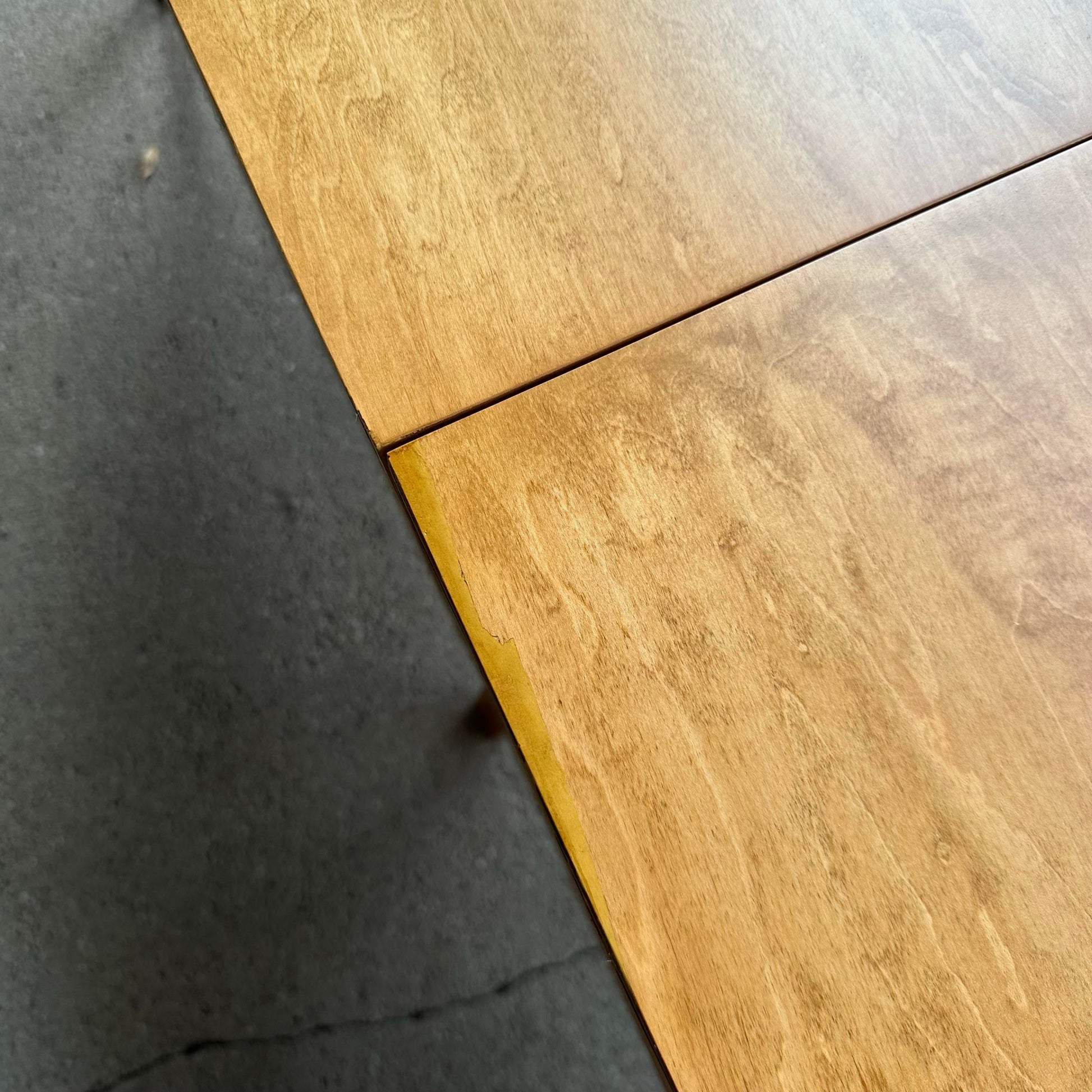 This set of drawers is early modern example circa early 1950s. They’ve been fully restored. They have bent wood legs in the most interesting handle pulls with the contrasting woods that pop in to accept your hand. Most likely made of maple or another blonde wood. There no makers mark on the dresser.