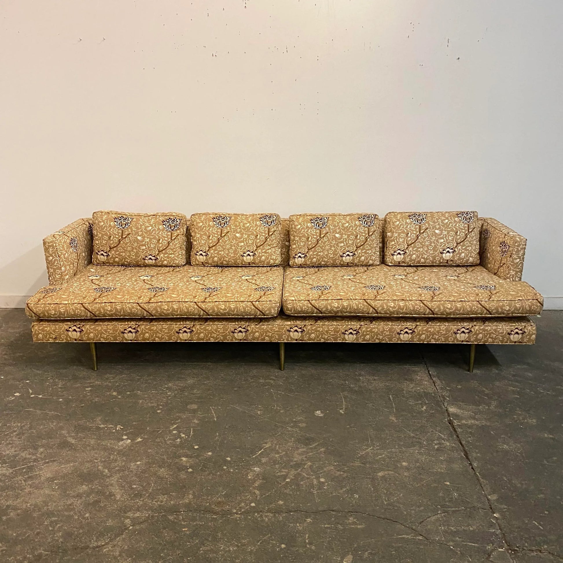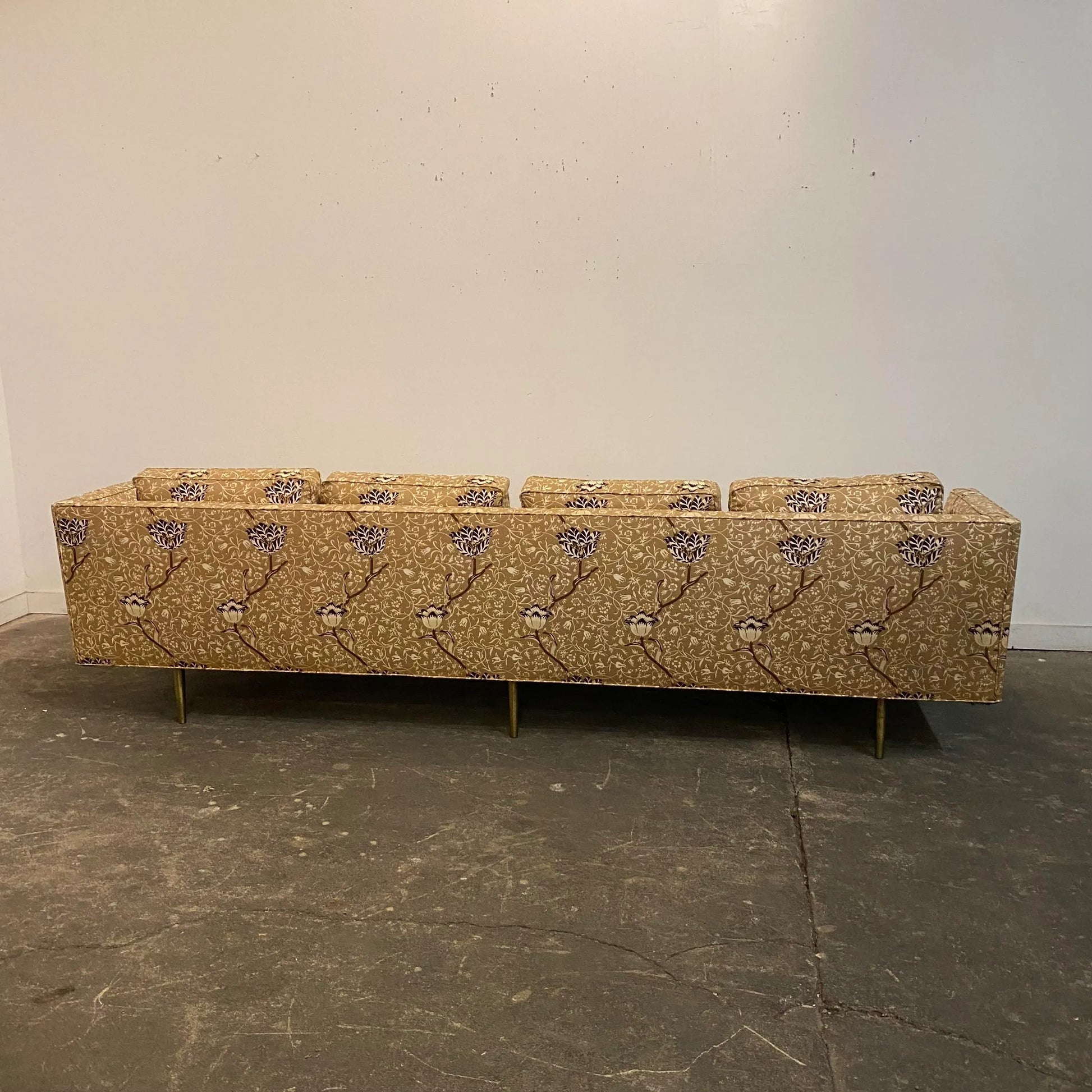 Mid Century Modern Edward Wormley for Dunbar Sofa Recovered in William Morris Fabric Brass Legs