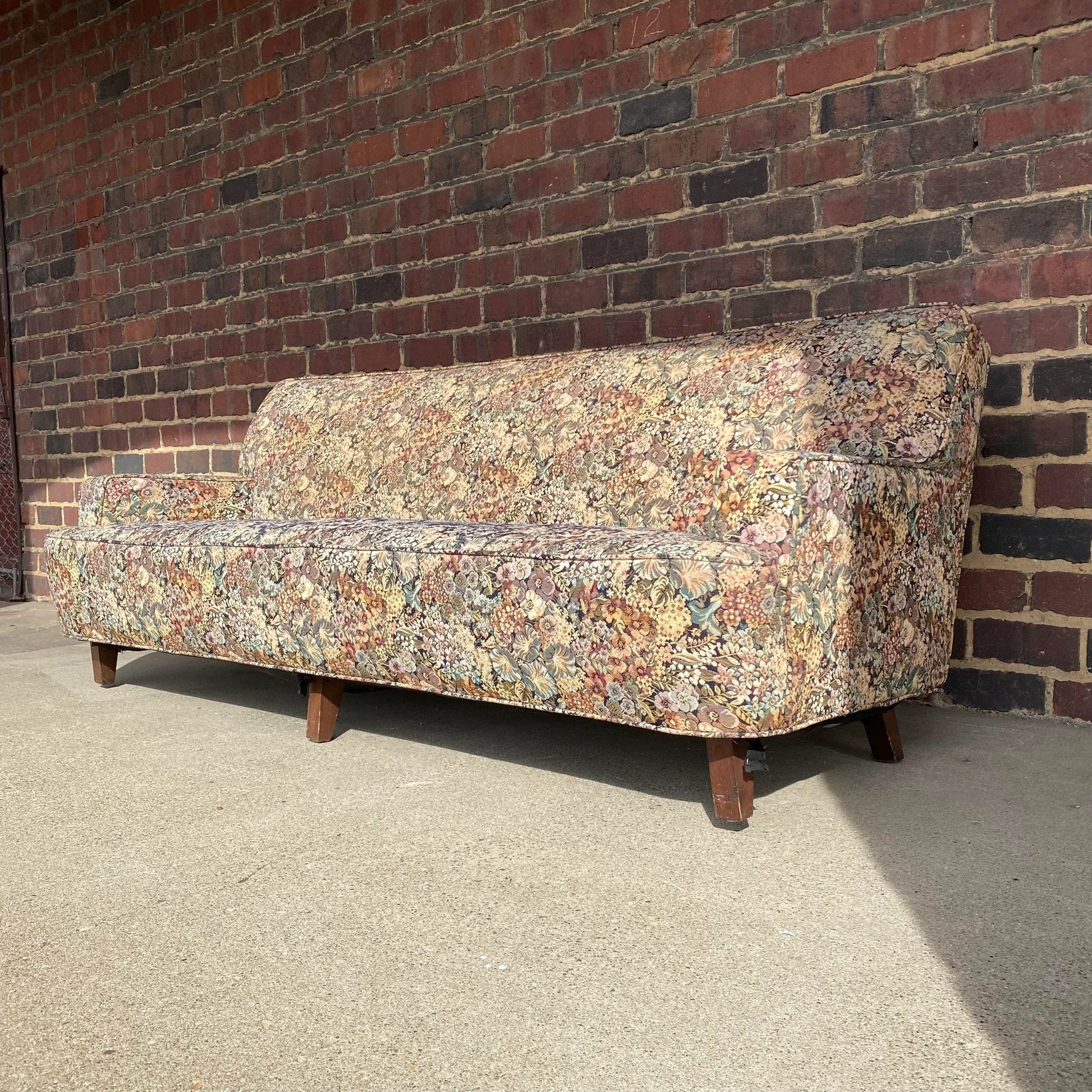 Very early George Nelson for Herman Miller sofa. This is design from the very beginning of the 50’s and has some of those 40’s lines mixed with the early modern. Sofa was reupholstered at some time in what appears to be the 80’s and needs redone again.