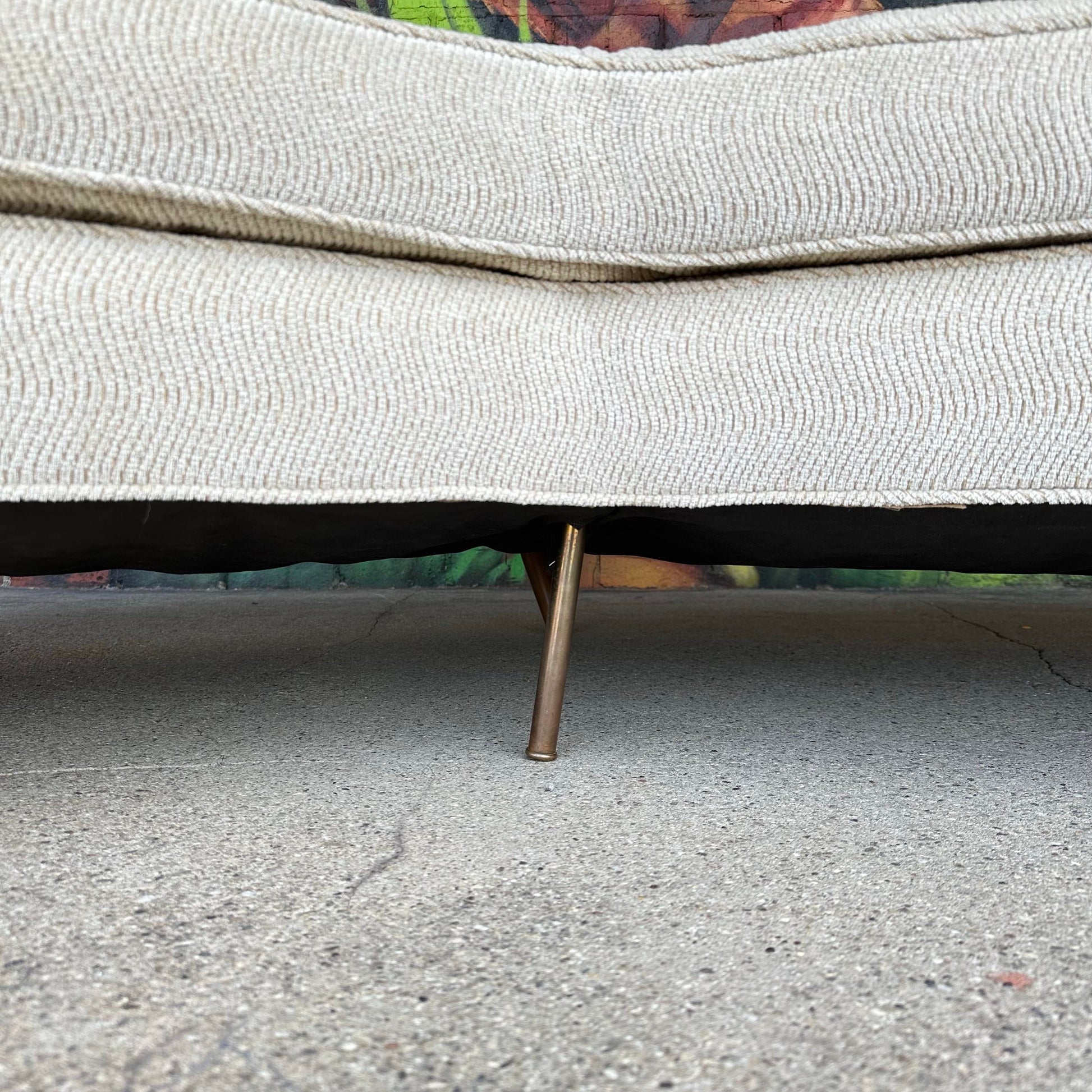 This Angular Sofa by Harvey Probber features a beautiful off-white fabric. comfortable enough to sleep on and built with heirloom quality construction and will last many lifetime.