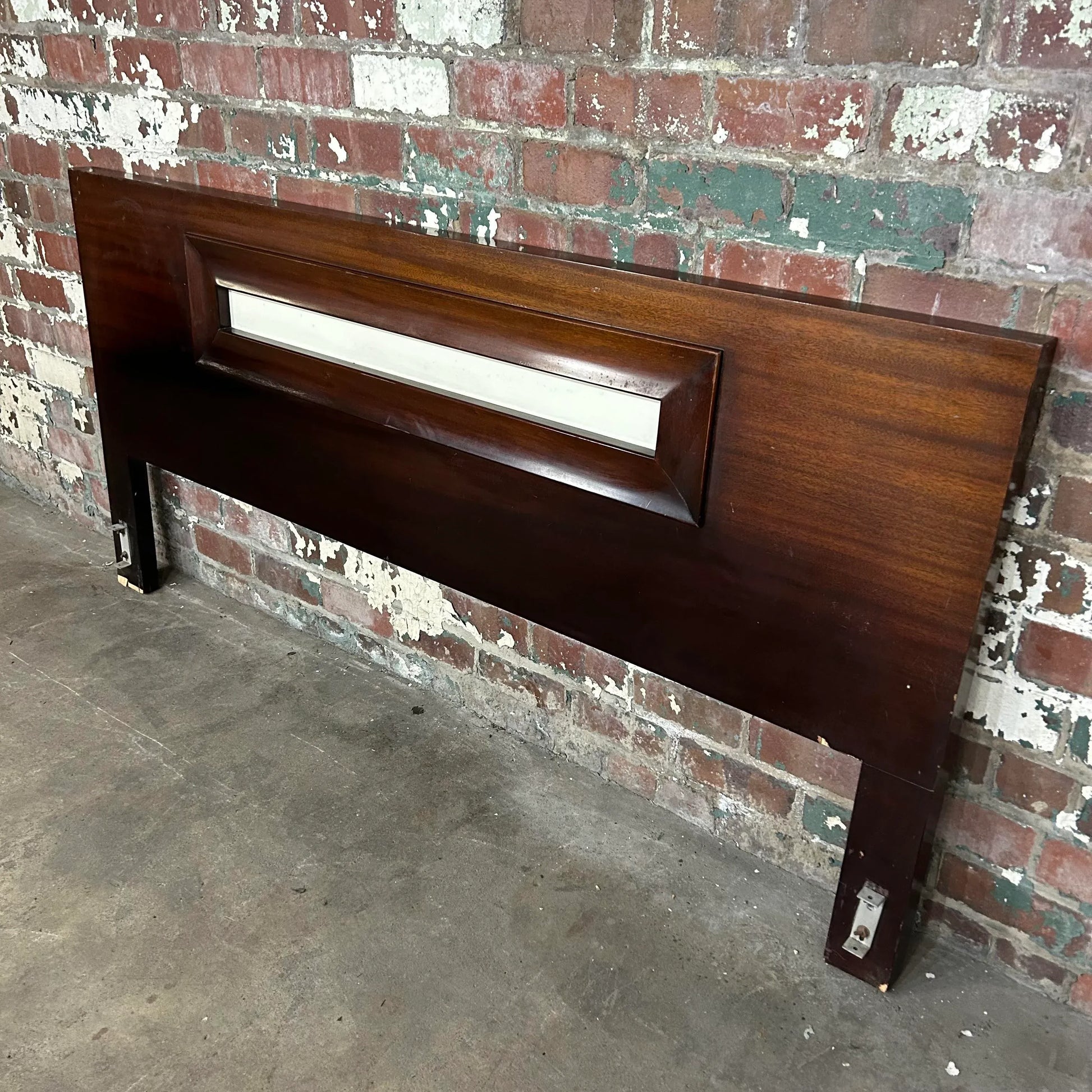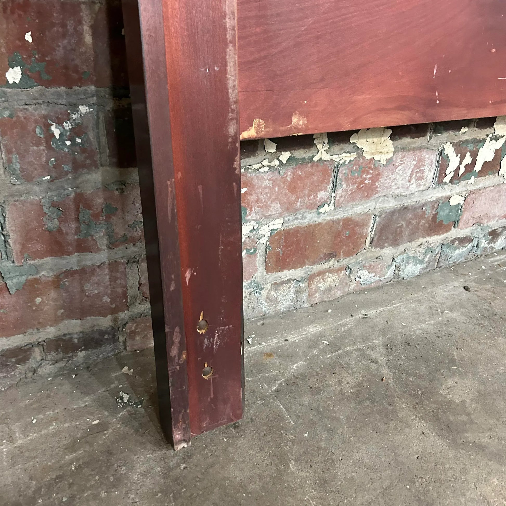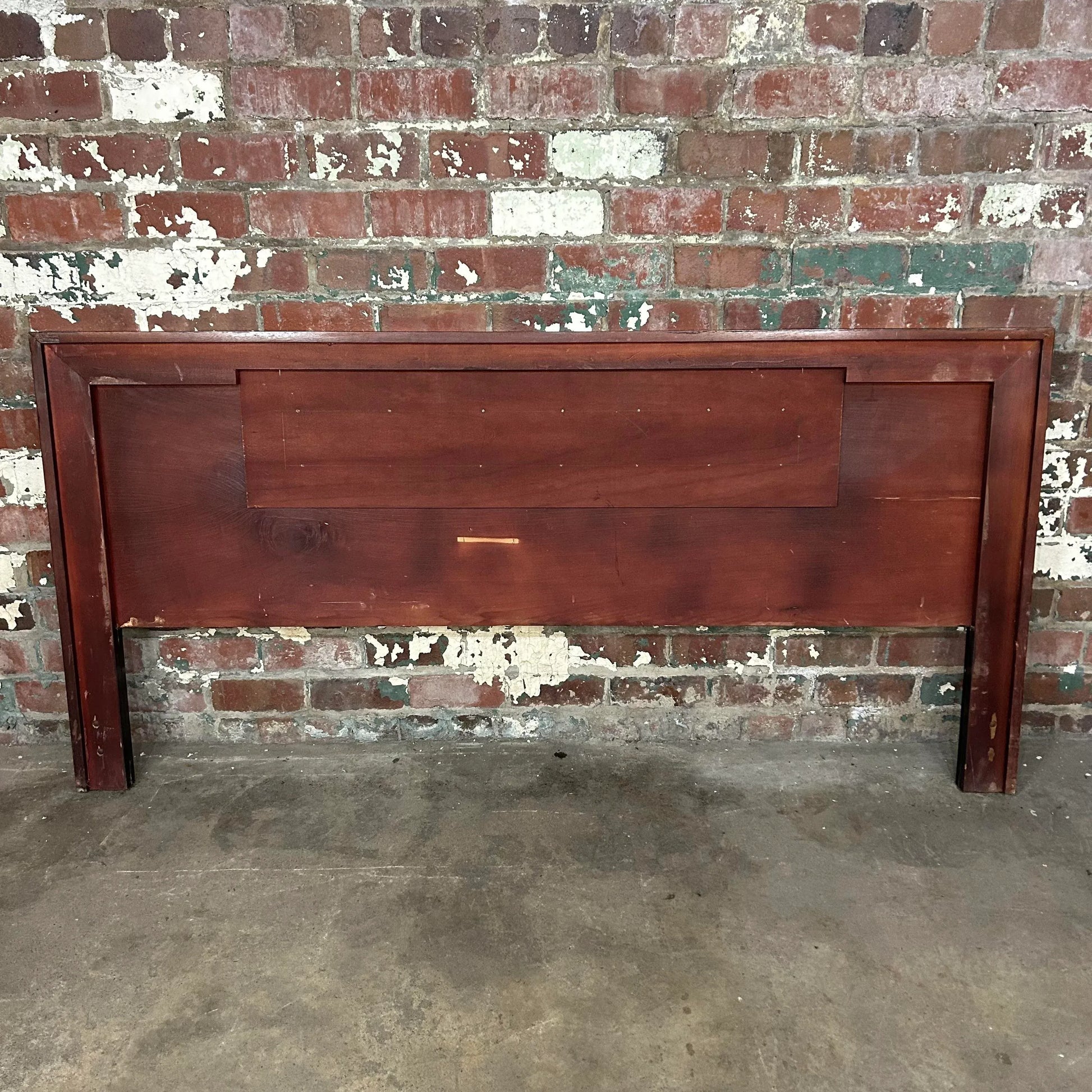 This king sized headboard is minimalistic in shape but stunning in design. It is crafted of mahogany and has the wood’s classic red tone and straight grain. This piece features a cutout design in the center