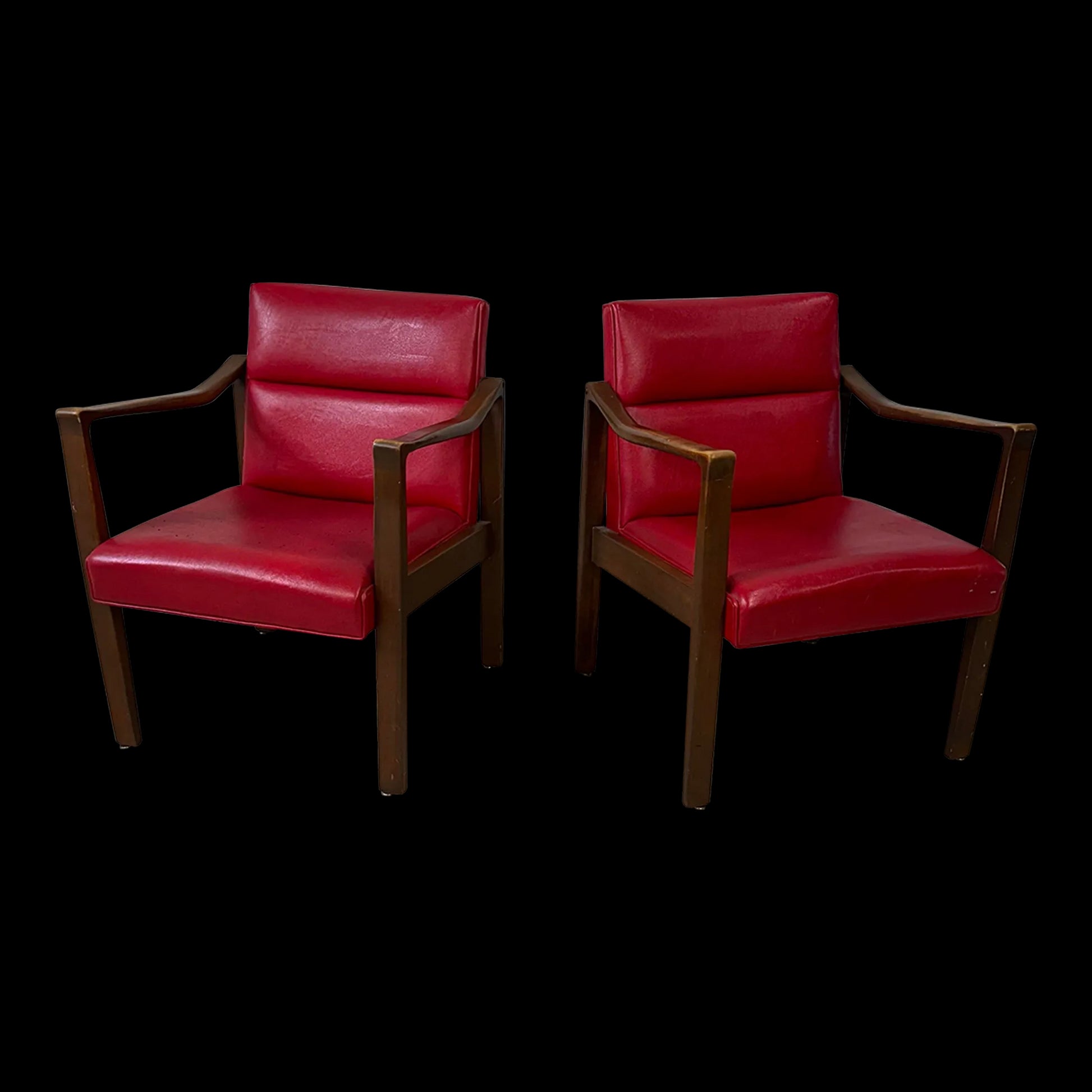 Mid Century Modern Pair of Red Vinyl Arm Chairs