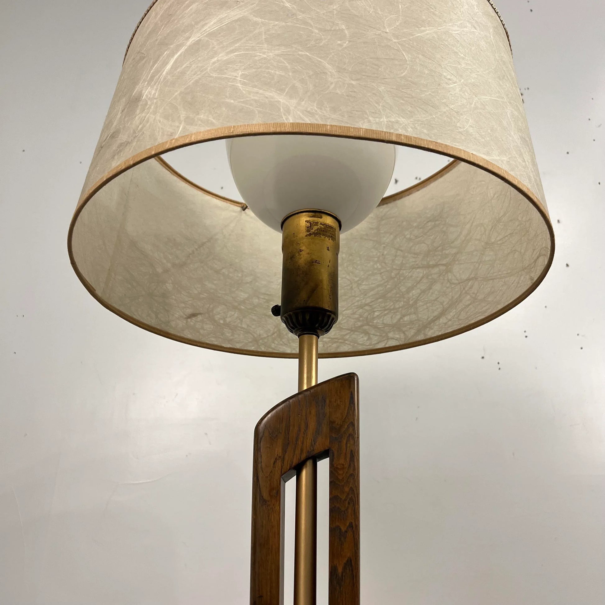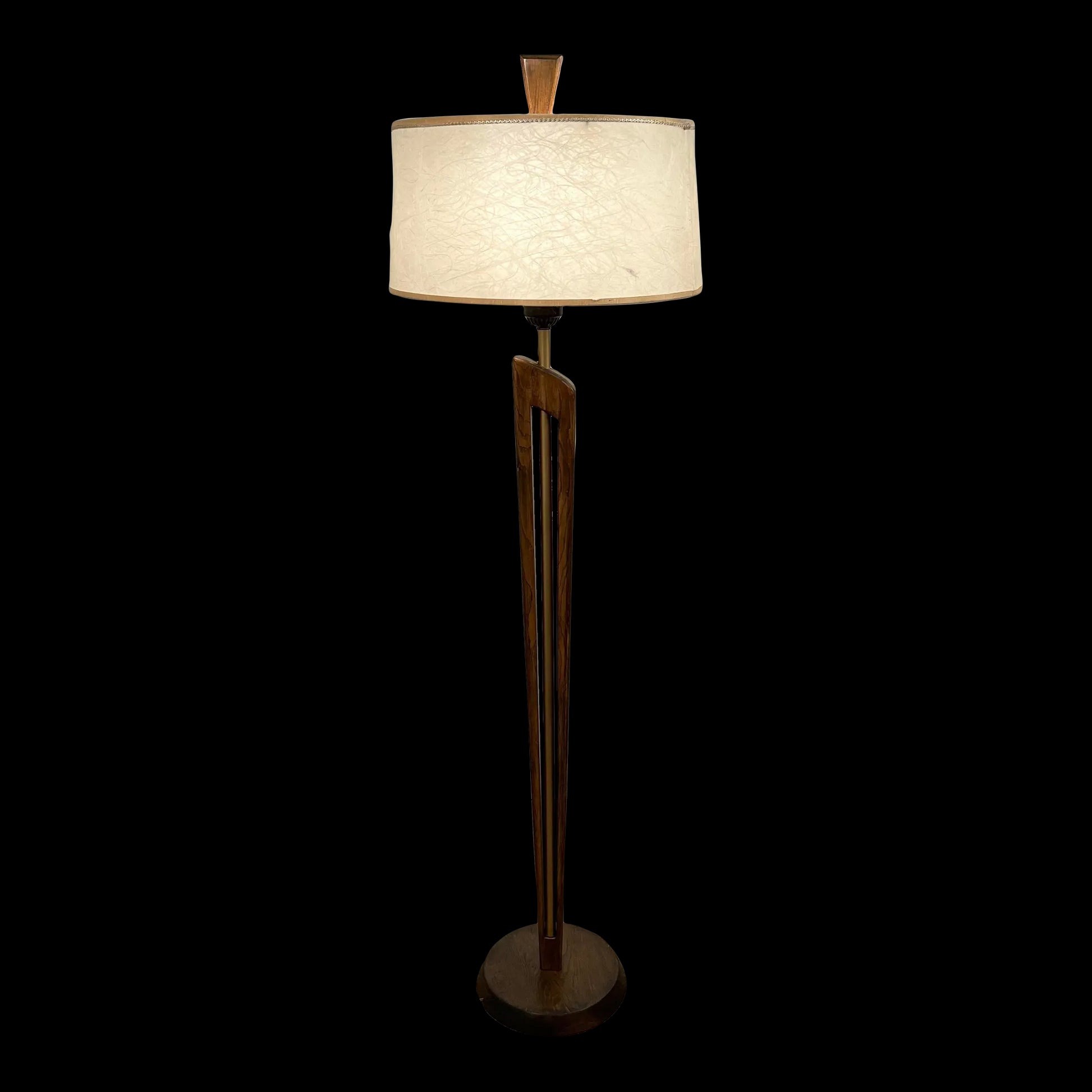 Mid Century Modern Wooden and Brass Floor Lamp