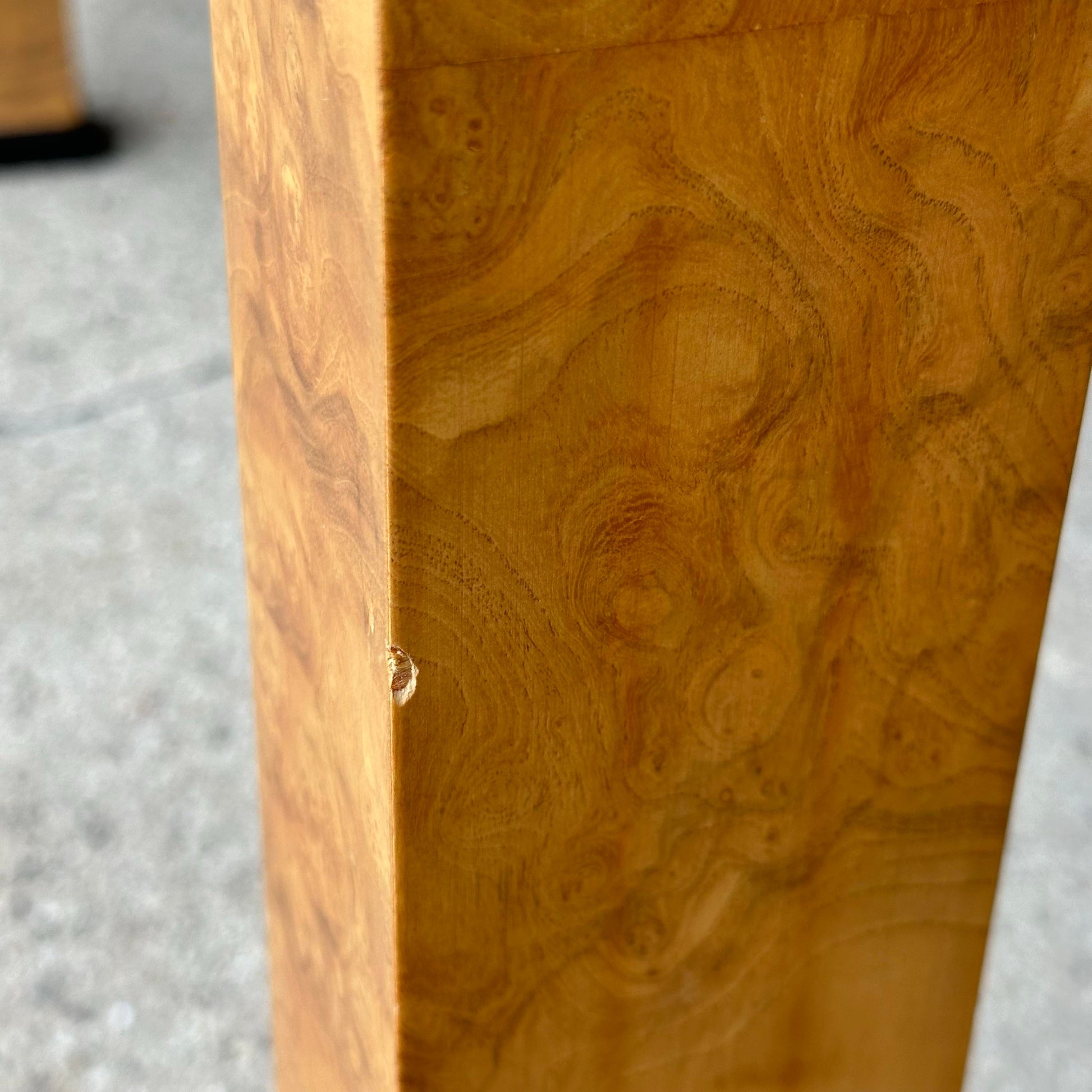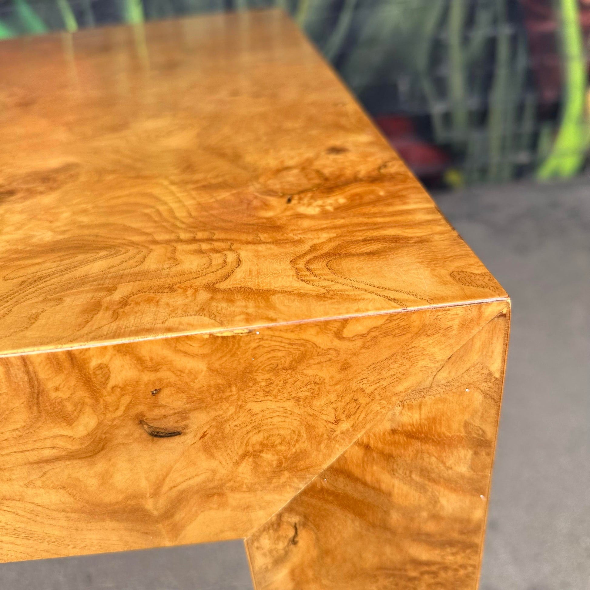 Mid-century modern burlwood dining table by Milo Baughman with 2 leaves.