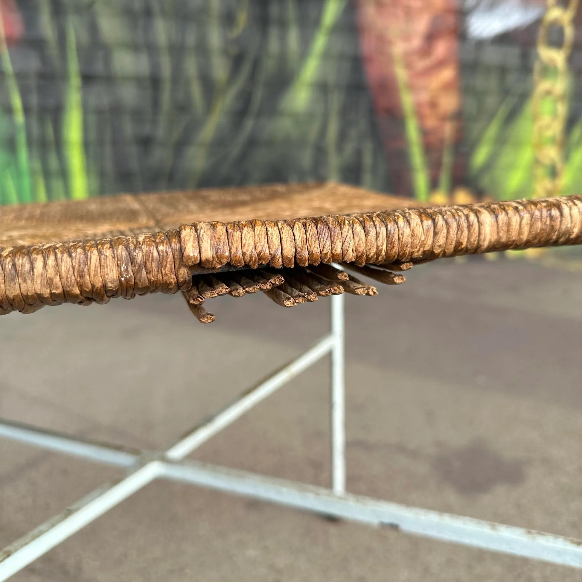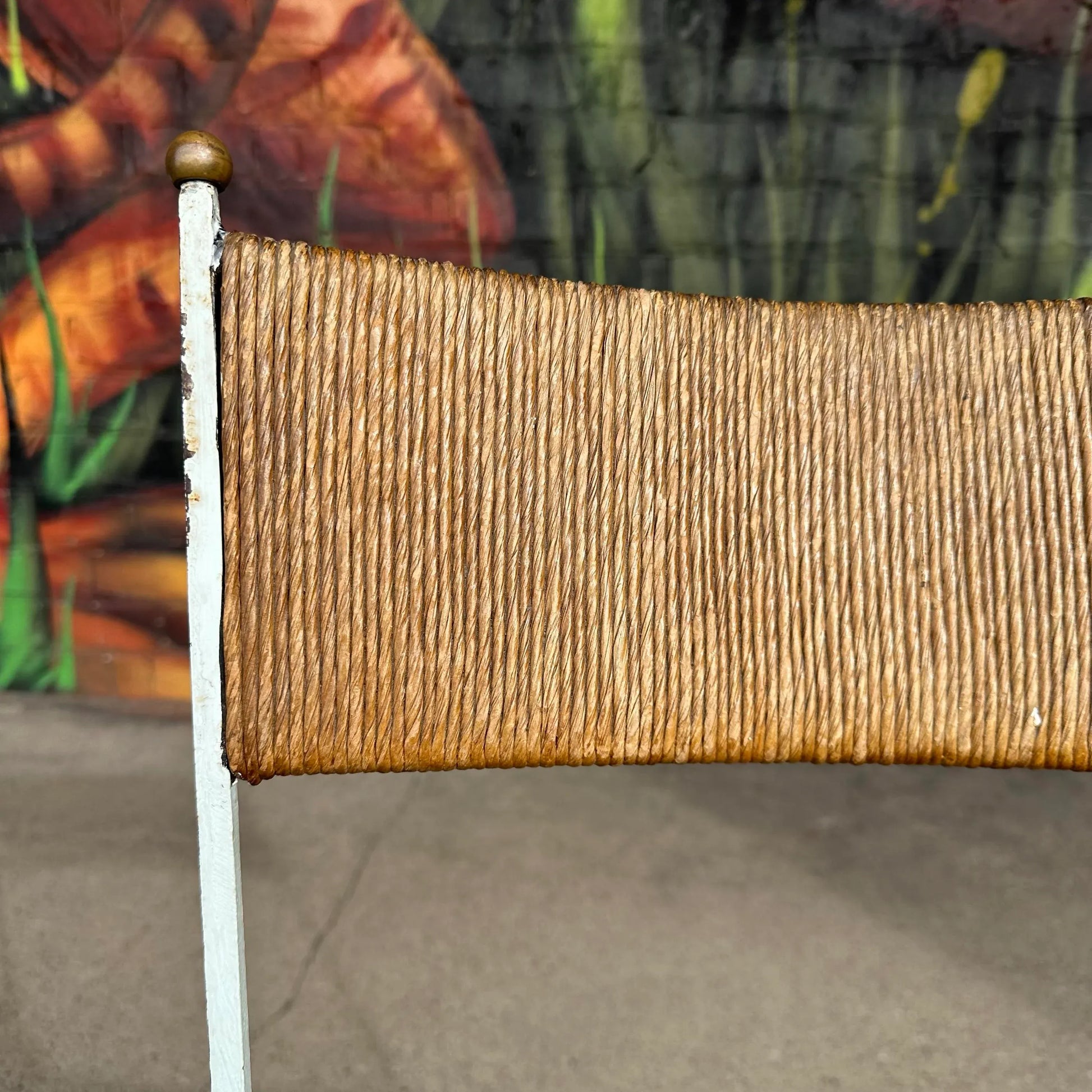 Early 1950s Iron & Rush Rare Accent Chair by Milo Baughman for Murray Furniture. The chair is made from iron with brass circular caps on the legs and backrest. The seat is made from woven rush. The chair does not have a makers mark.