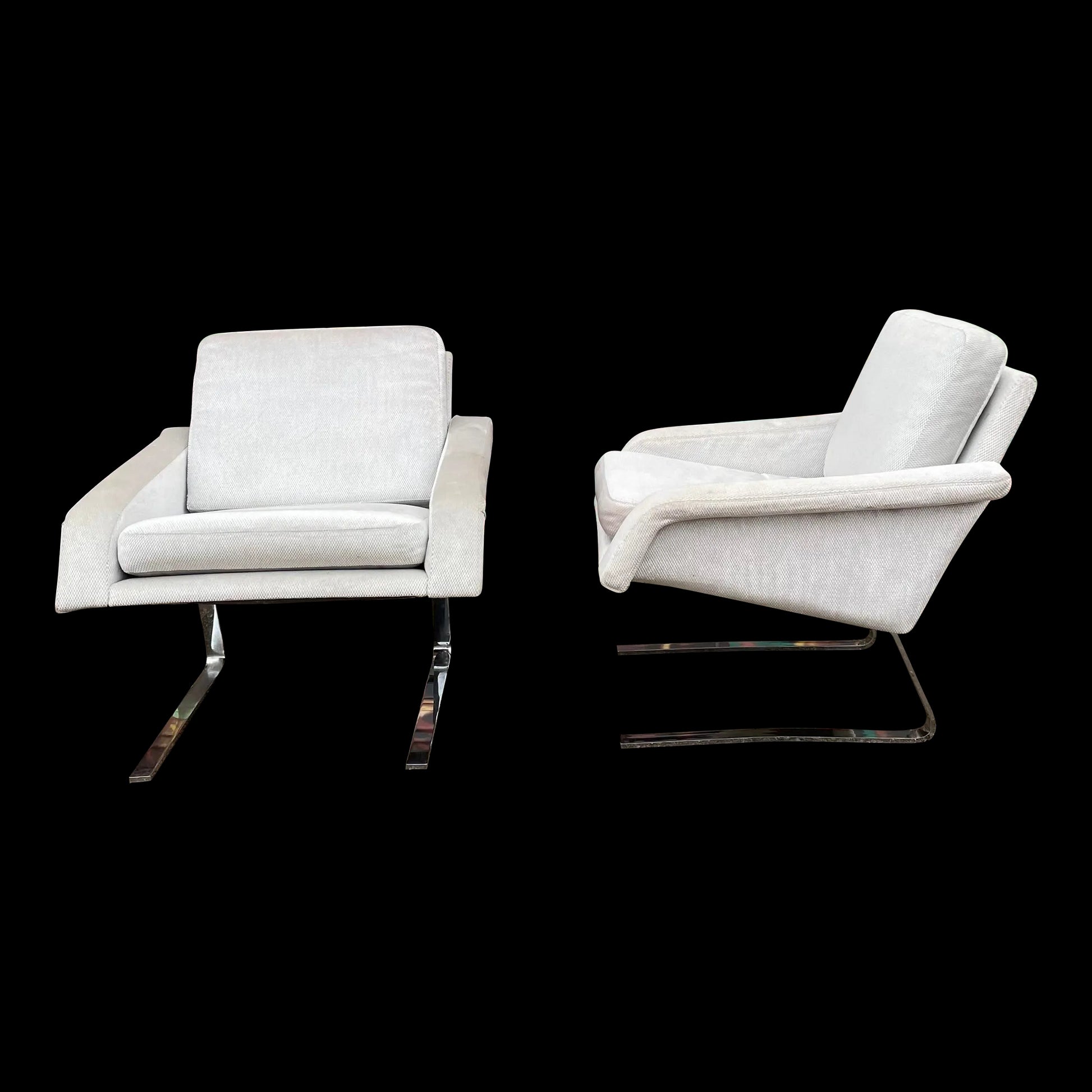 Pair of 1980’s Chrome Base Lounge Chairs Cantilevered