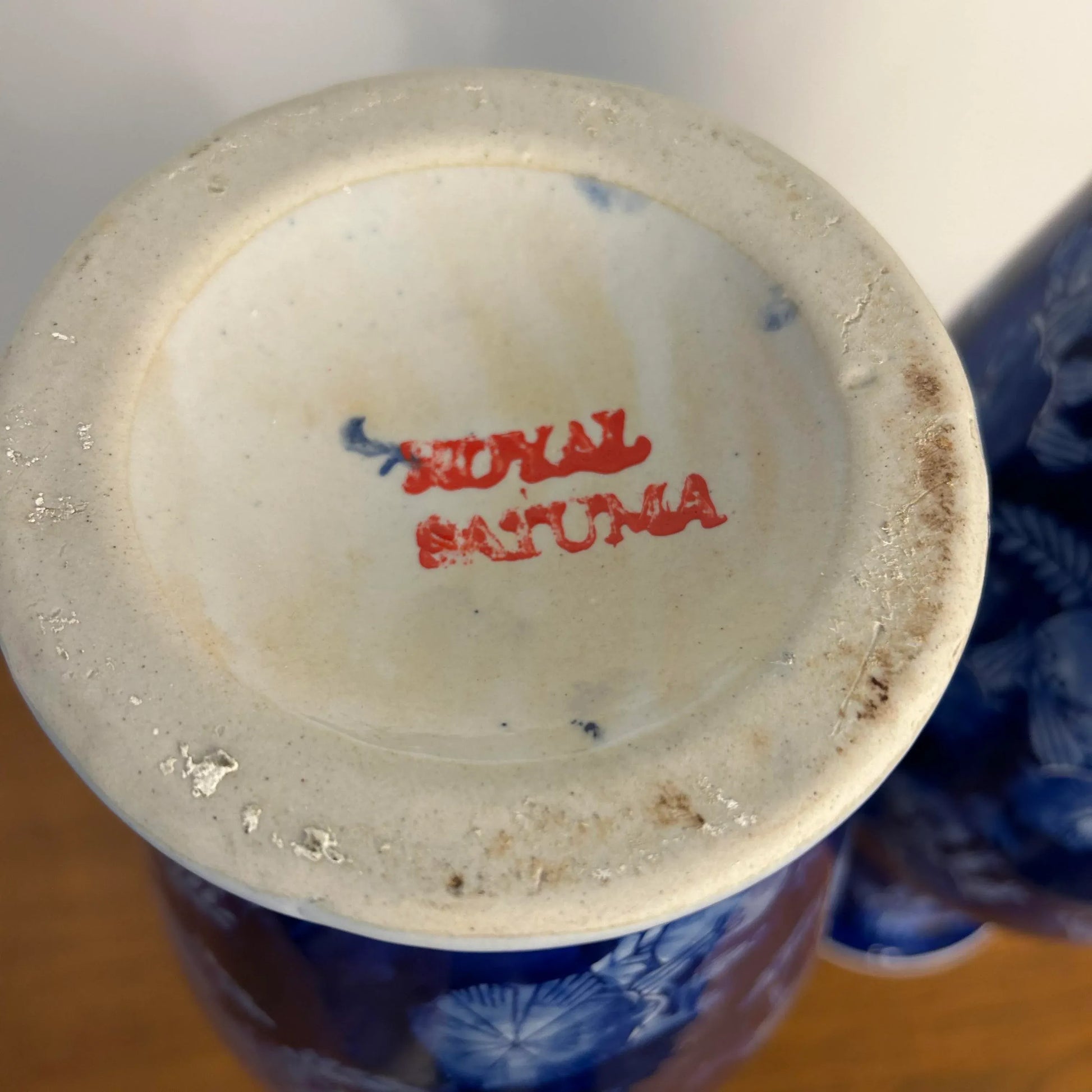 Pair of ceramic vases in blue and white believe to be from the 70’s