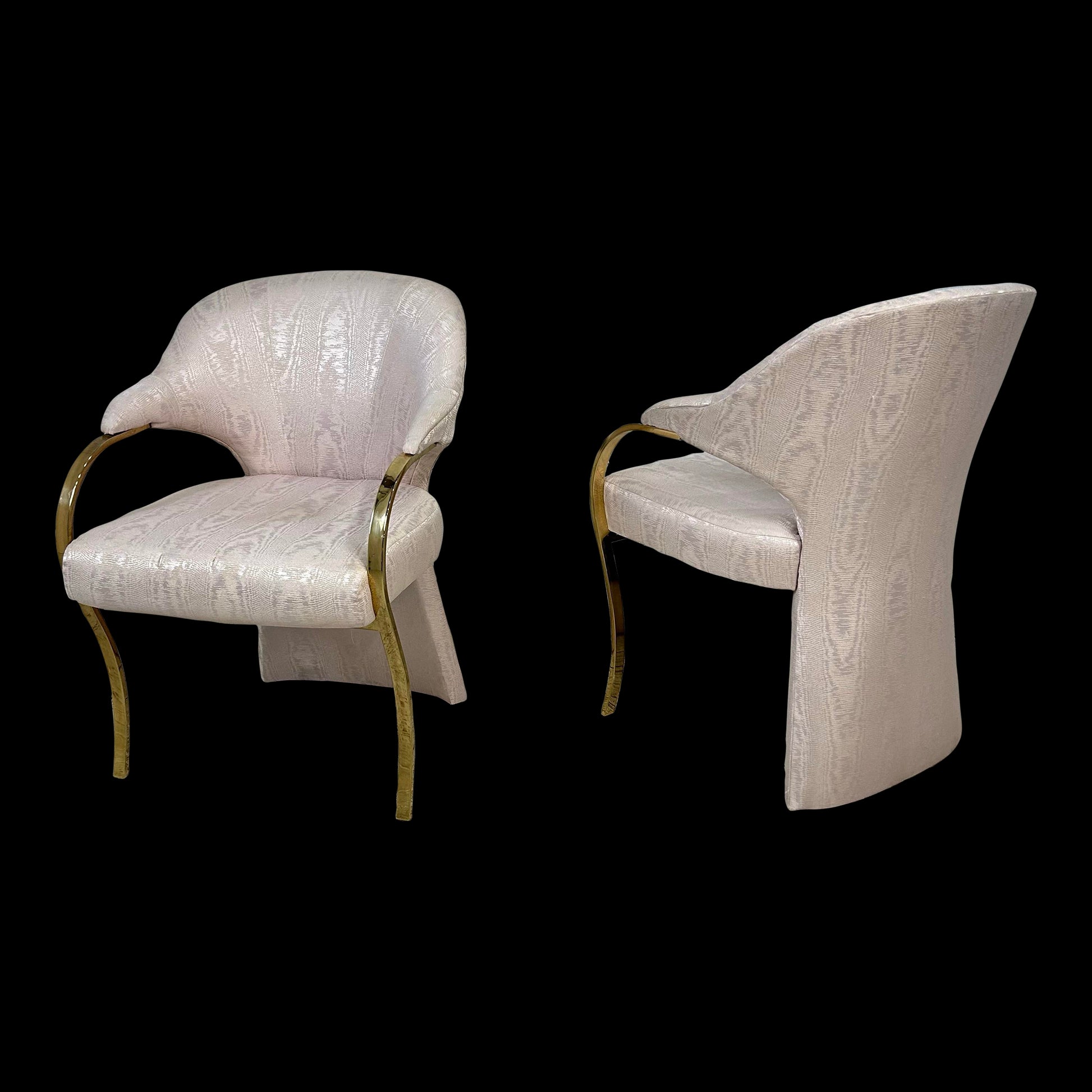 Pair of Carson’s Art Deco Hollywood Regency Brass Arm Cantilever Chairs
