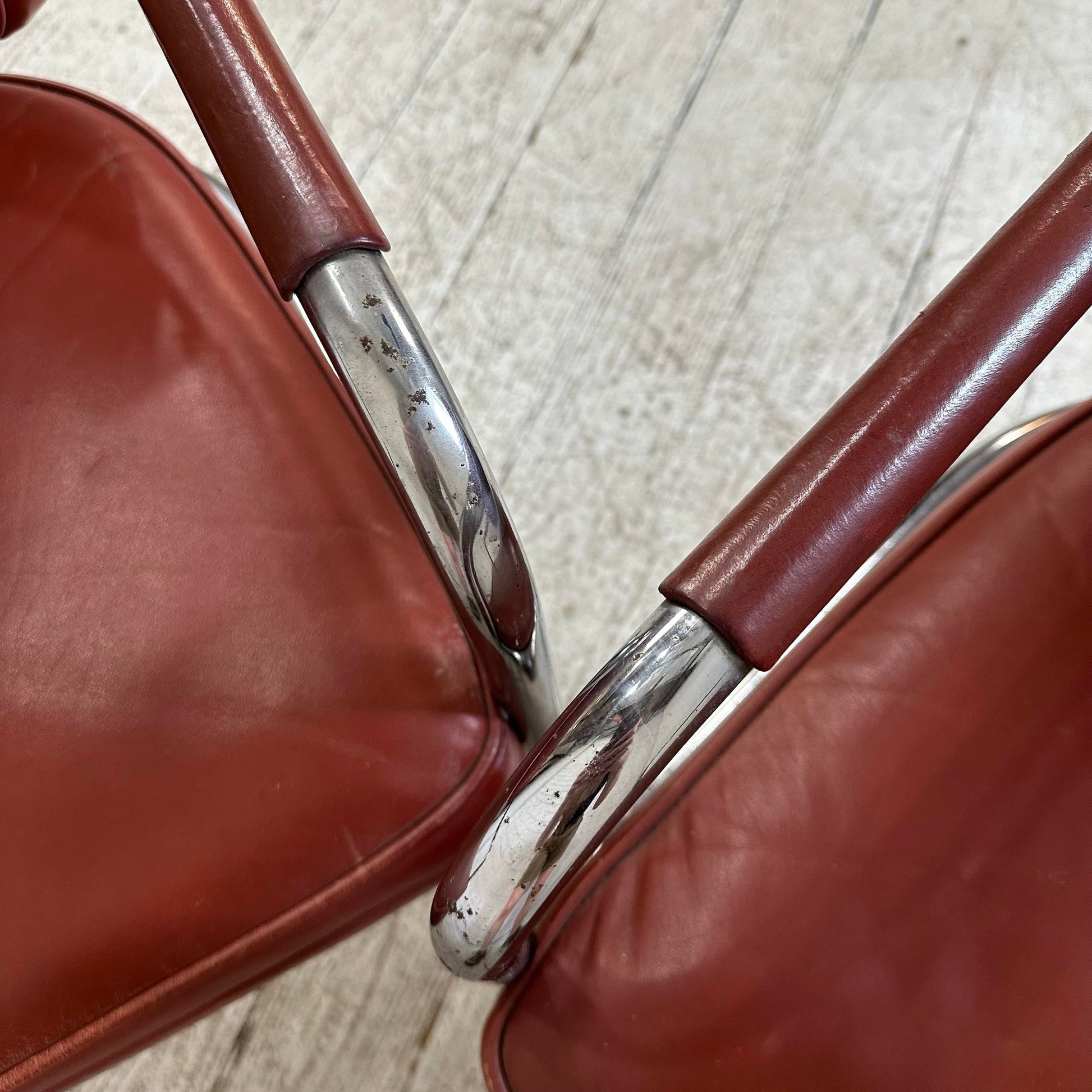 Machine age tubular chrome chairs with real leather upholstery. The cantilevered design provides exceptional comfort