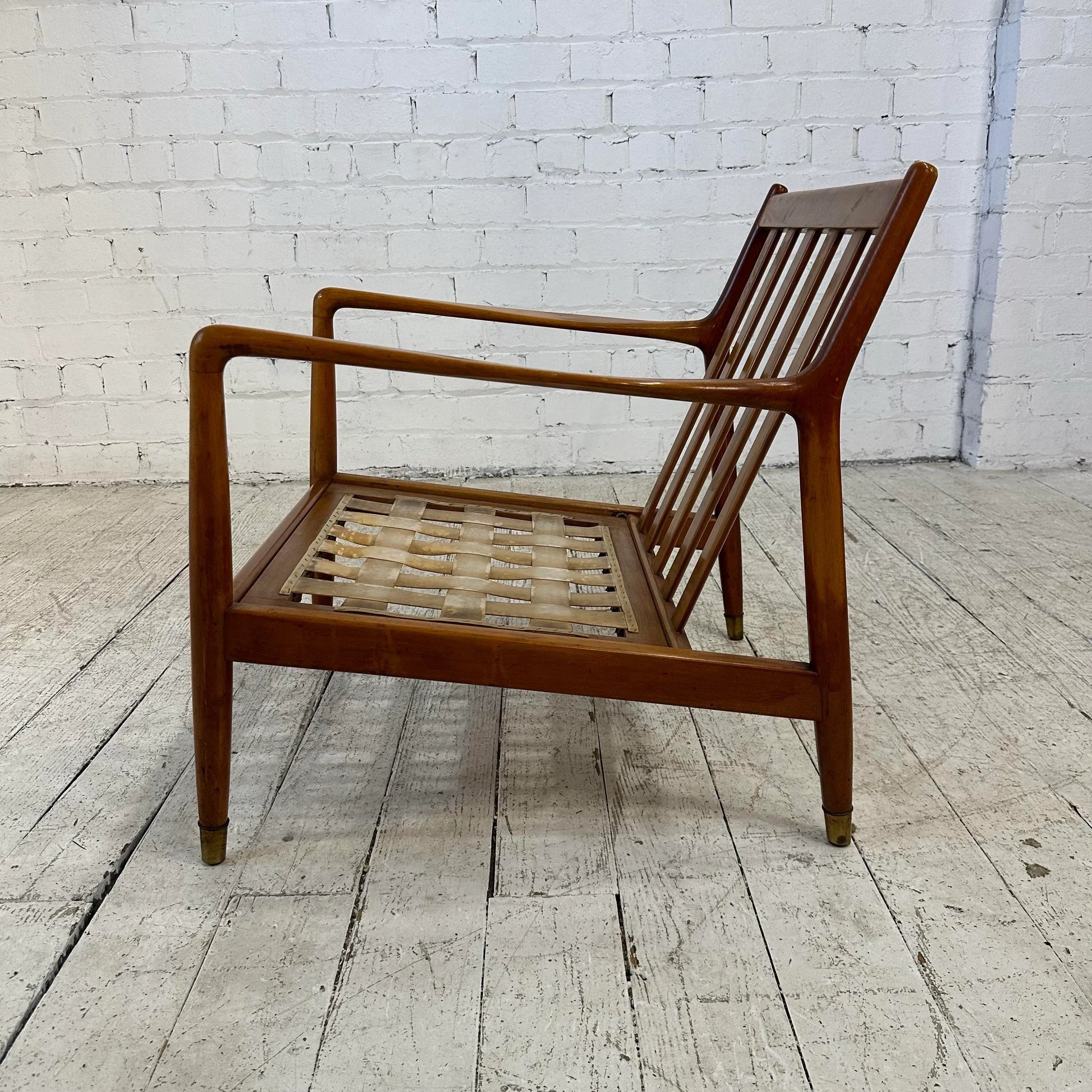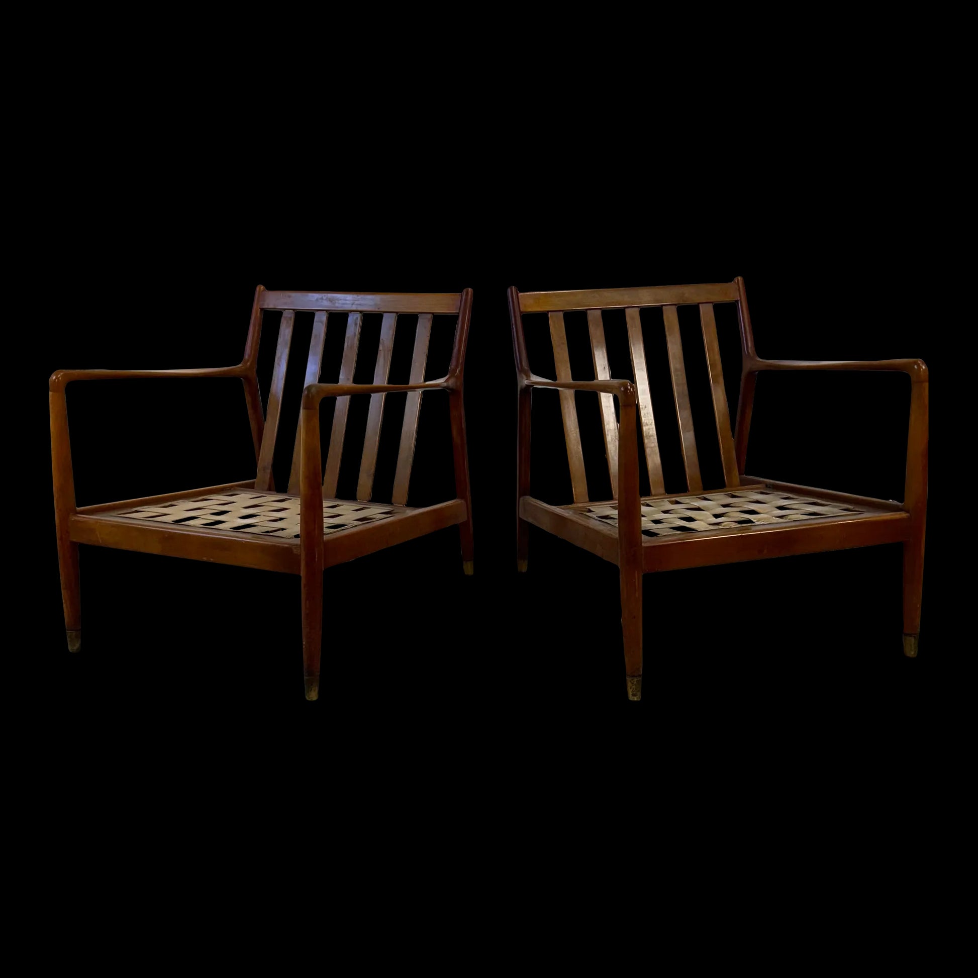 This  pair of mid-century Danish modern club chairs, designed by Folke Ohlsson, embodies timeless elegance and comfort. Featuring sleek, sculpted wood frames, these chairs are a perfect blend of form and function. The frames are complemented by stylish brass-capped feet, adding a touch of sophistication. With their clean lines and minimalist design, these chairs offer a classic Scandinavian aesthetic that fits seamlessly into any modern interior. Ideal for those who appreciate high-quality craftsmanship and understated luxury.
