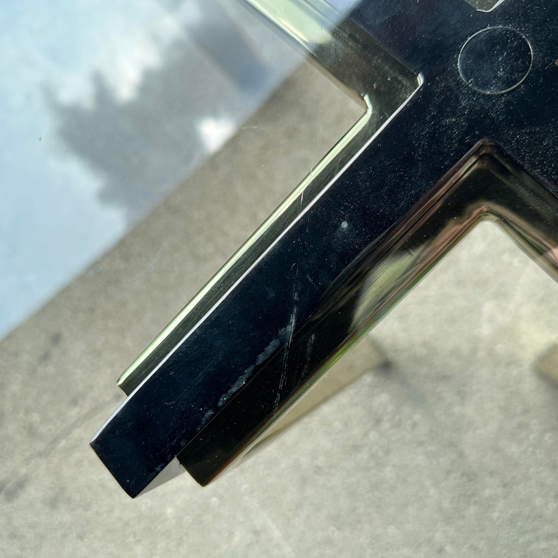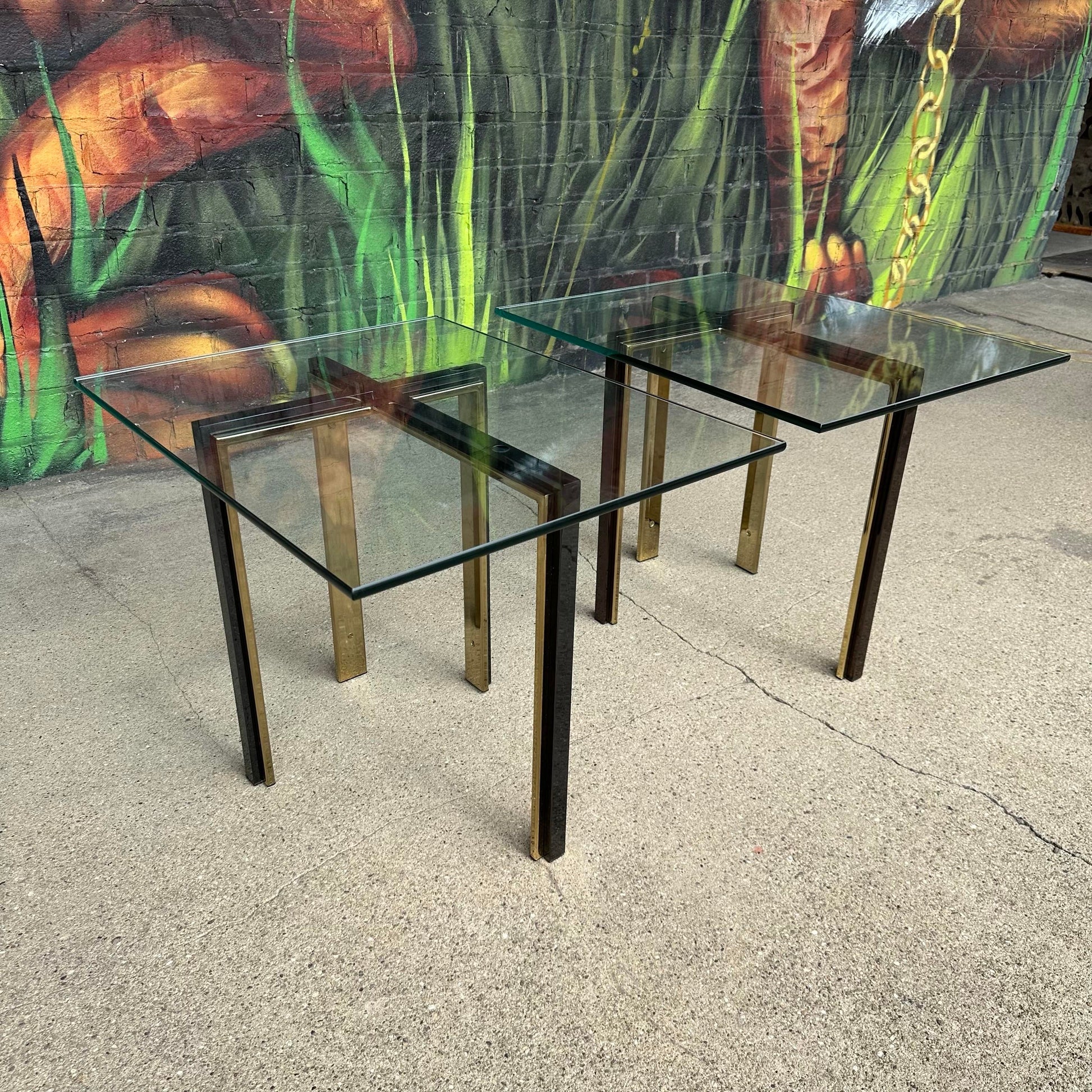 Pair of Glass and Brass and Smoked Chrome Solid Steel Side Tables