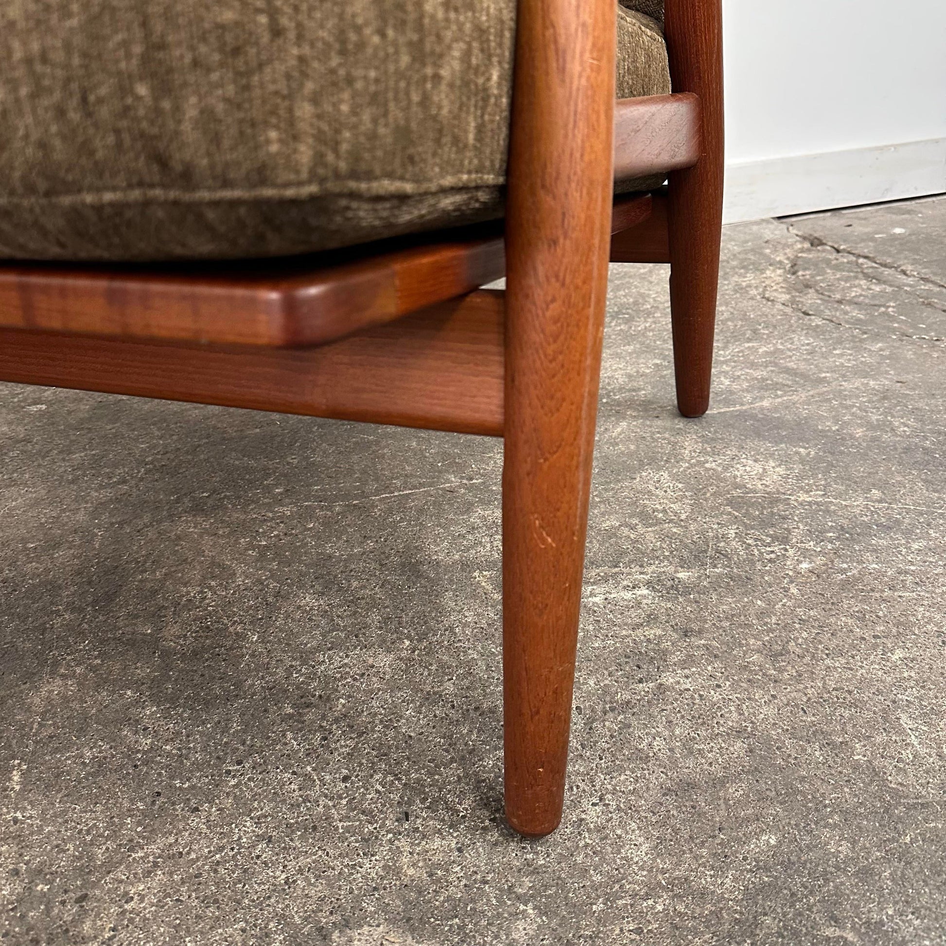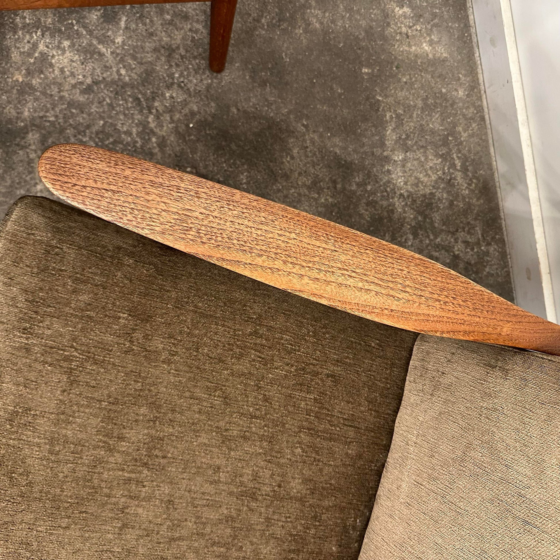Pair of Mid century modern Hans Wegner GE-270 Lounge Chair by GETAMA GEDSTED made in Denmark. This chair features a teak frame and upholstered seat and back rest. The chairs has a stamp on the bottom of the frame.
