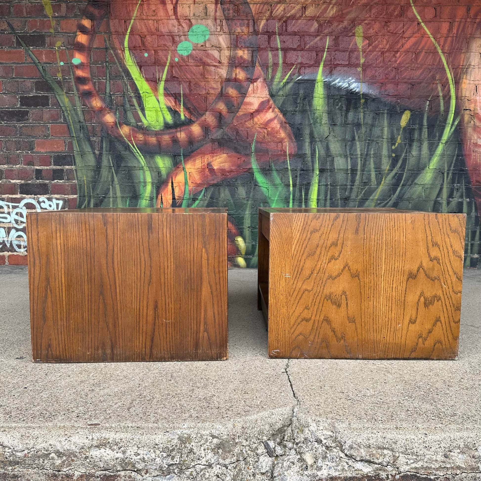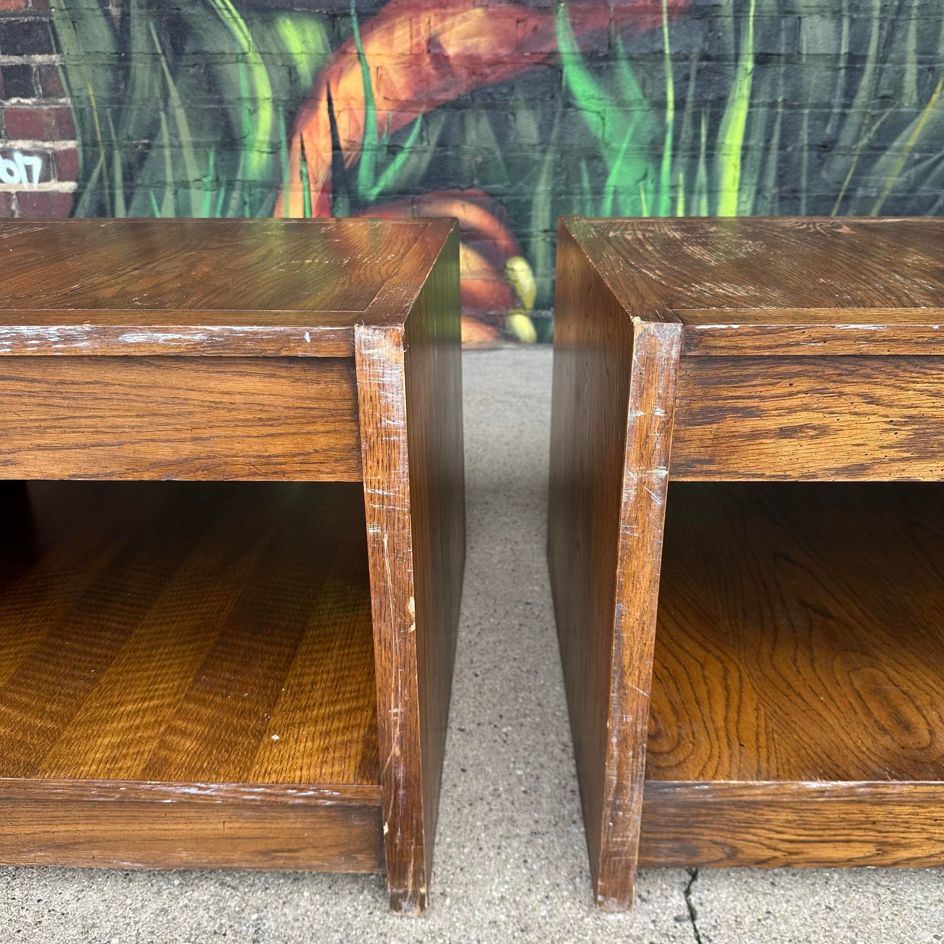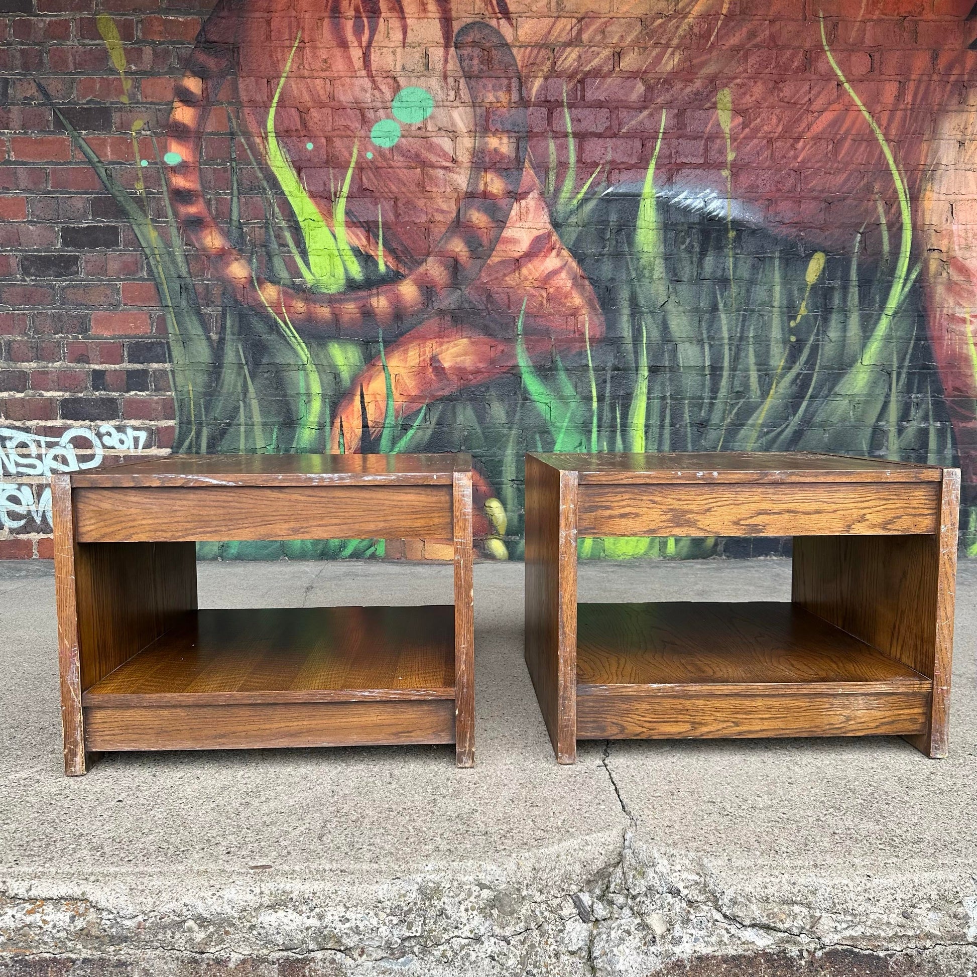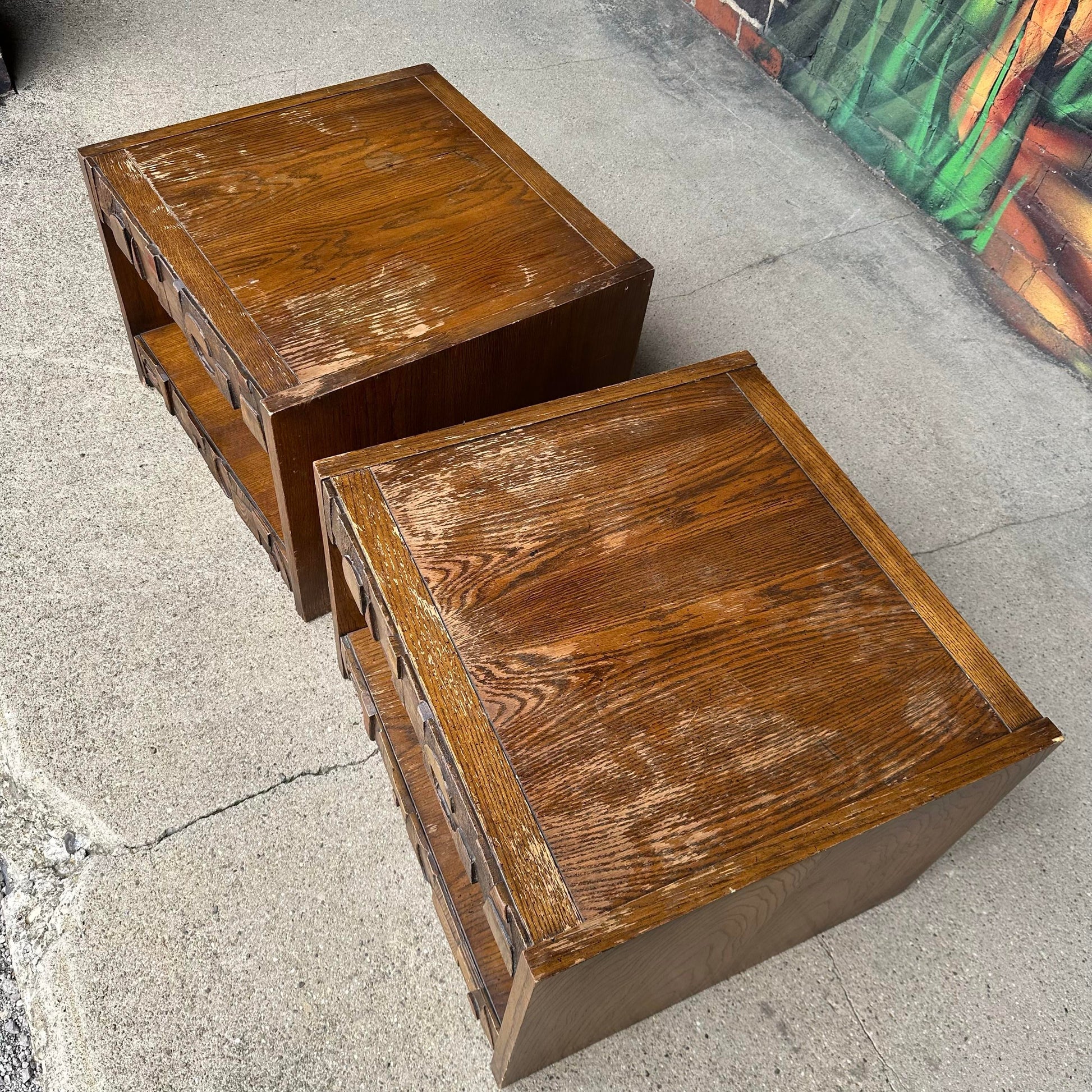 Pair of Lane Brutalist Square End Tables – Late Mid-Century Modern
