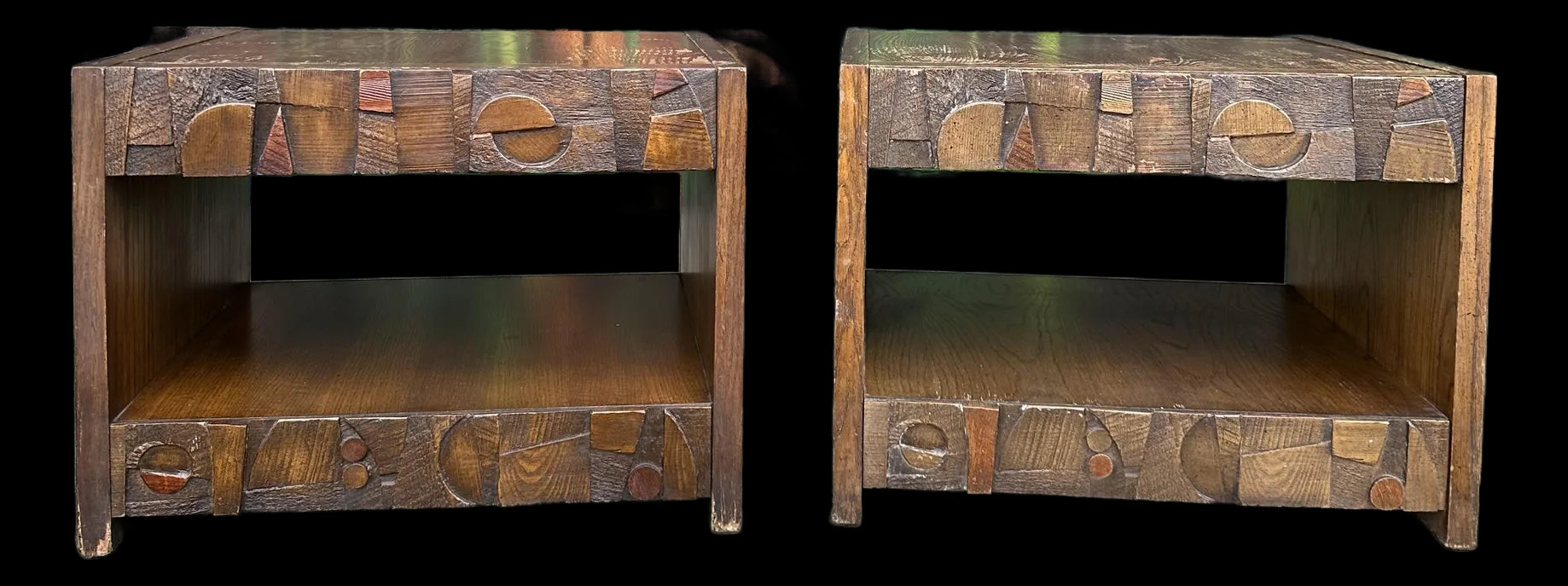 The handcrafted, blocky design offers visual depth and texture, while the square tops provide a functional surface for lamps, books, or curated objects. Perfect as end tables or striking standalone accents, they bring a strong and artistic presence to any space.