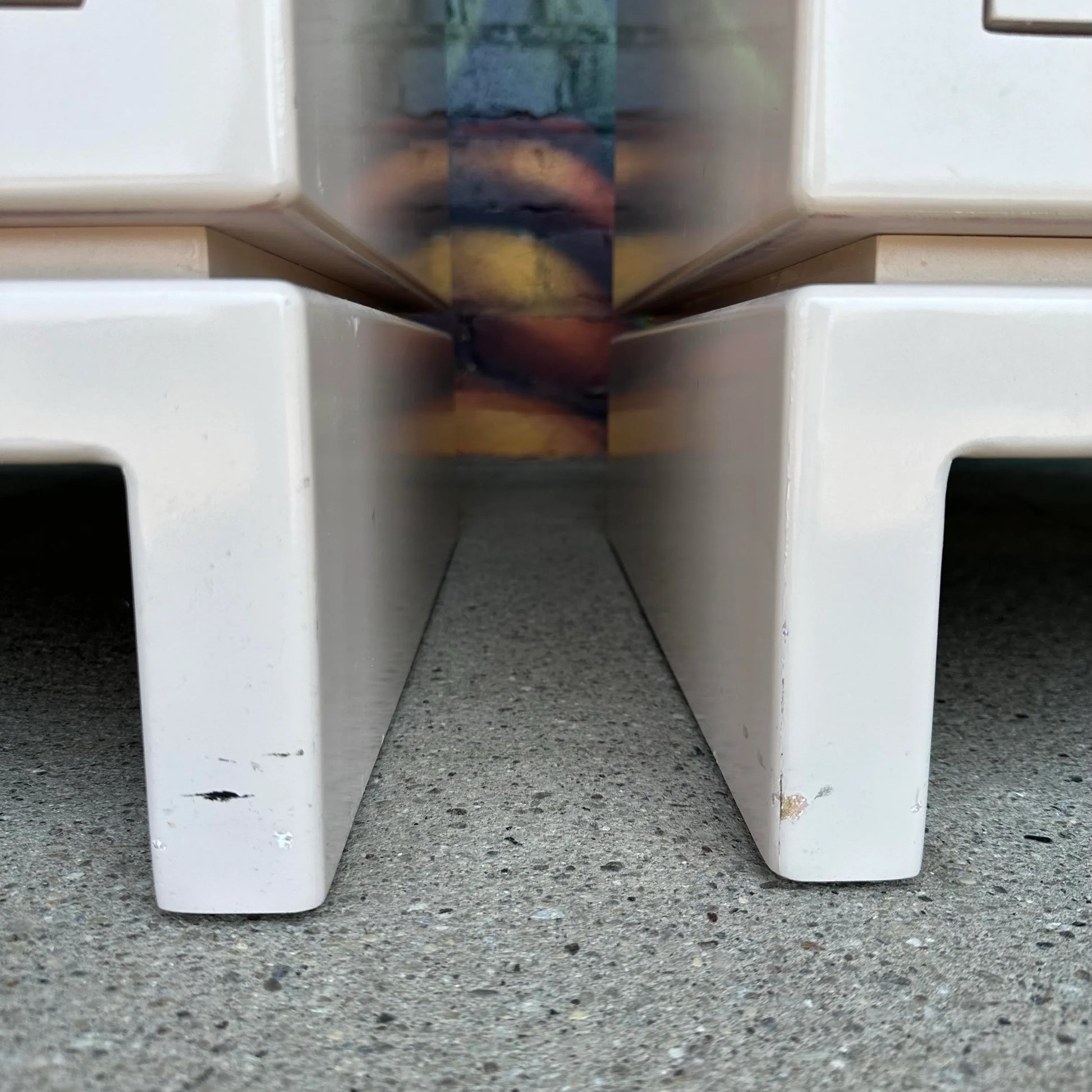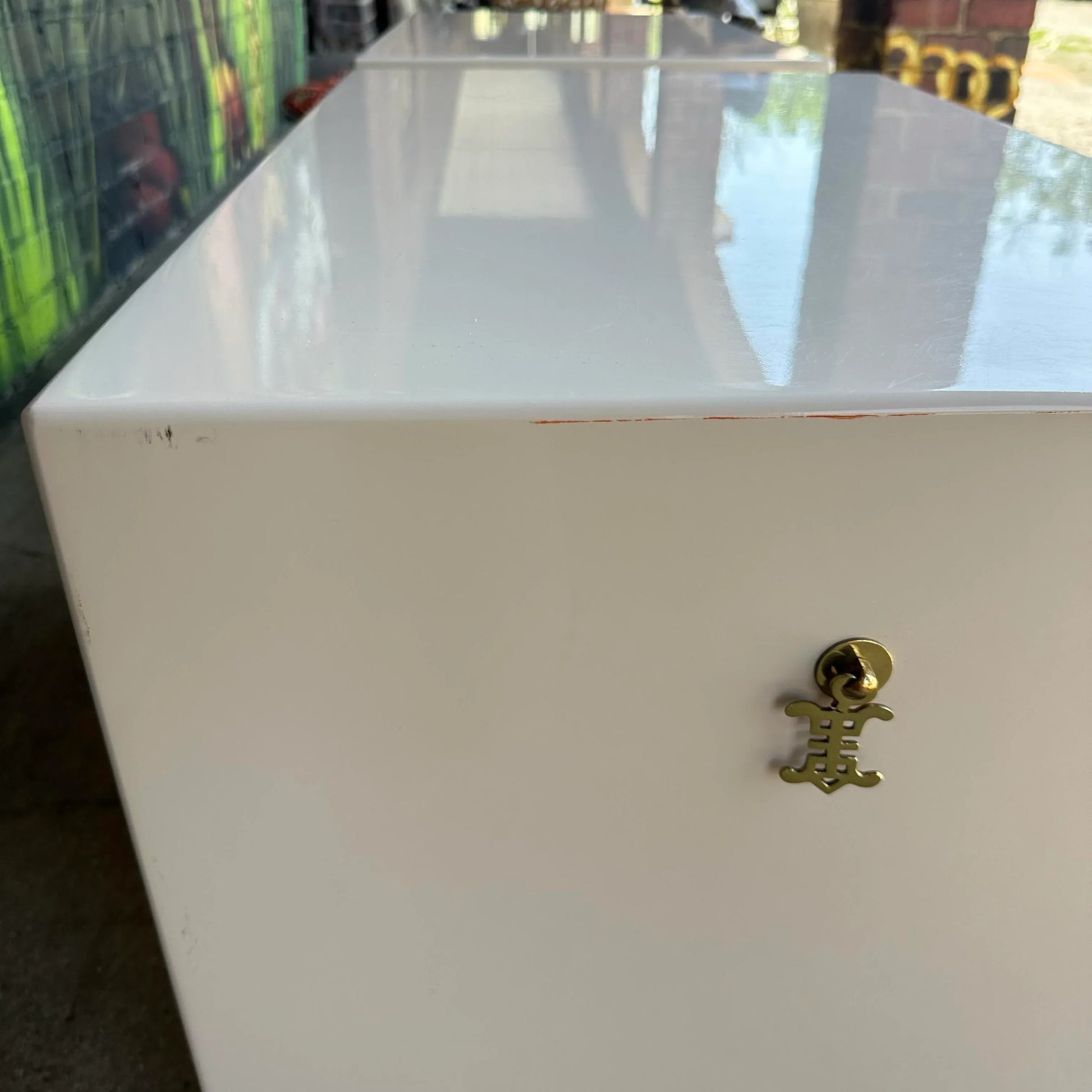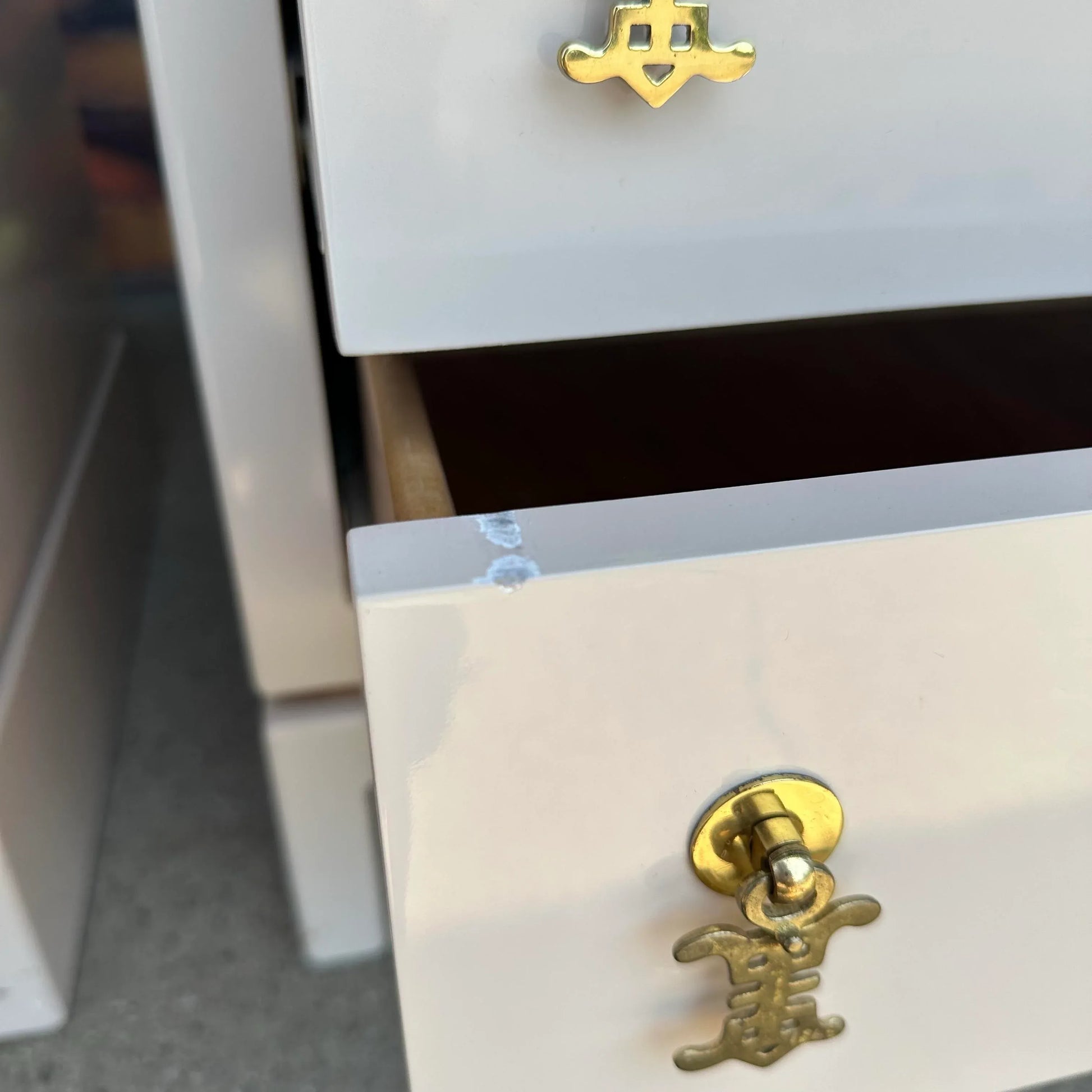 Pair of Light Pink Lacquered Nightstands Brass Hardware Western Furniture Company