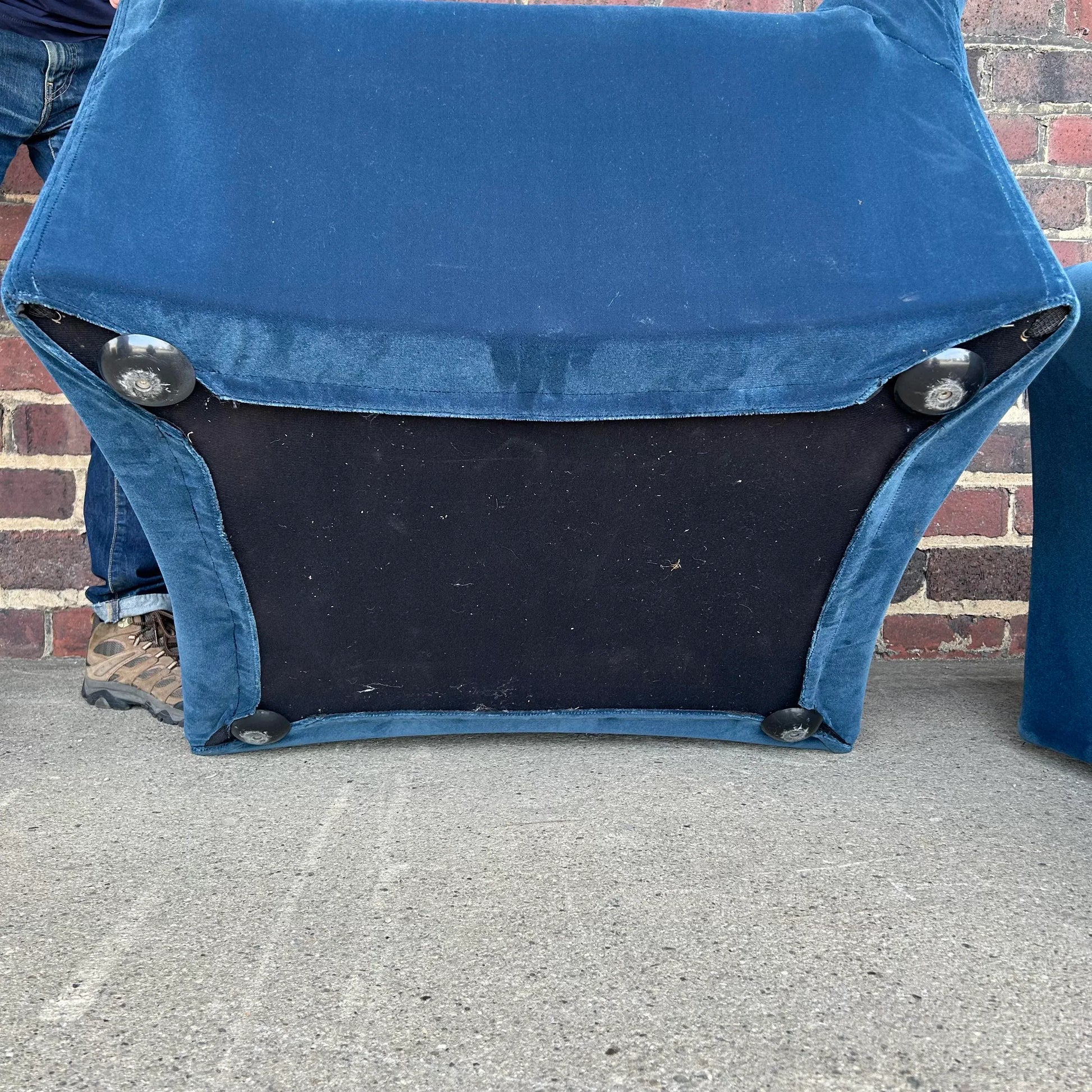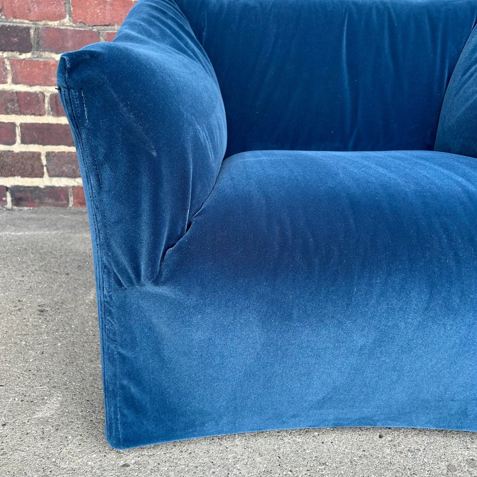 Tentazione lounge chair by Mario Bellini, recovered in a deep blue faux Mohair fabric.