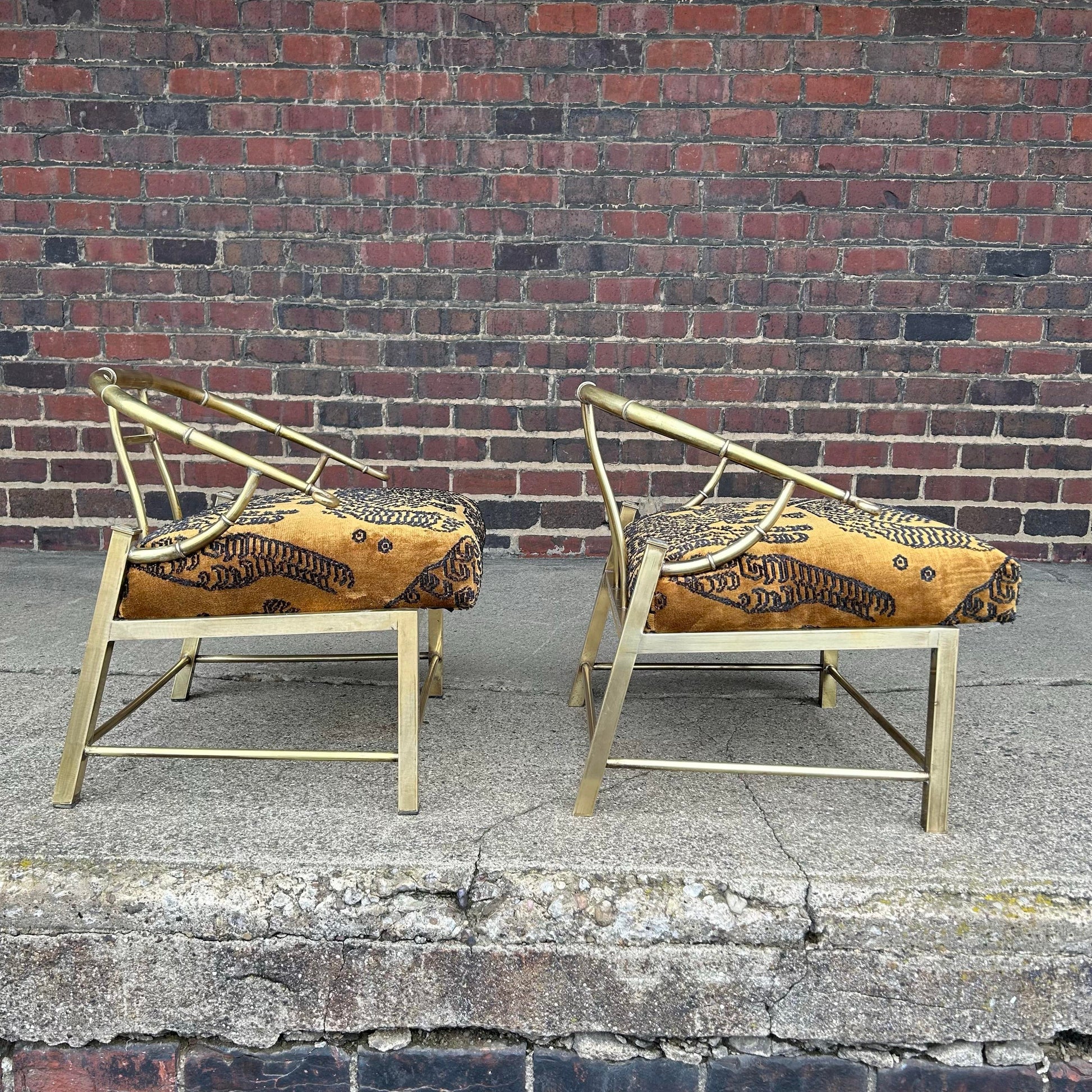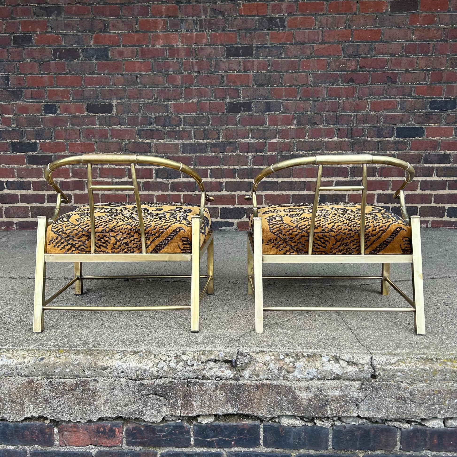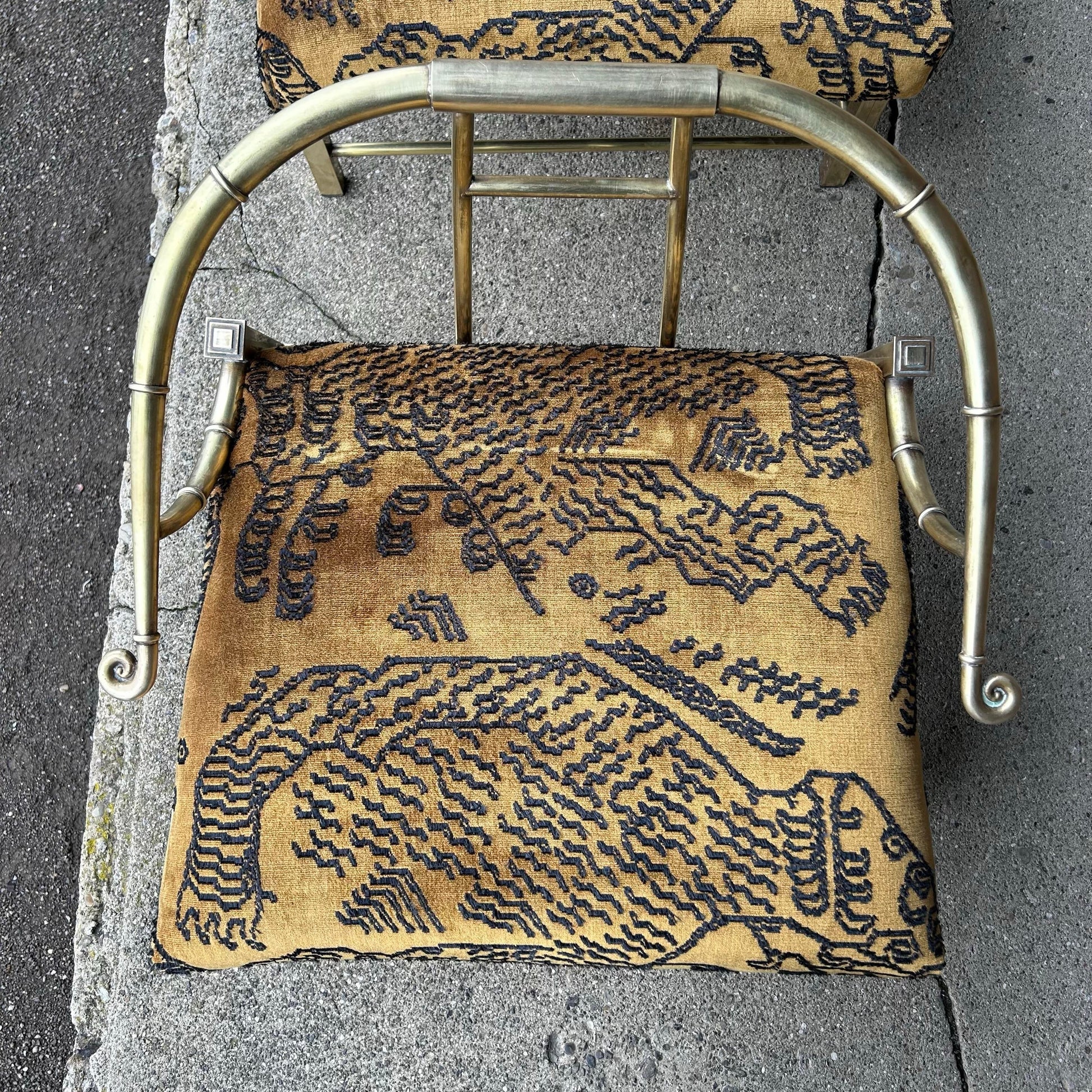 Pair of Mastercraft Brass Chairs With Italian Fabric