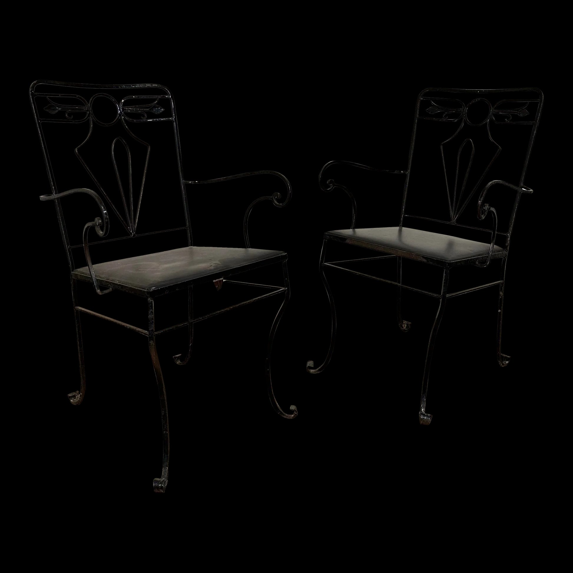 Pair of Salterini Iron Arm Dining Chairs Art Deco