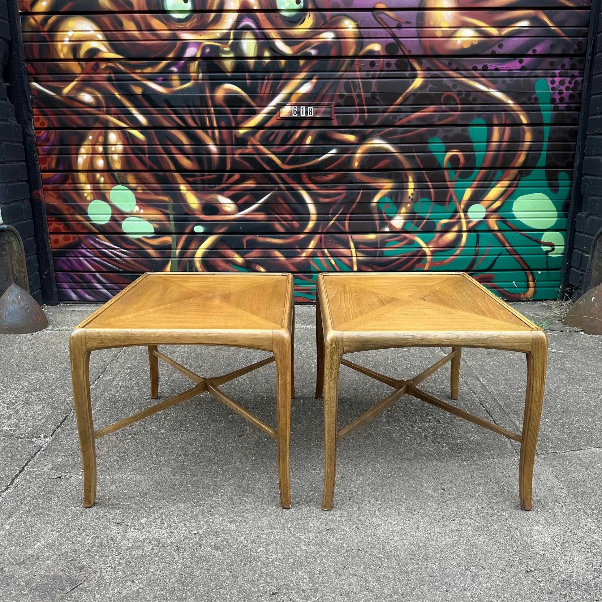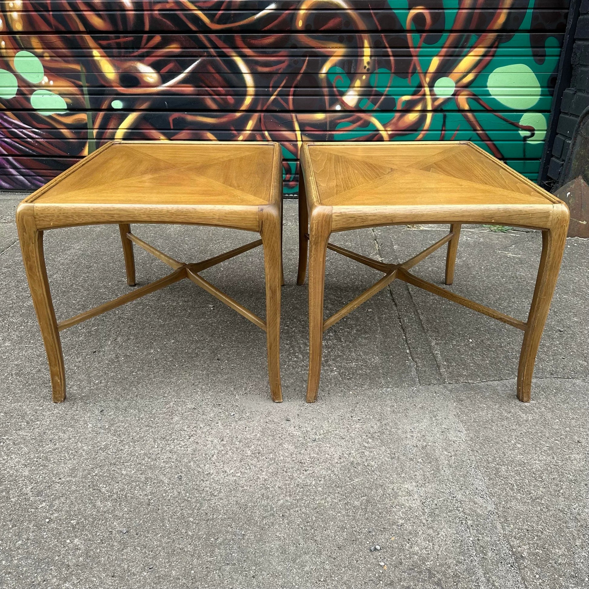 Pair of Thomasville End Tables Bentwood Legs Gibbings Feel