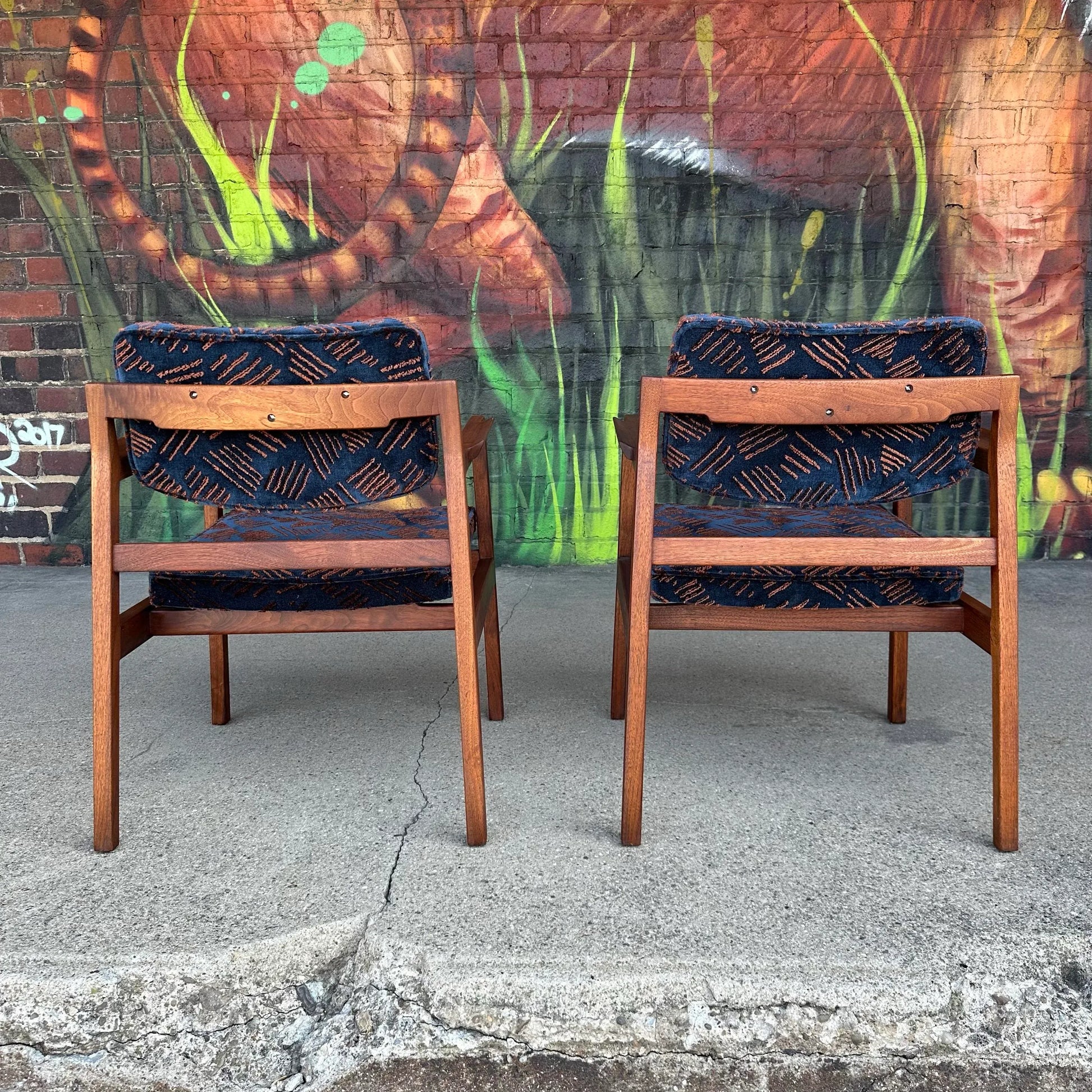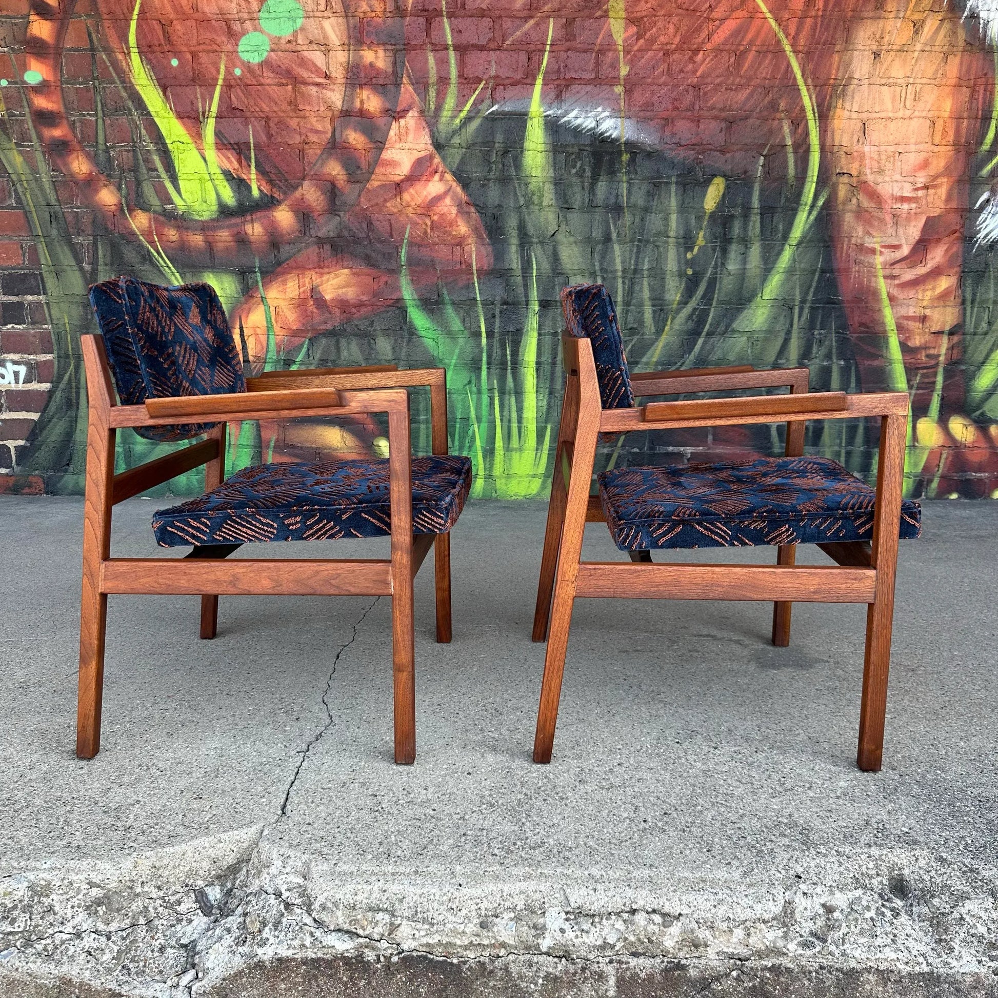 Pair of Walnut Jens Risom Arm Chairs in Jack Lenor Larsen Fabric