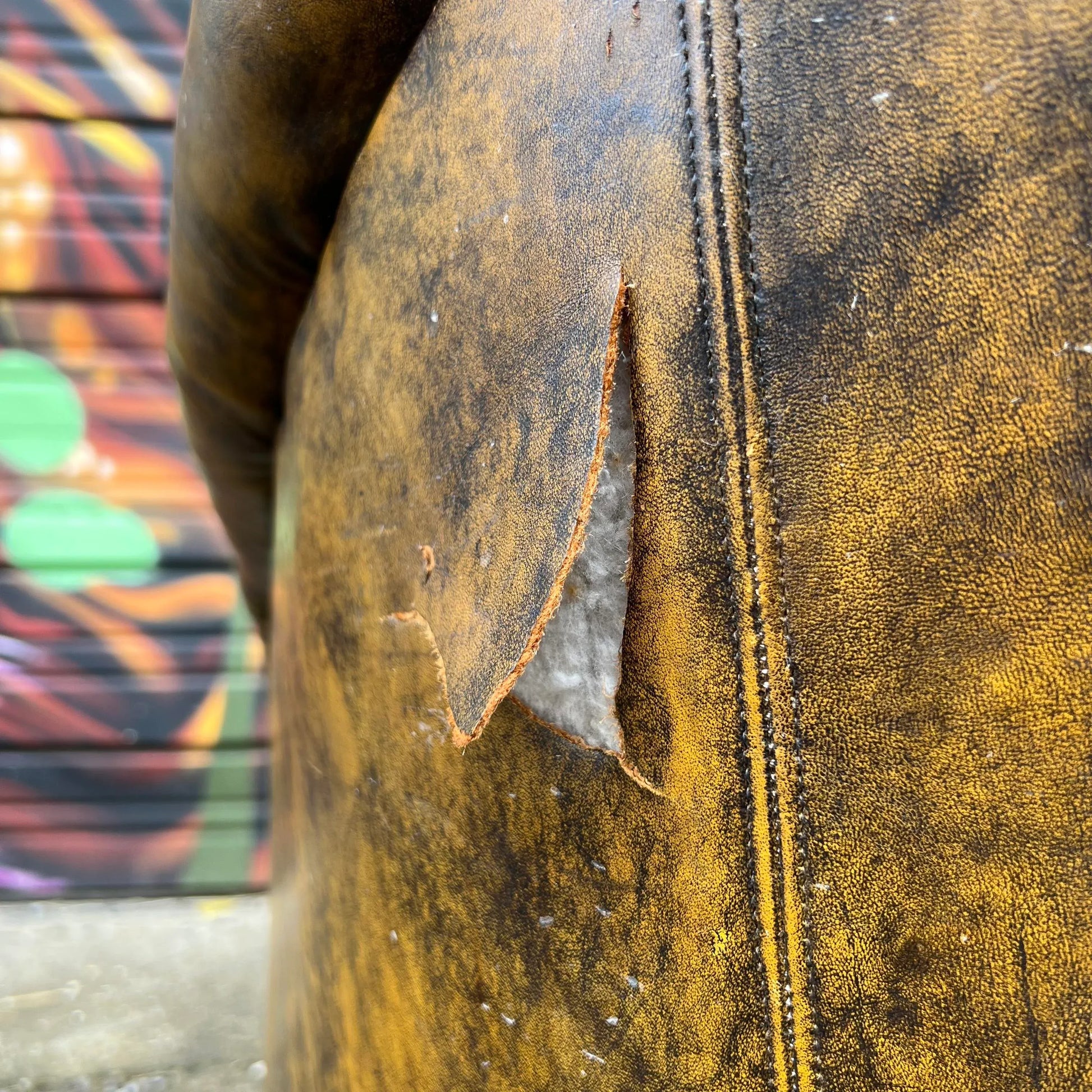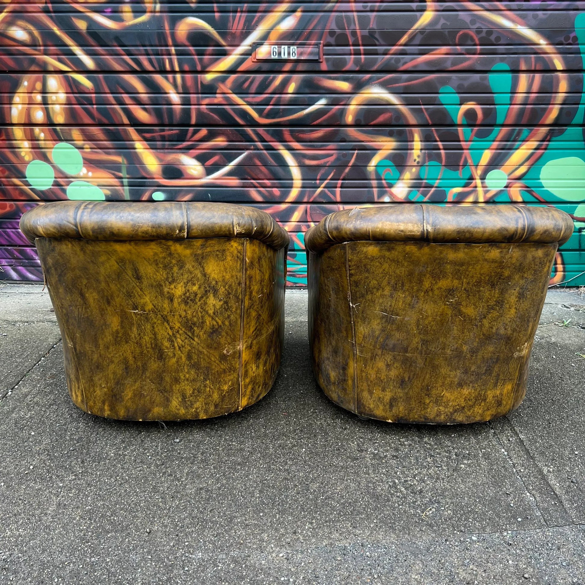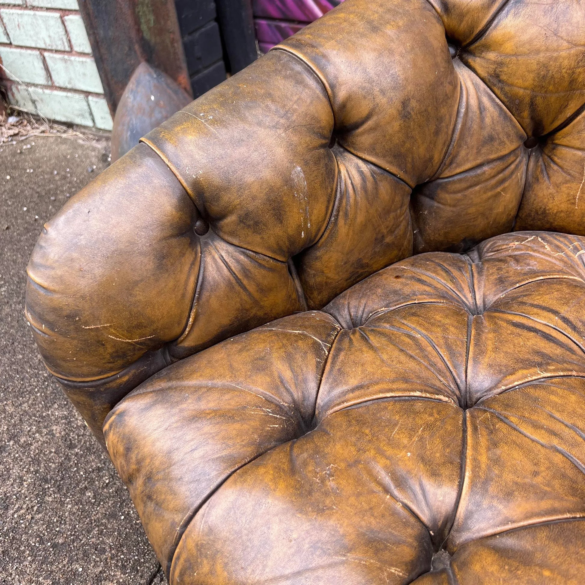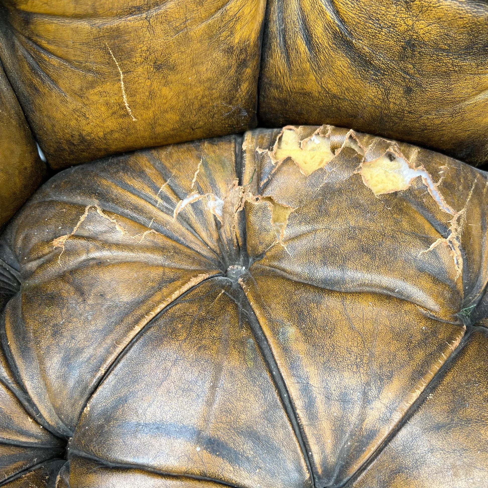 Pair of Ward Bennett Brown Leather Chairs on Casters in need of upholstery