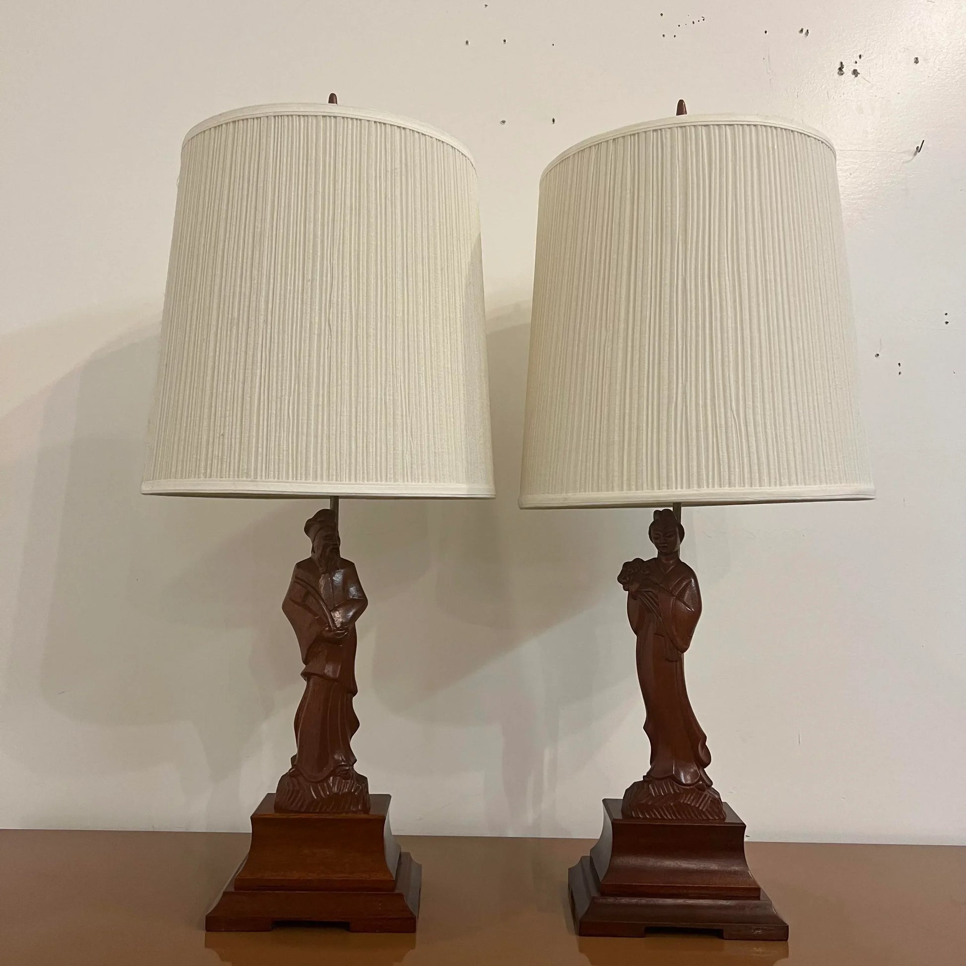 Pair of Yasha Heifetz Carved Man and Woman Lamps