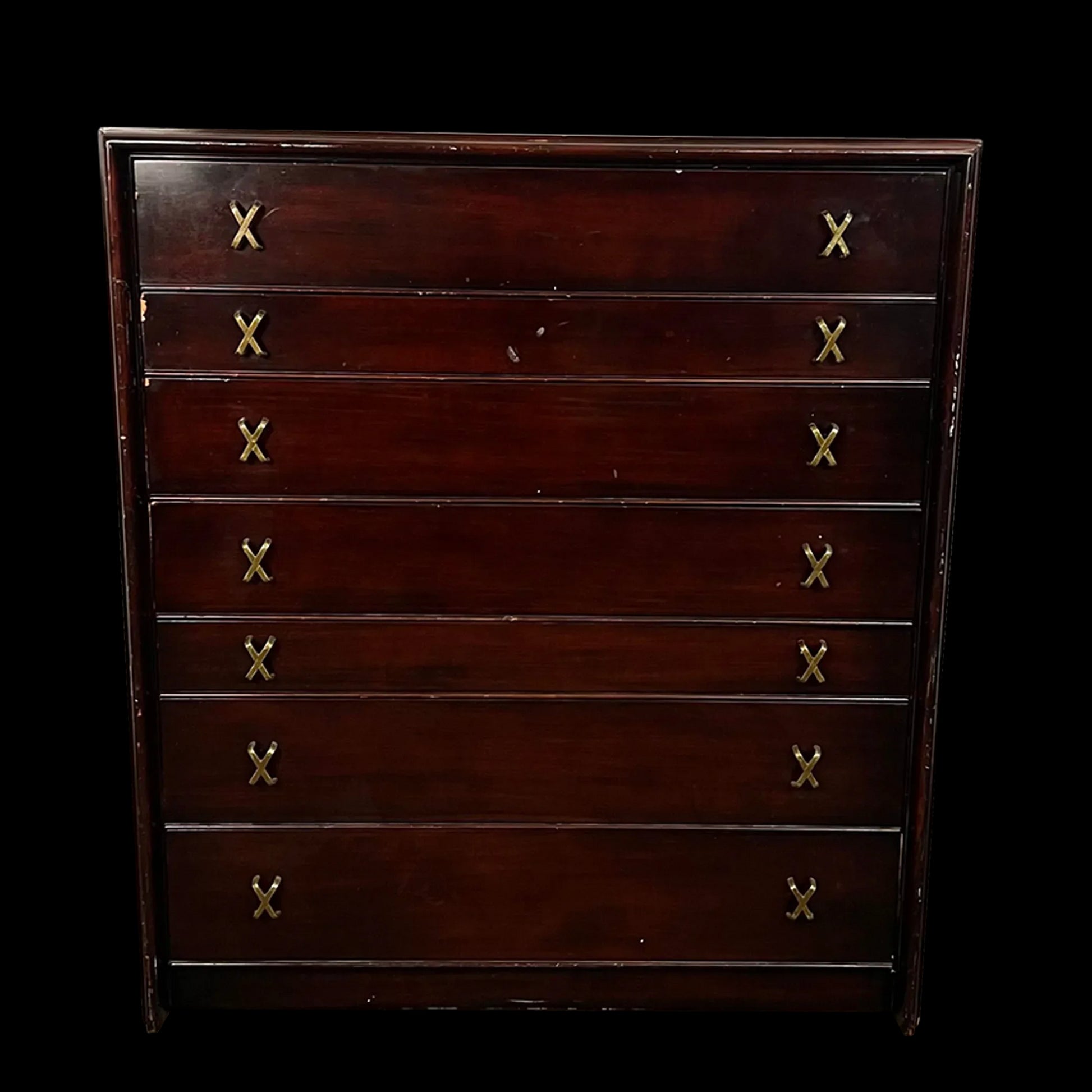 Mid century modern seven drawer highboy dresser designed by Paul Frankl for John Stuart