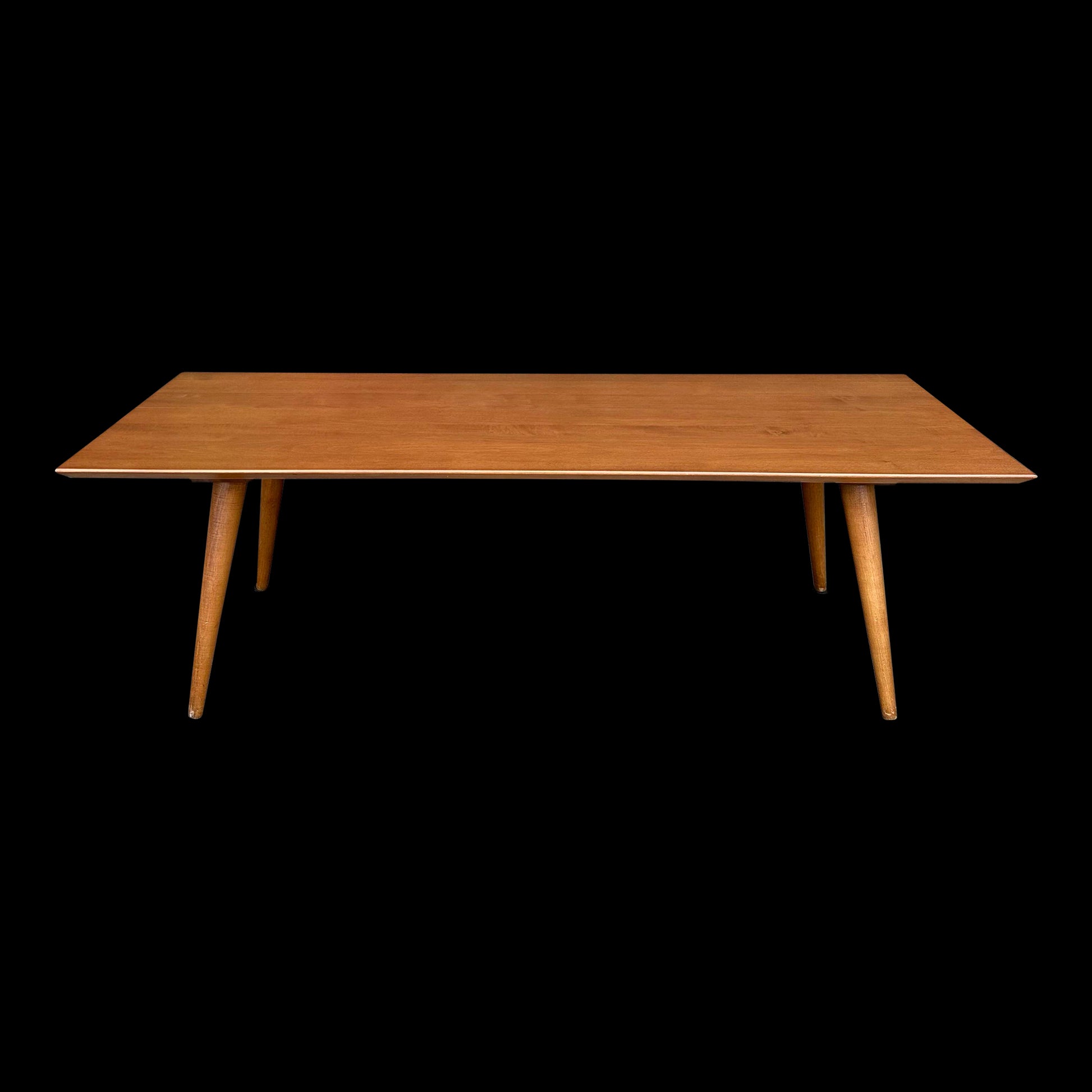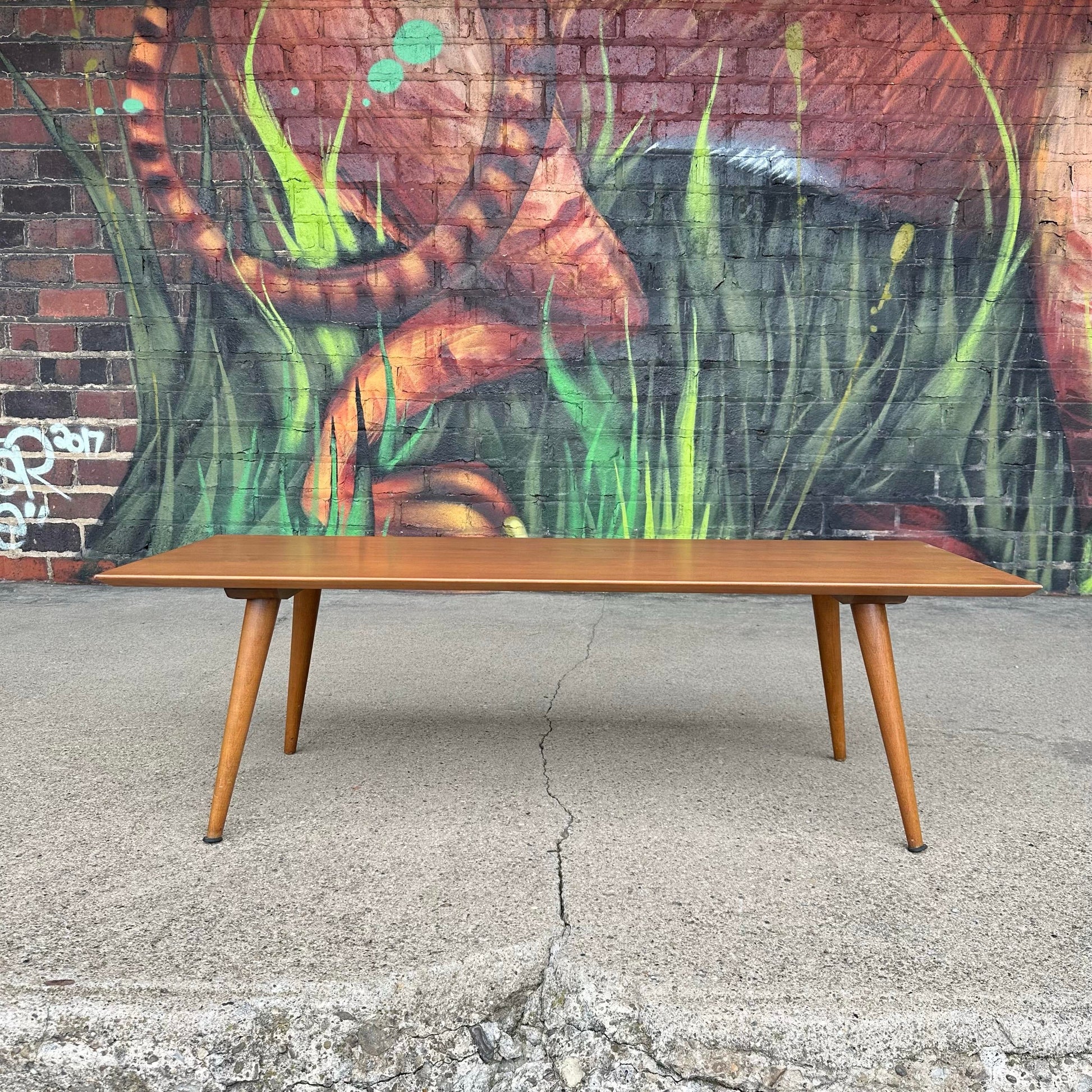 Iconic Planner Group coffee table designed by Paul McCobb which was his most well received furniture line during his long career. This example is an all solid maple construction coffee table or bench with slender tapered legs.