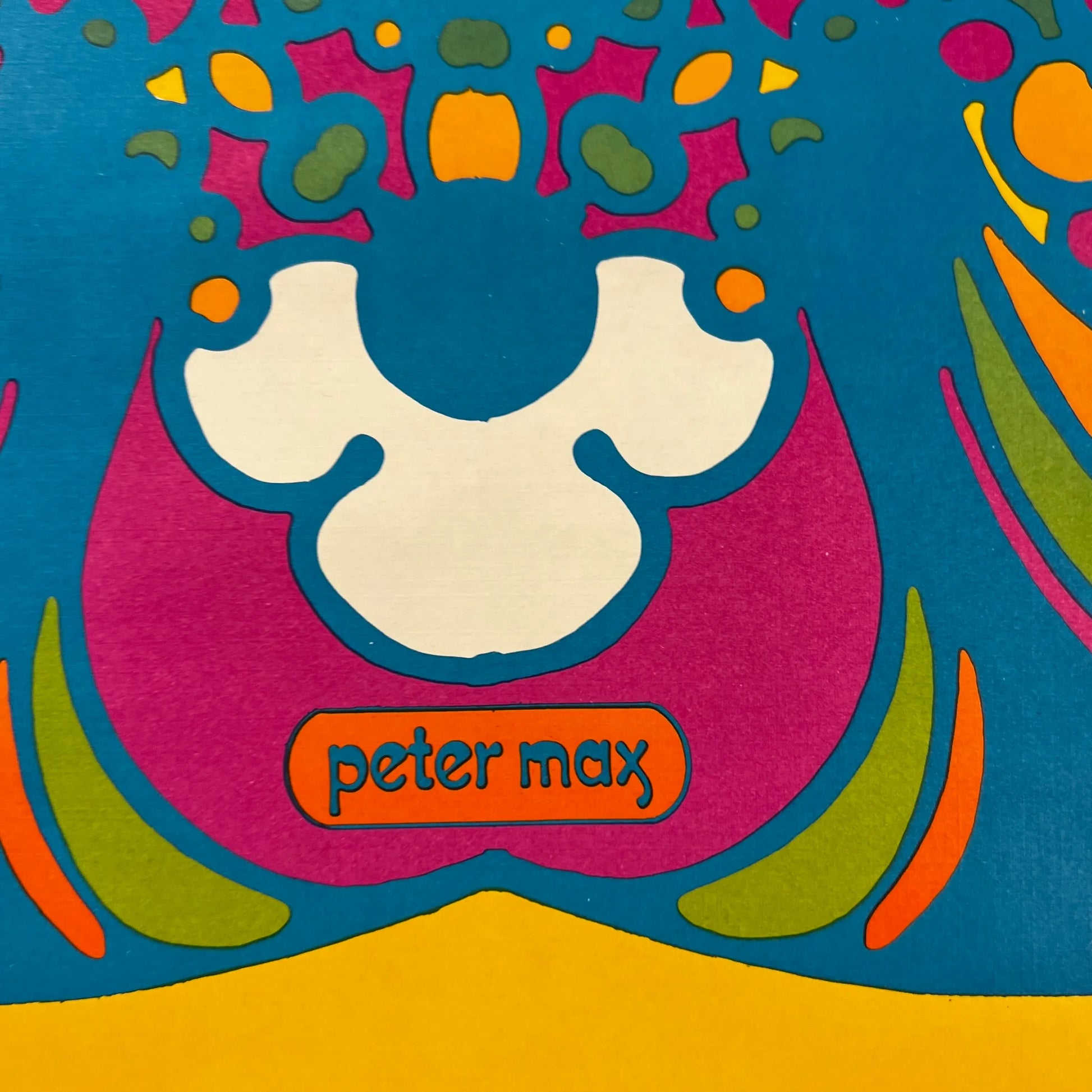 Original Peter Max lithograph using the split fountain technique on heavy vellum paper. This piece is titled “Flapper #5”