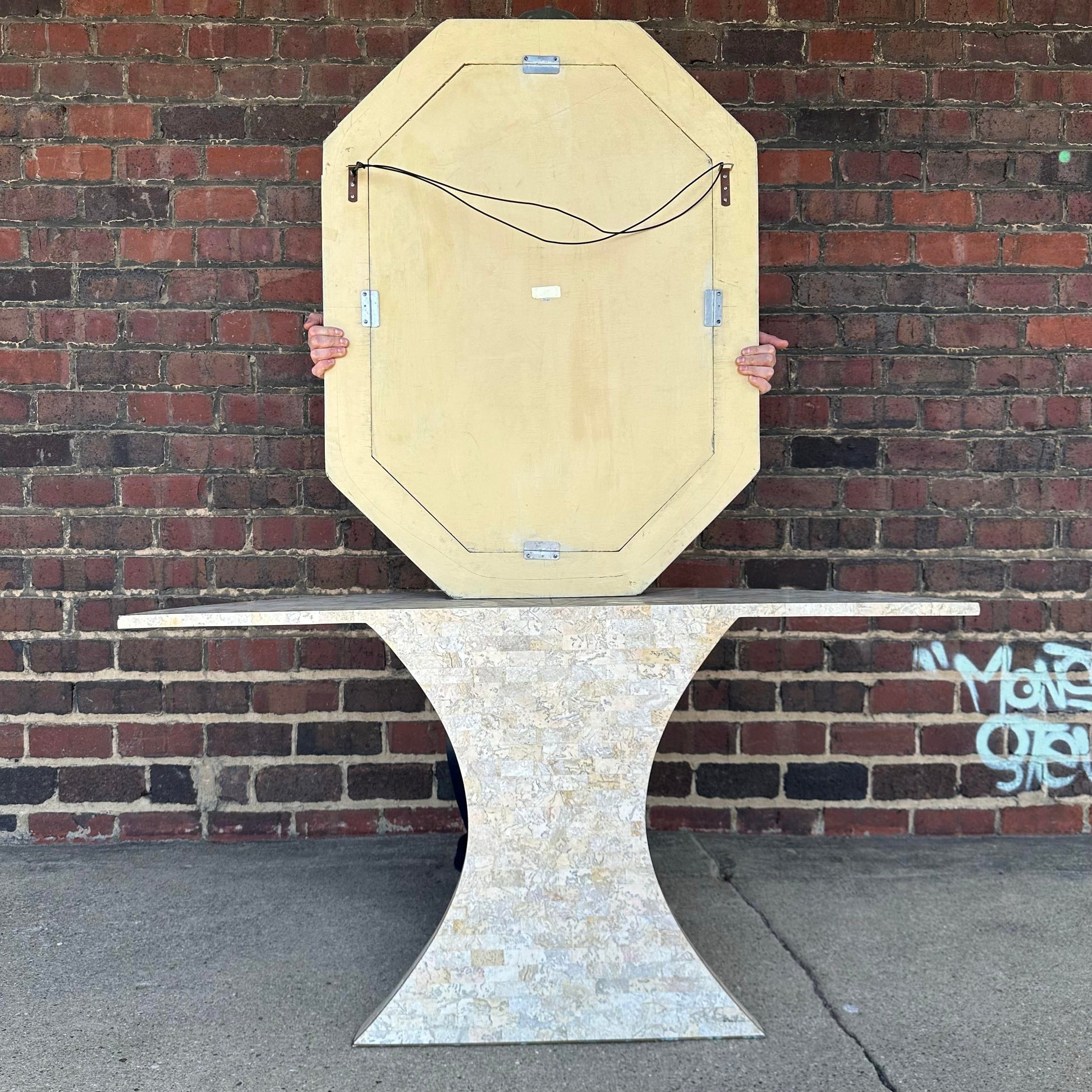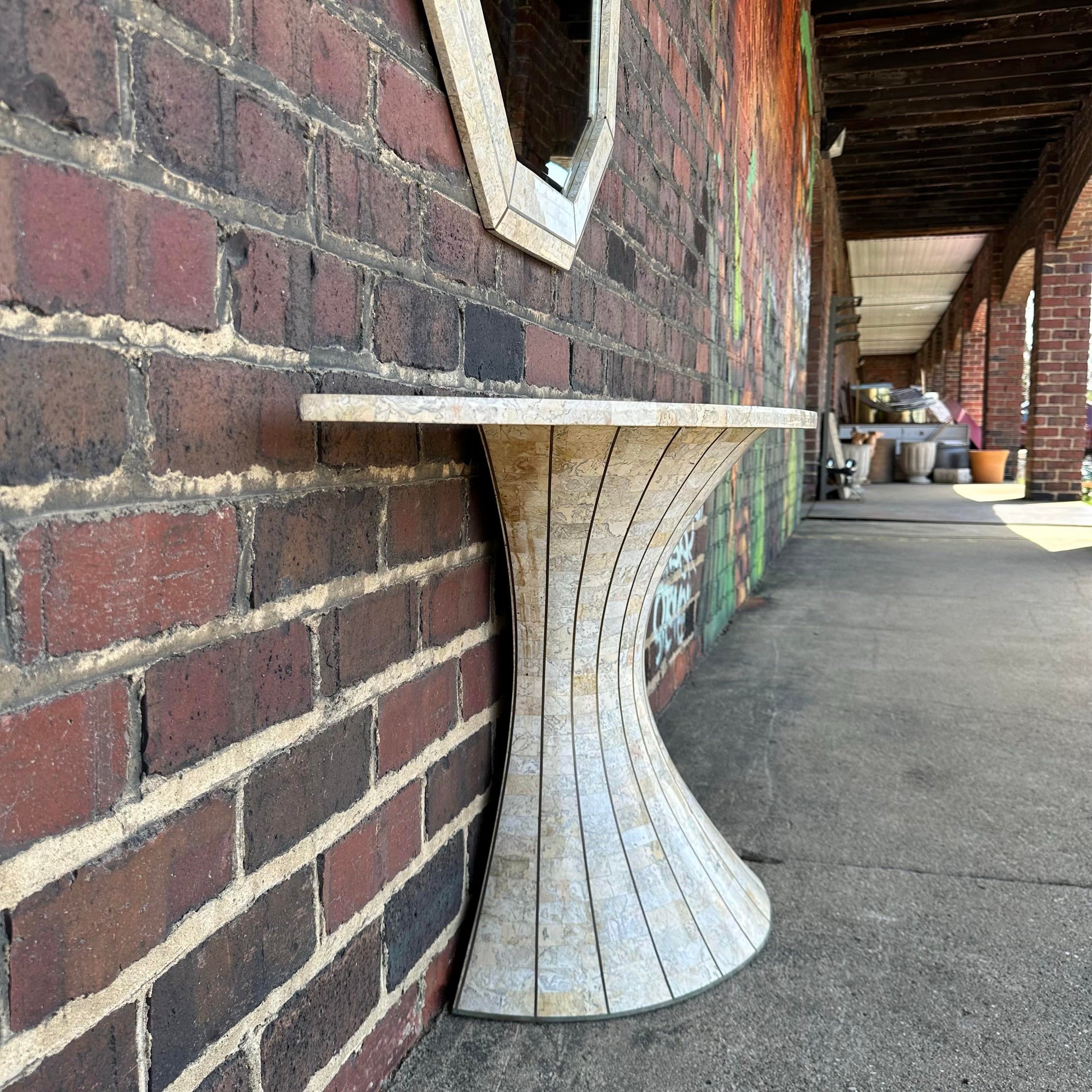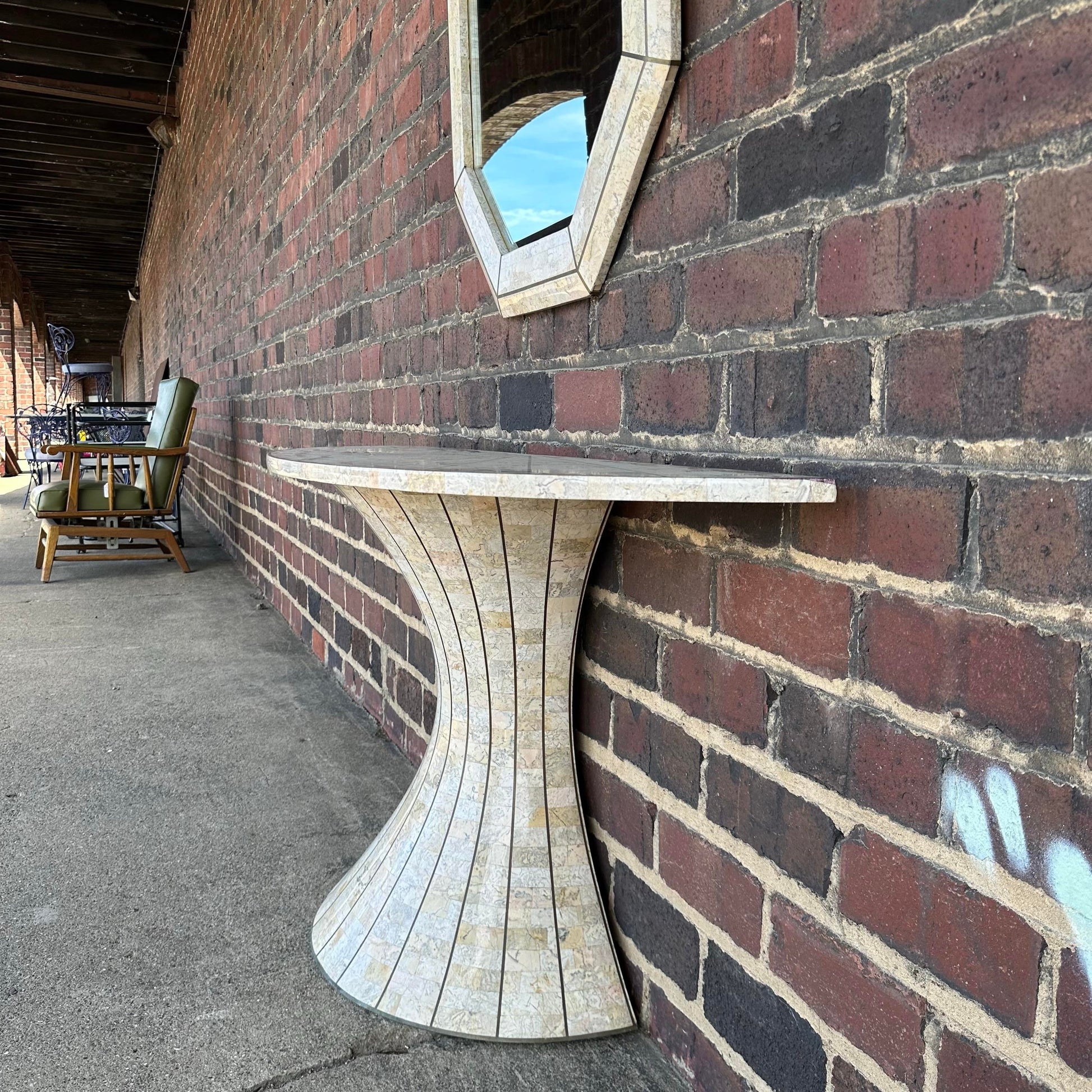 Post-Modern Travertine Vanity and Mirror Set Console Table Maitland Smith