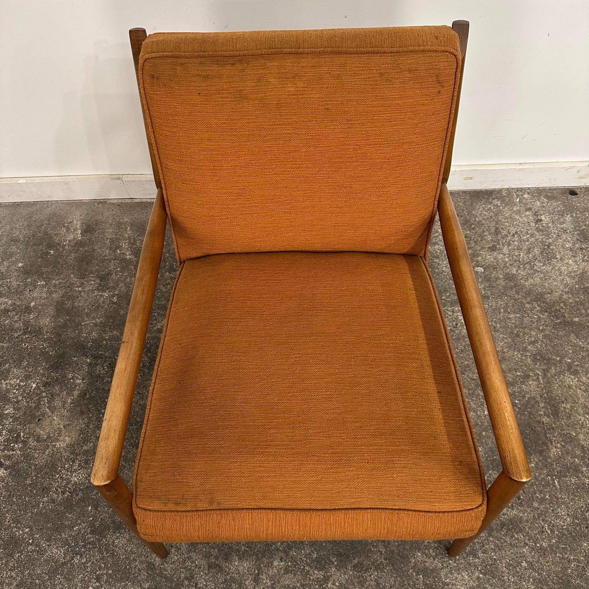 Mid century modern Paul McCobb for planner group lounge chair with Solid maple wood “horn” style construction frame. There is no makers mark on the chair.
