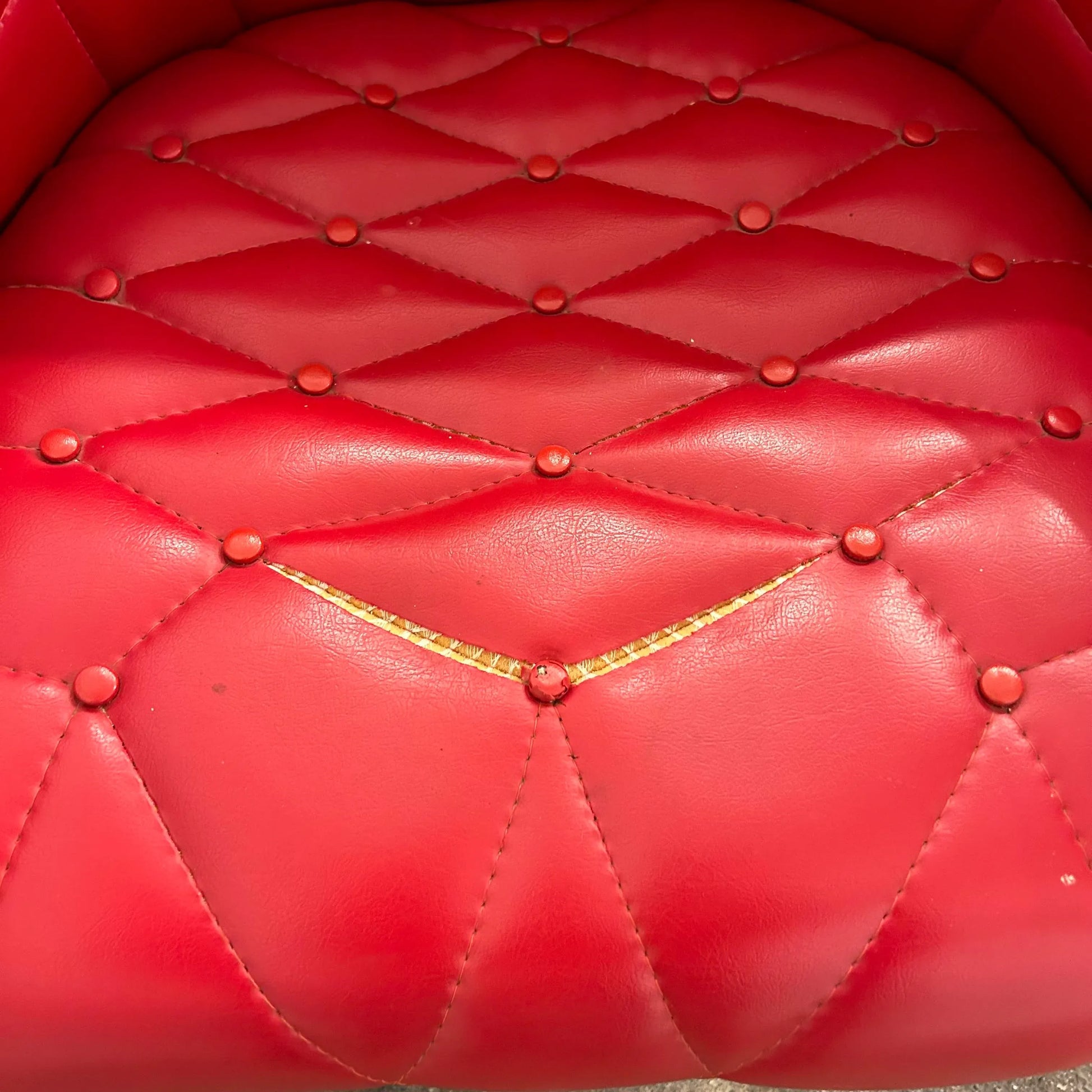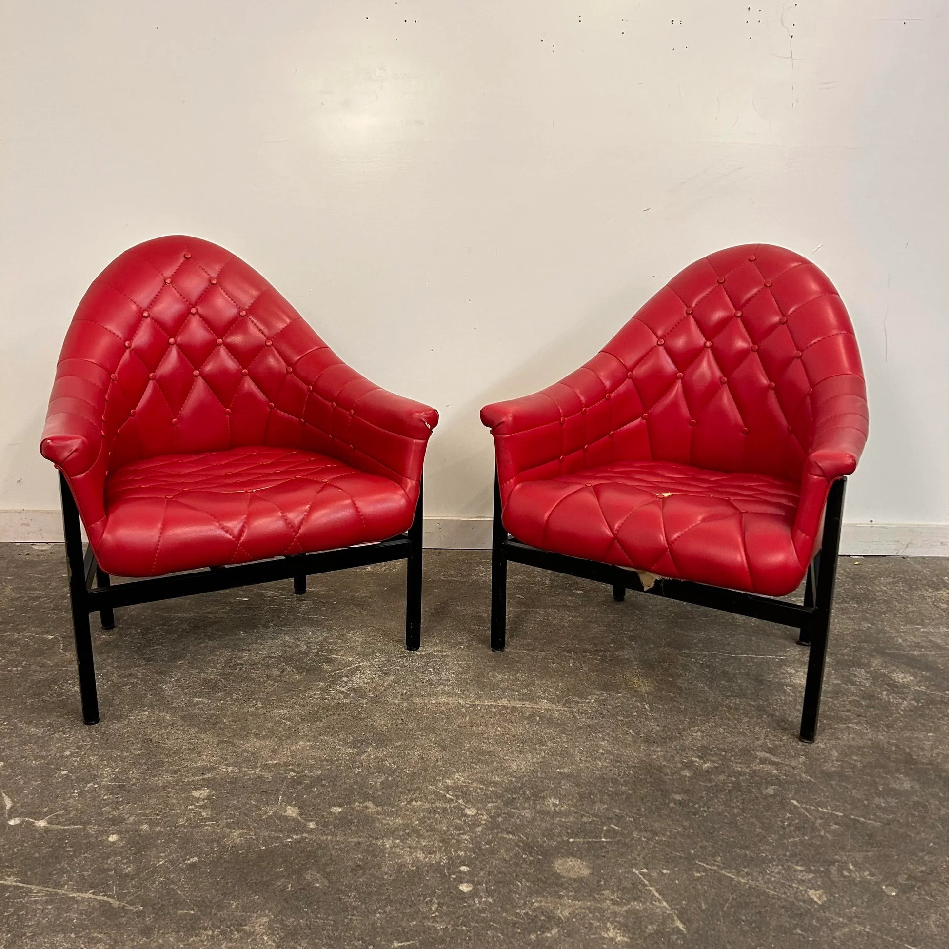 Red Vinyl Tufted Lounge Chairs Styled After Milo Baughman by Frank and Son