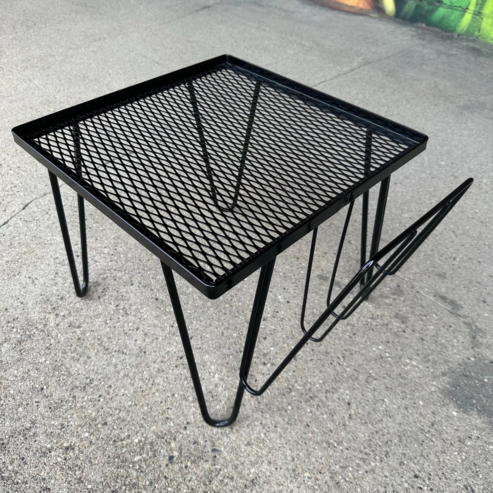 Reupholstered and Powder Coated Hairpin Leg Magazine Rack Ottoman