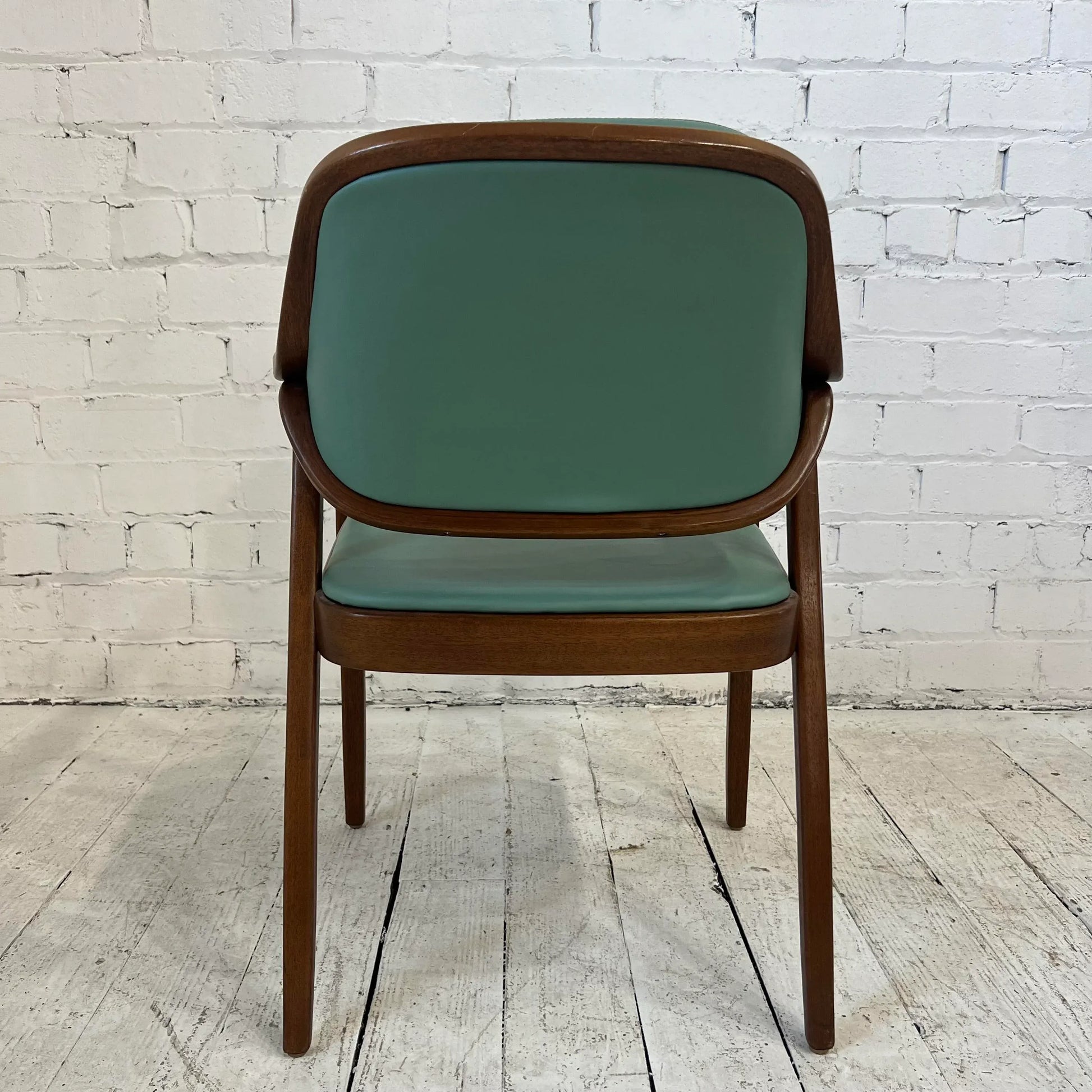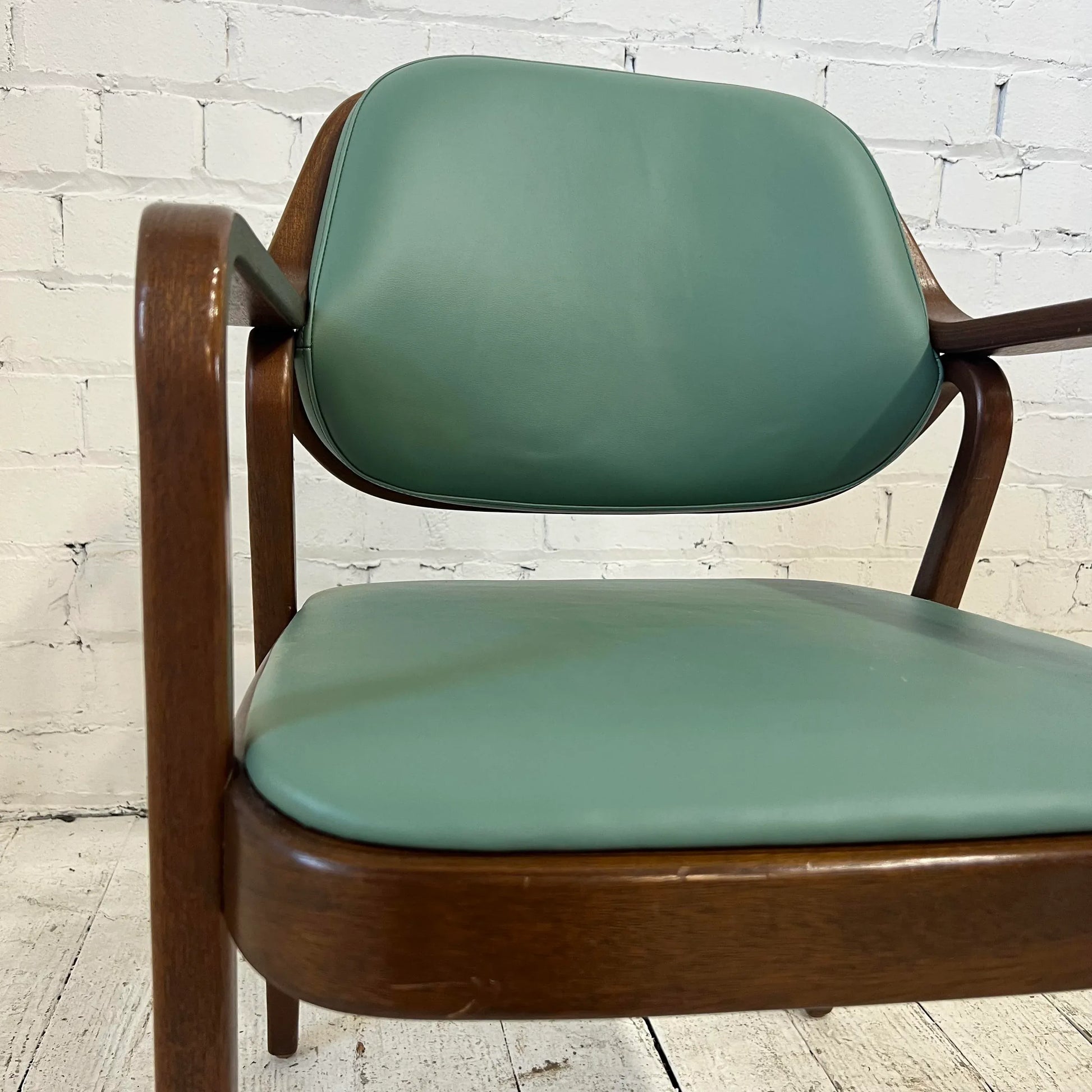 Don Pettit bentwood arm chair for knoll. Covered in a teal vinyl fabric.