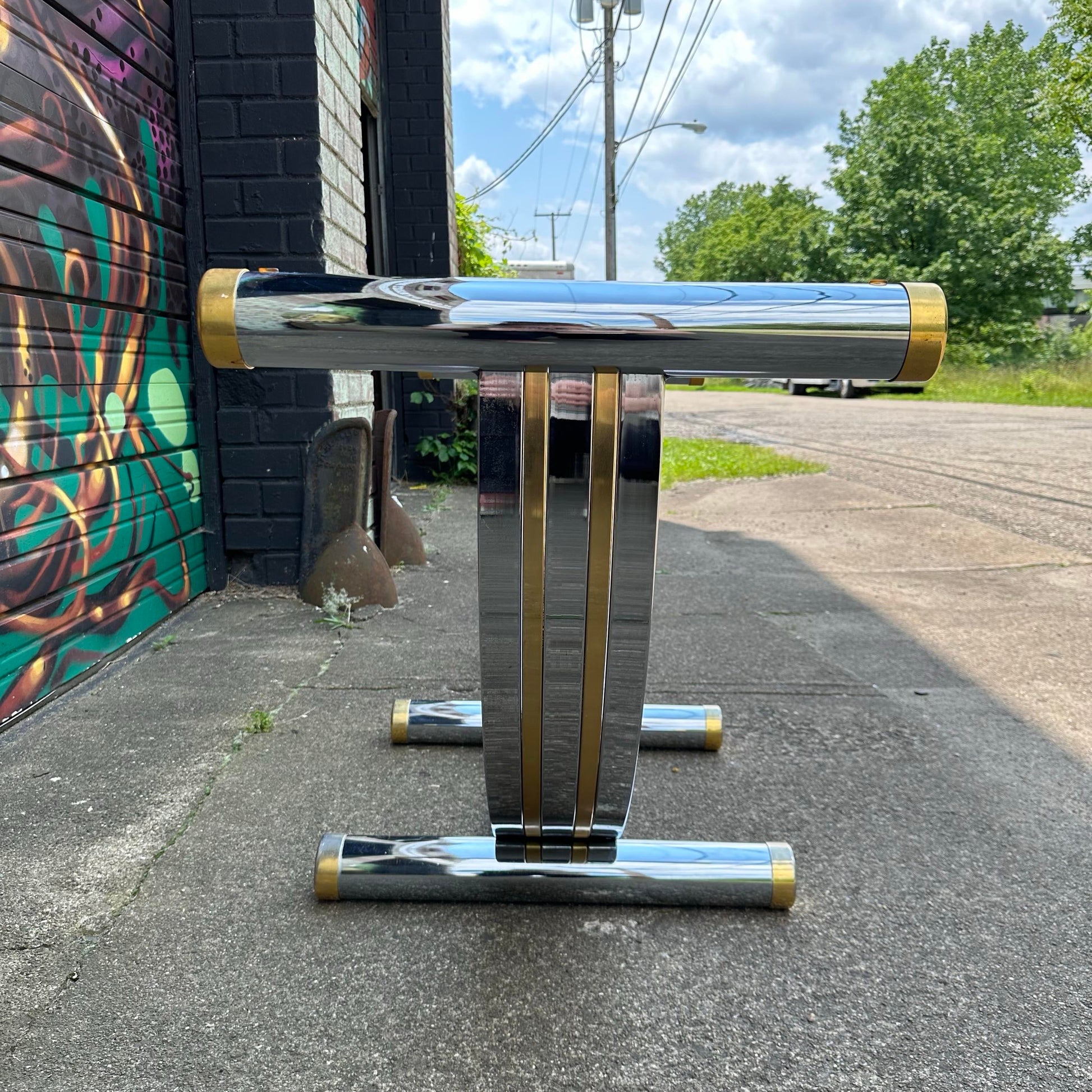 Romeo Rega Harp Shaped Chrome and Brass Dining Table