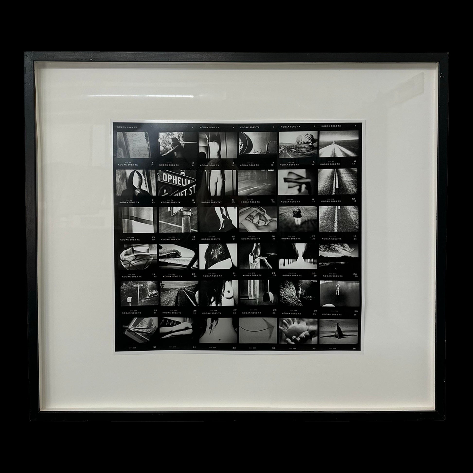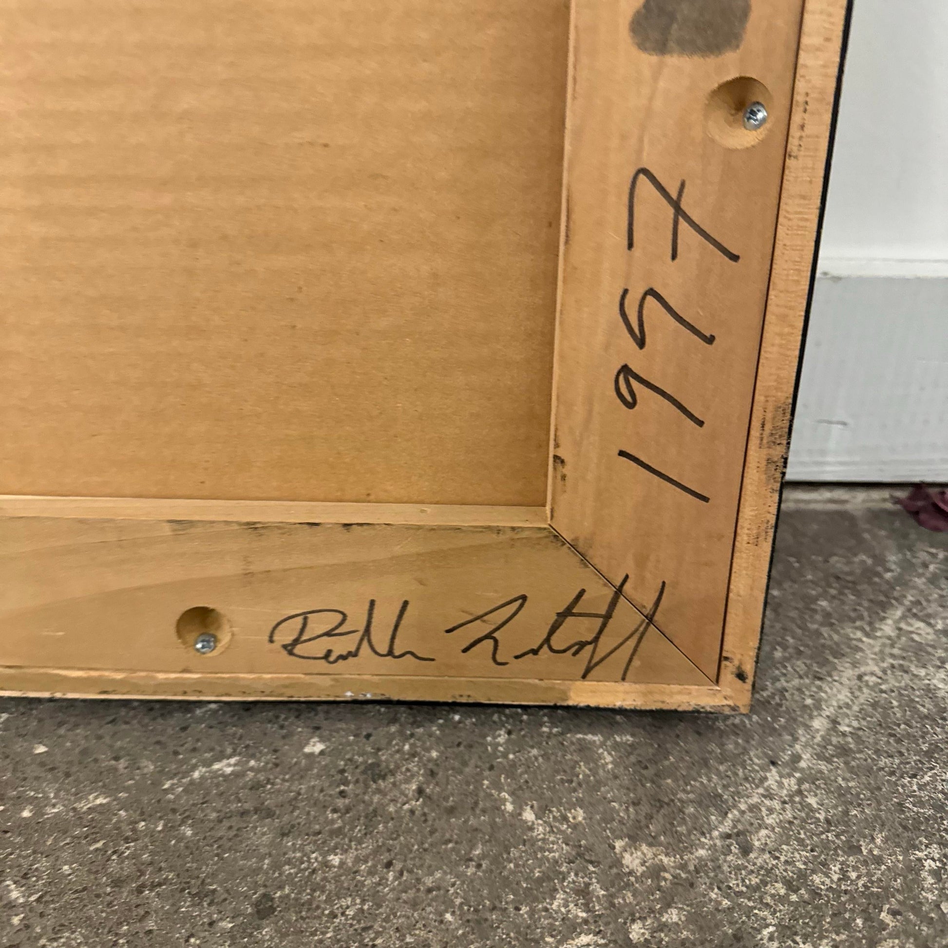 This Ruth Litoff piece is titled “Noir” with an alternative title of “Dream Street.” Handwritten on the back of the frame is “FOR MARCIE Her First Best Friend.” The artist is featured in a documentary called 32 Pills, which follows Litoff’s sister’s quest for understanding Litoff’s life, work, and death by suicide.