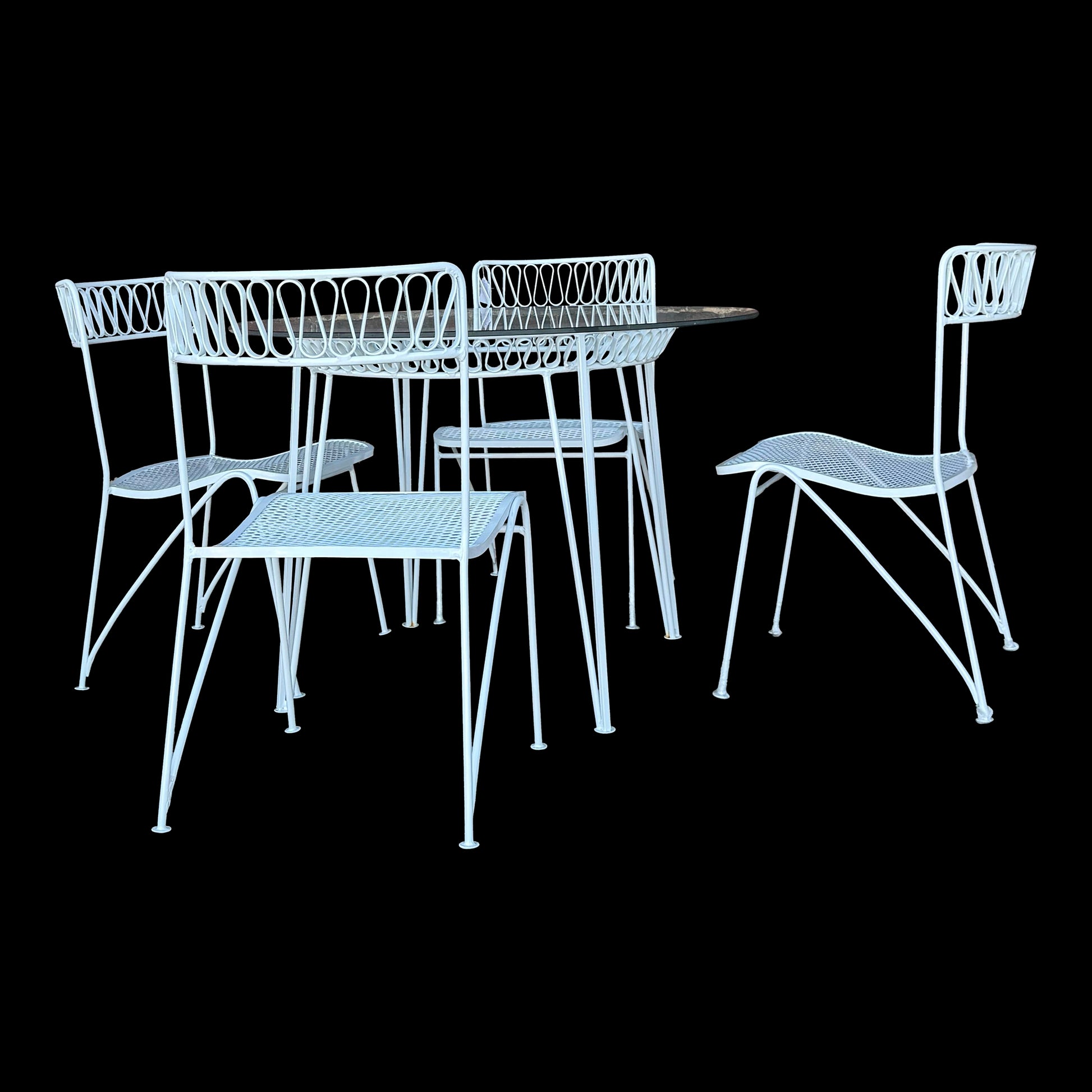 Salterini Ribbon Patio Table and 4 Chairs Wrought Iron Mid Century