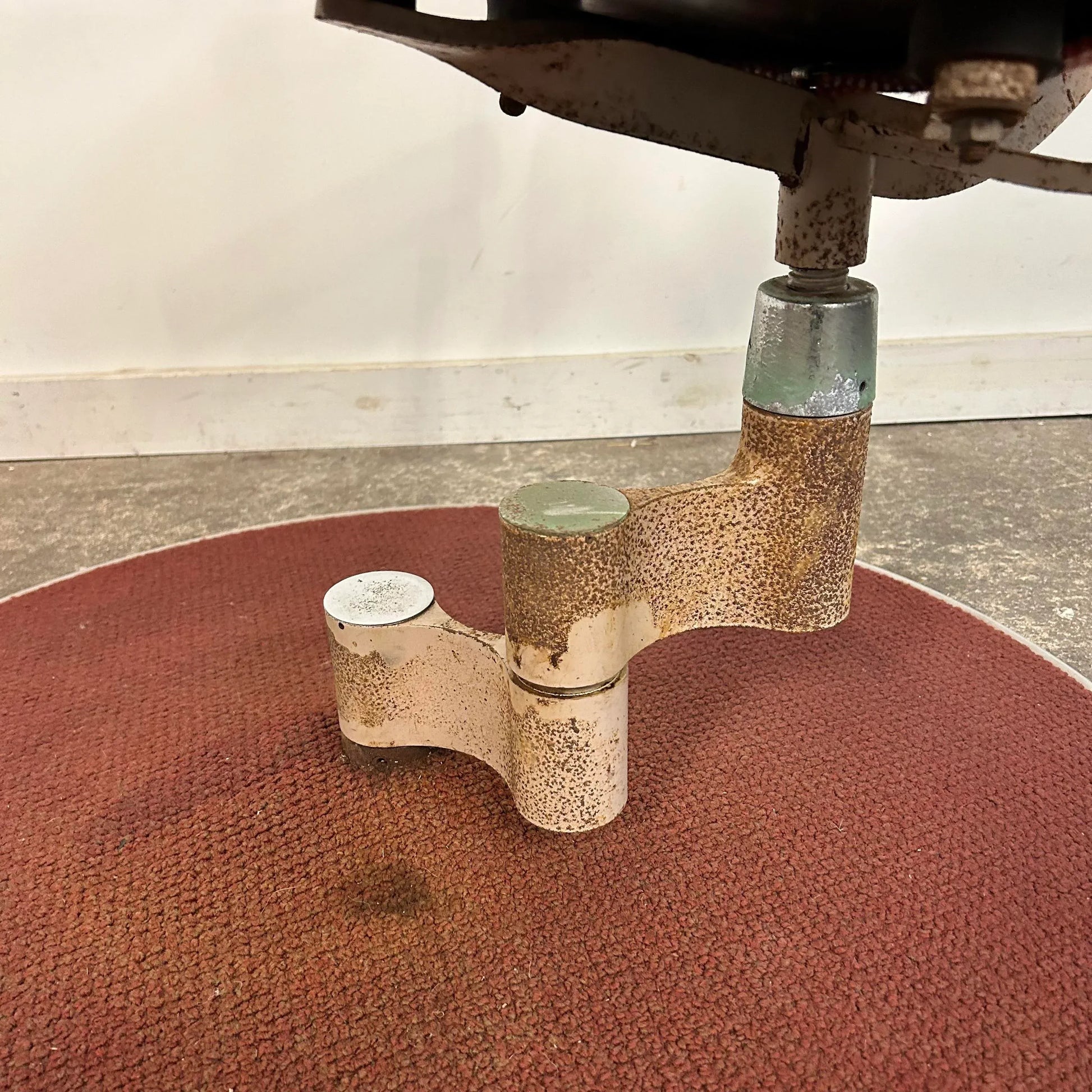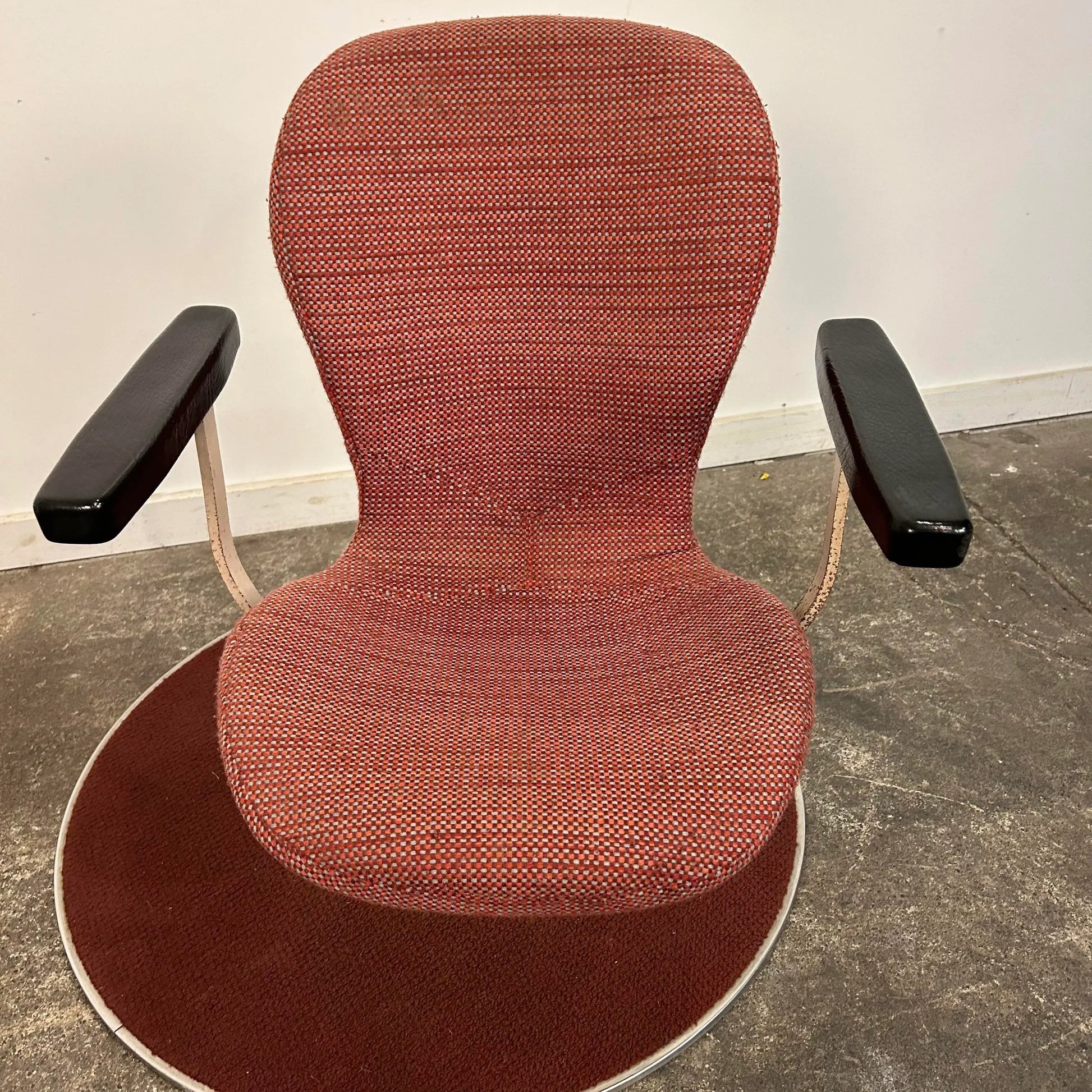 Very rare Recorder’s observation chair designed by Gideon Kramer for the 1962 Worlds Fair in Seattle at the Space Needle. The mechanics of the base allows for two separate 360 degree rotations, a unique design feature that allows you to "orbit" the base of the chair.