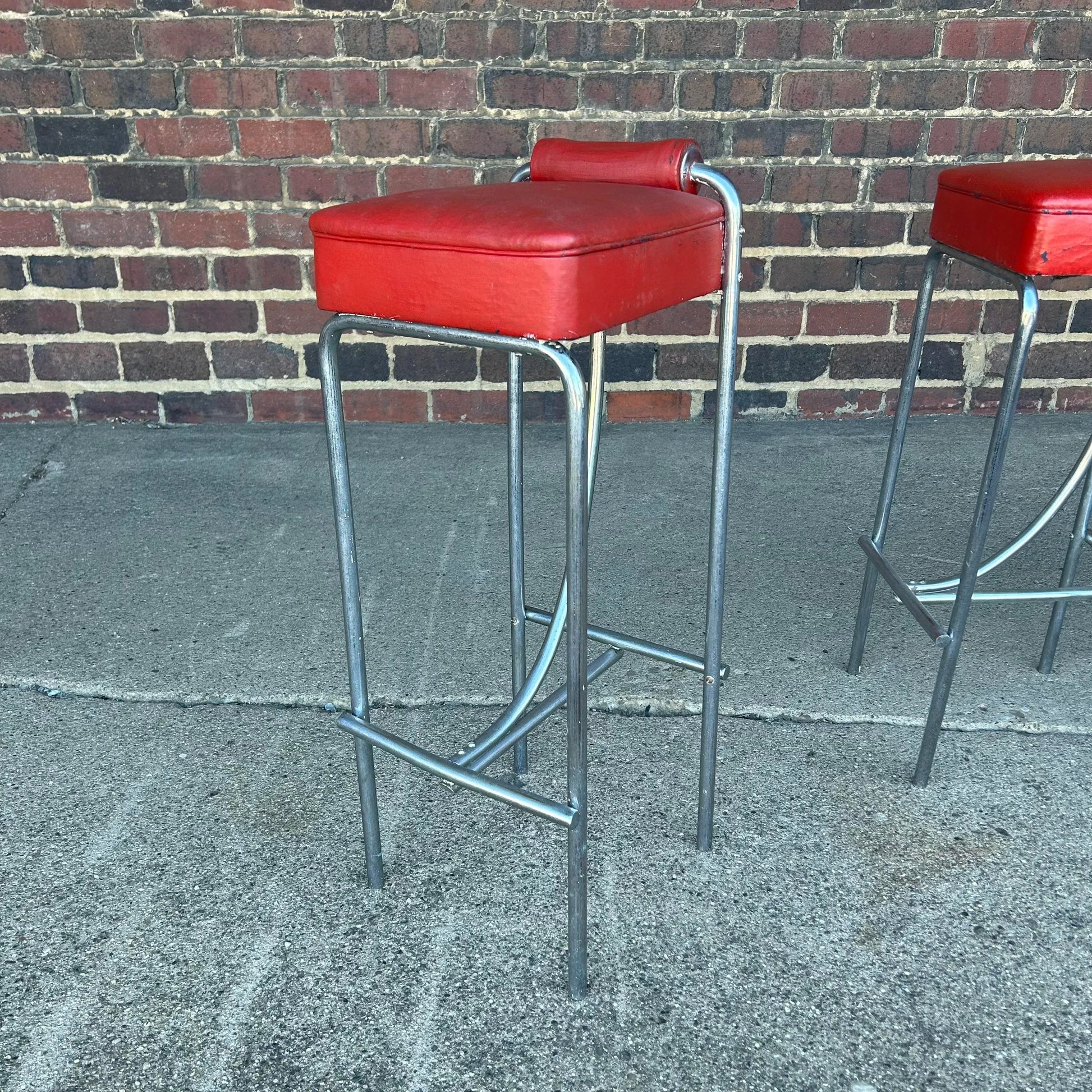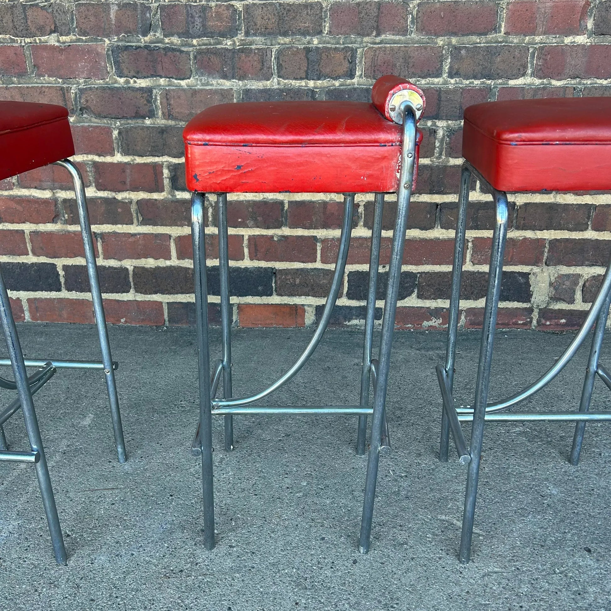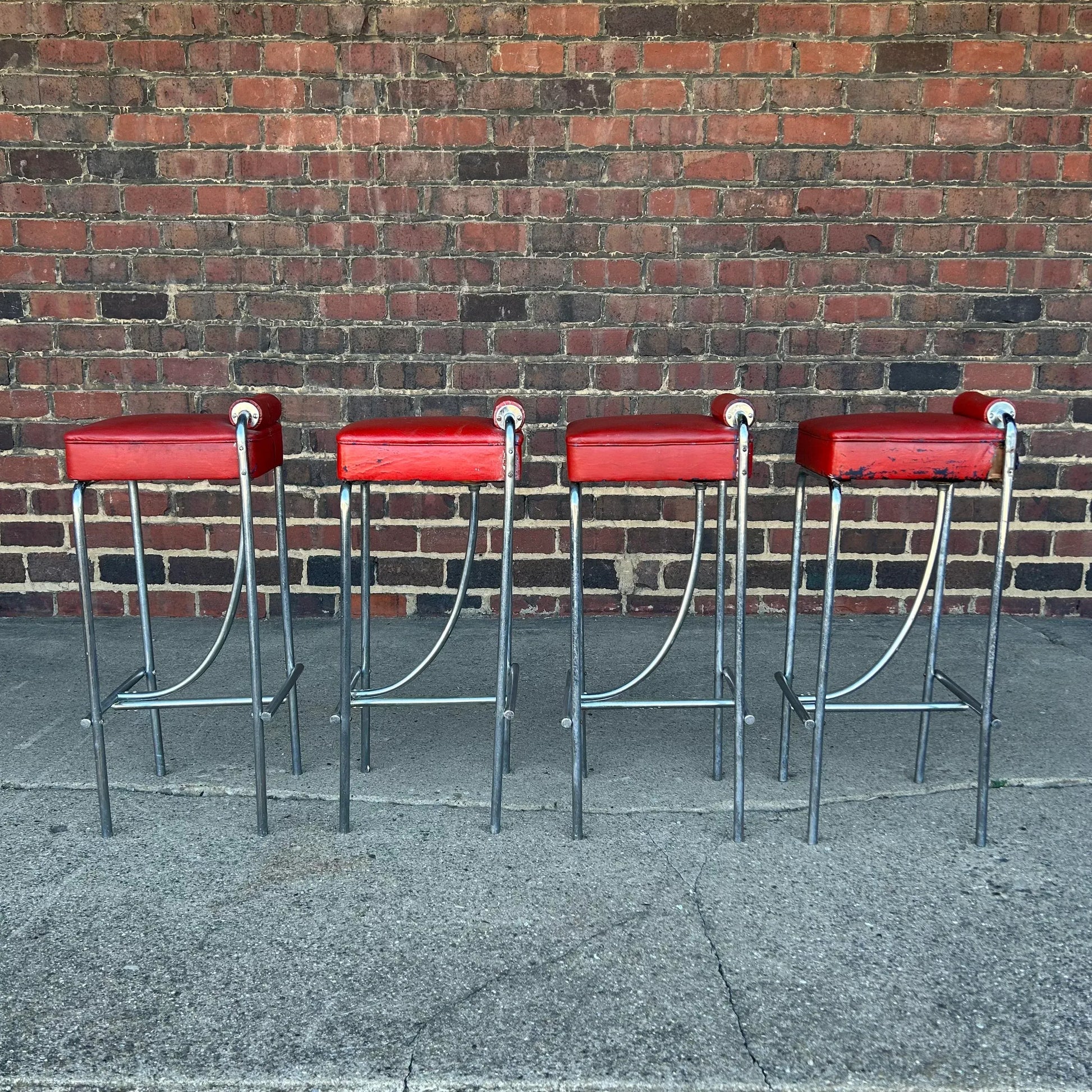 Set of 4 art deco barstools believed to have come from inside the Empire State Building. “MARK” on chrome bar.