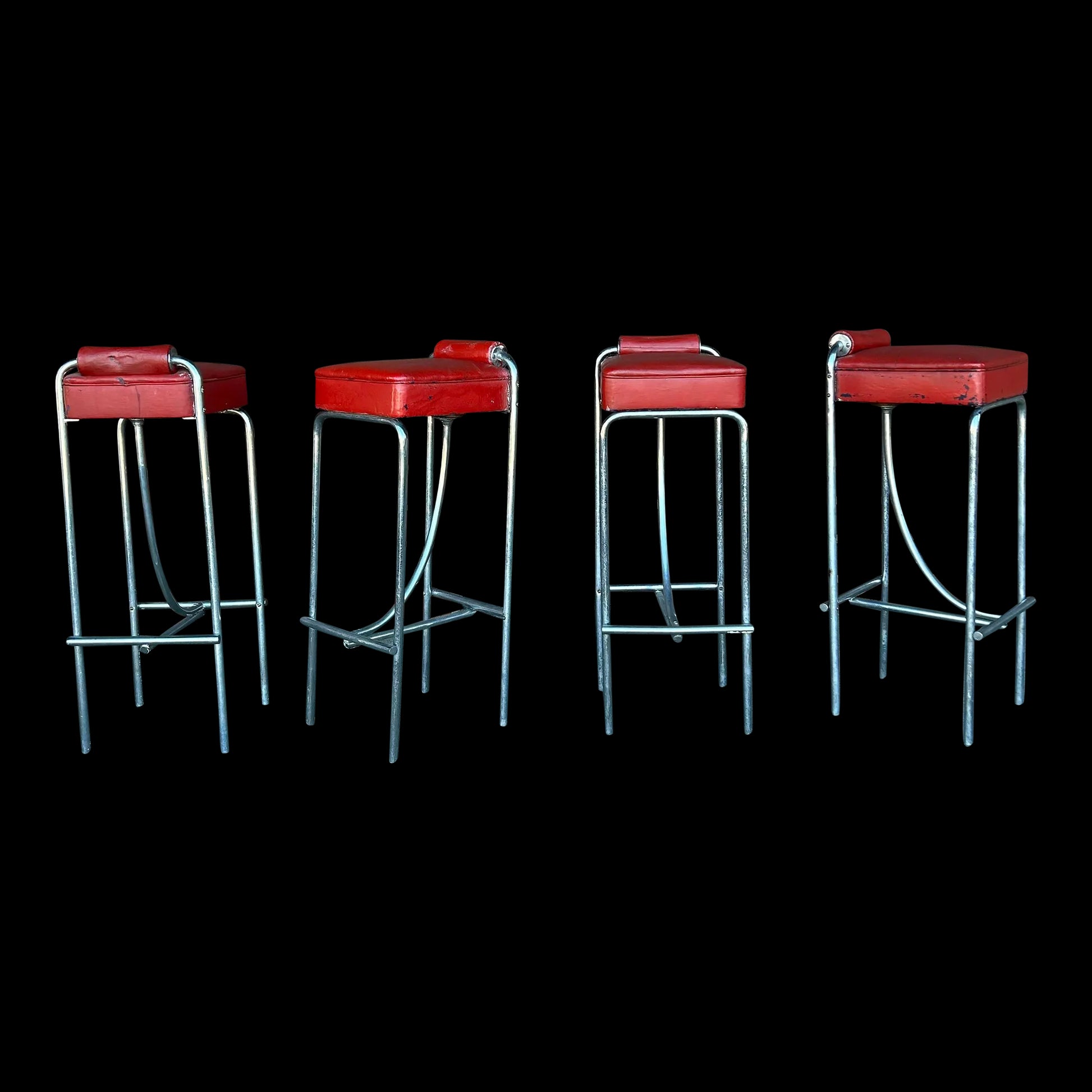 Set of 4 Art Deco Machine Age Bar Stools From Empire State Building