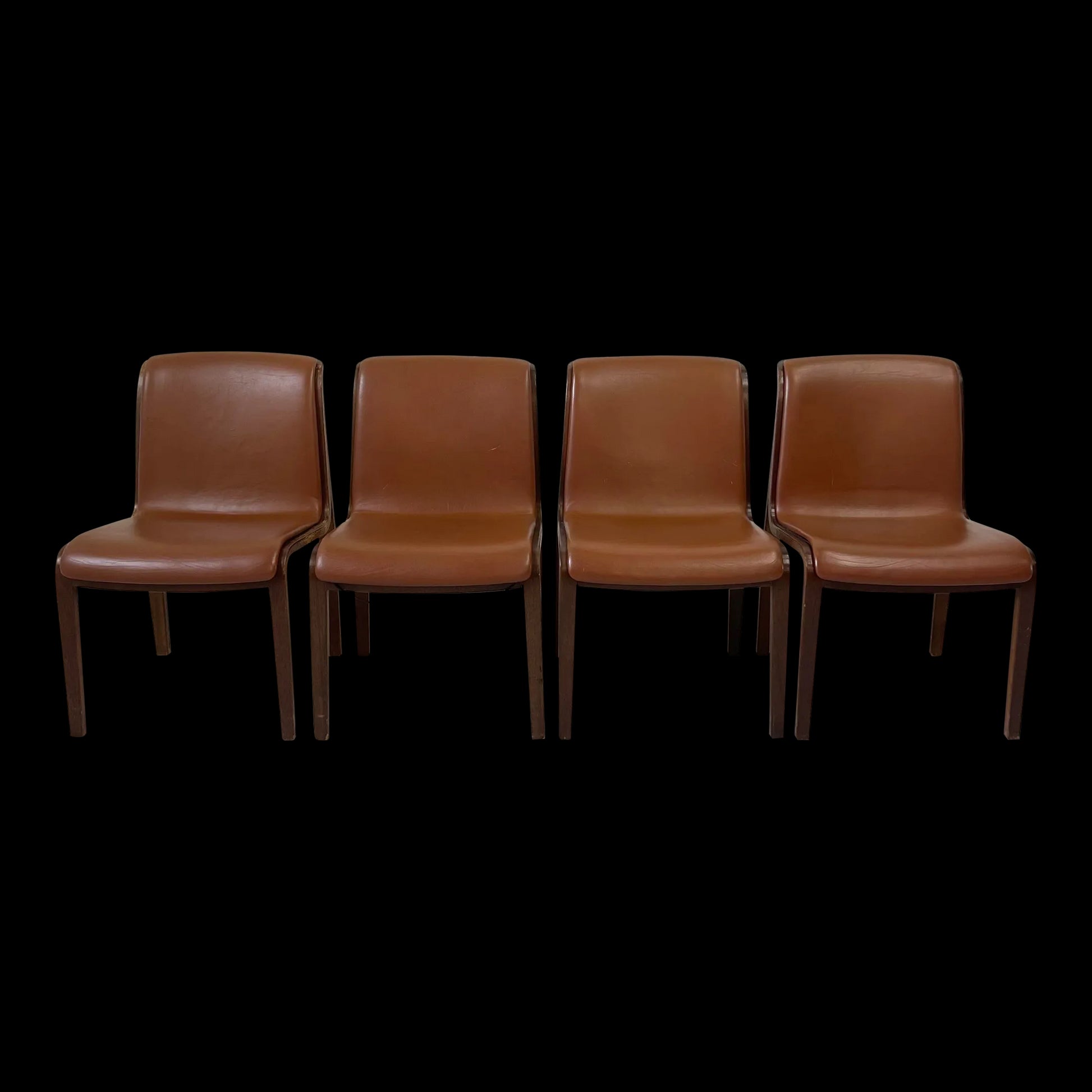Set of 4 Bill Stephens for Knoll Leather Bentwood Chairs