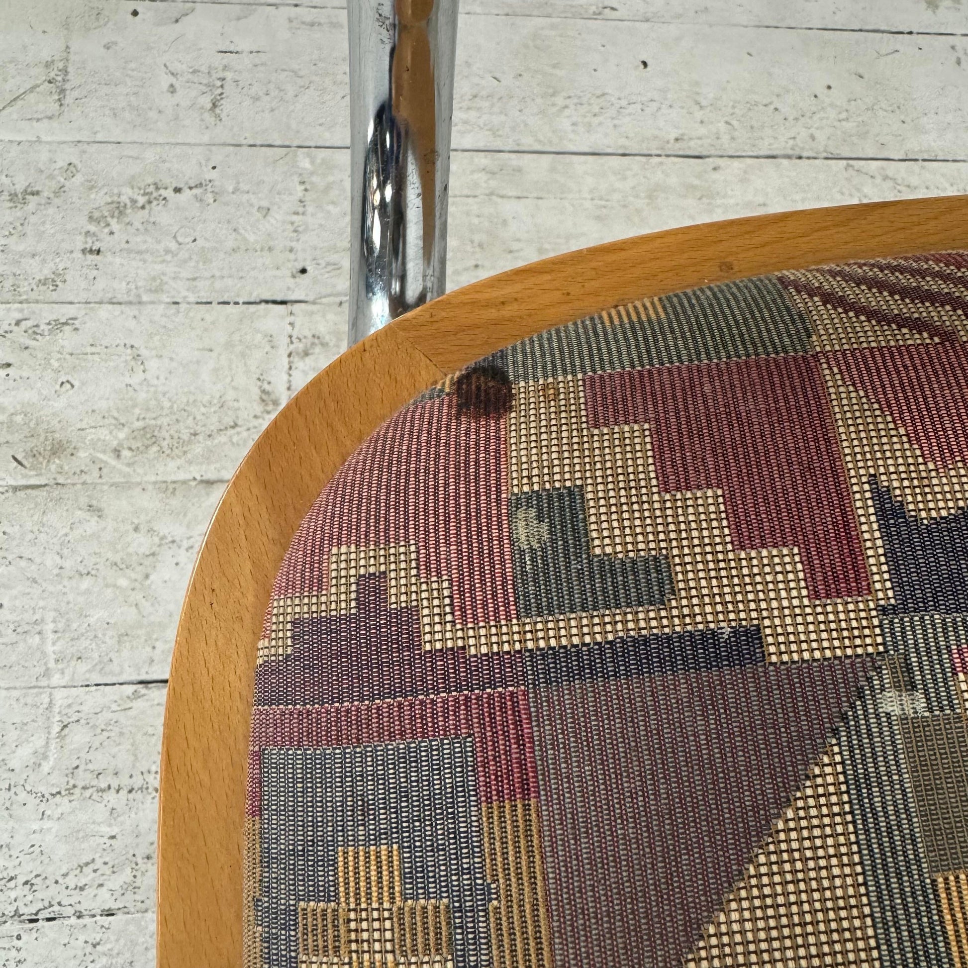 Set of 4 Italian Cantilever Chrome and Oak Dining Chairs Marcel Breuer Cesca