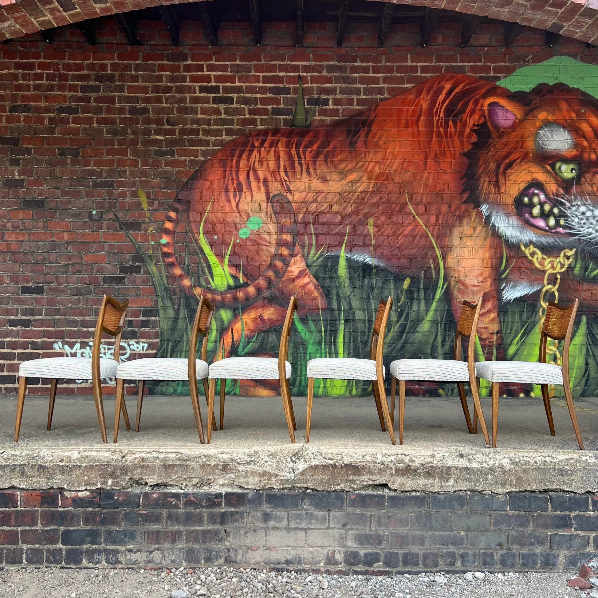 Set of 6 Harvey Probber Caned Back Dining Chairs