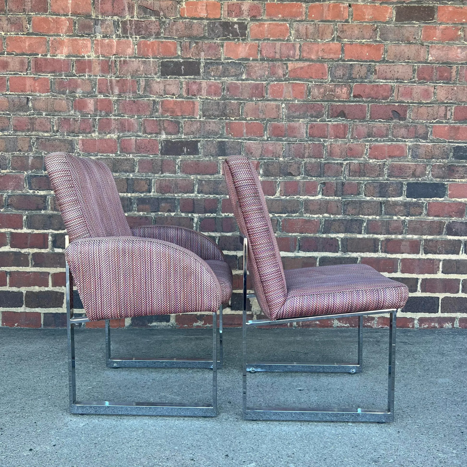 Set of 6 Thayer Coggin chrome chairs on wheels. 4 arm chairs and two side chairs chairs have hidden rollers on bottom of legs.