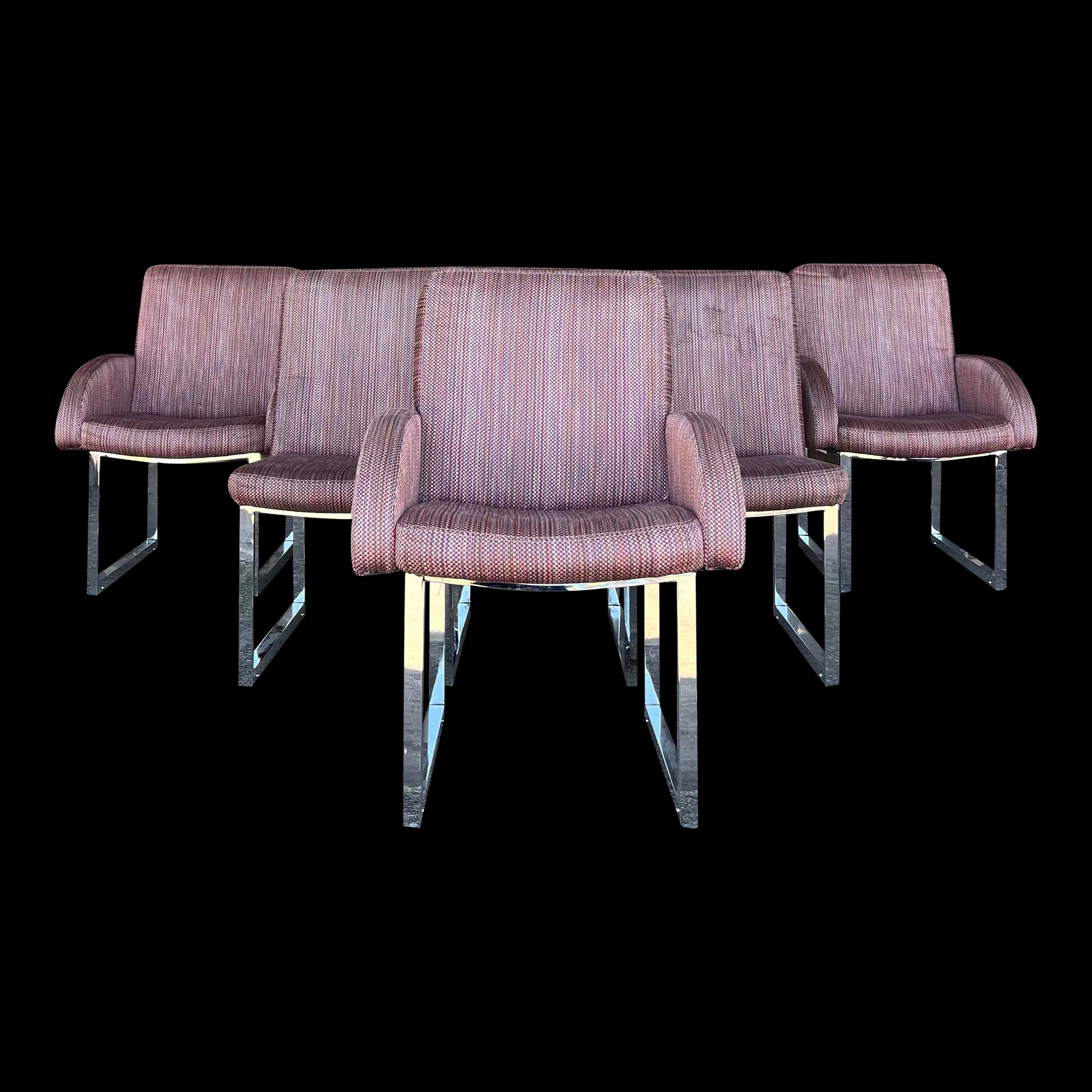 Set of 6 Thayer Coggin Chrome Dining Chairs on Hidden Wheels