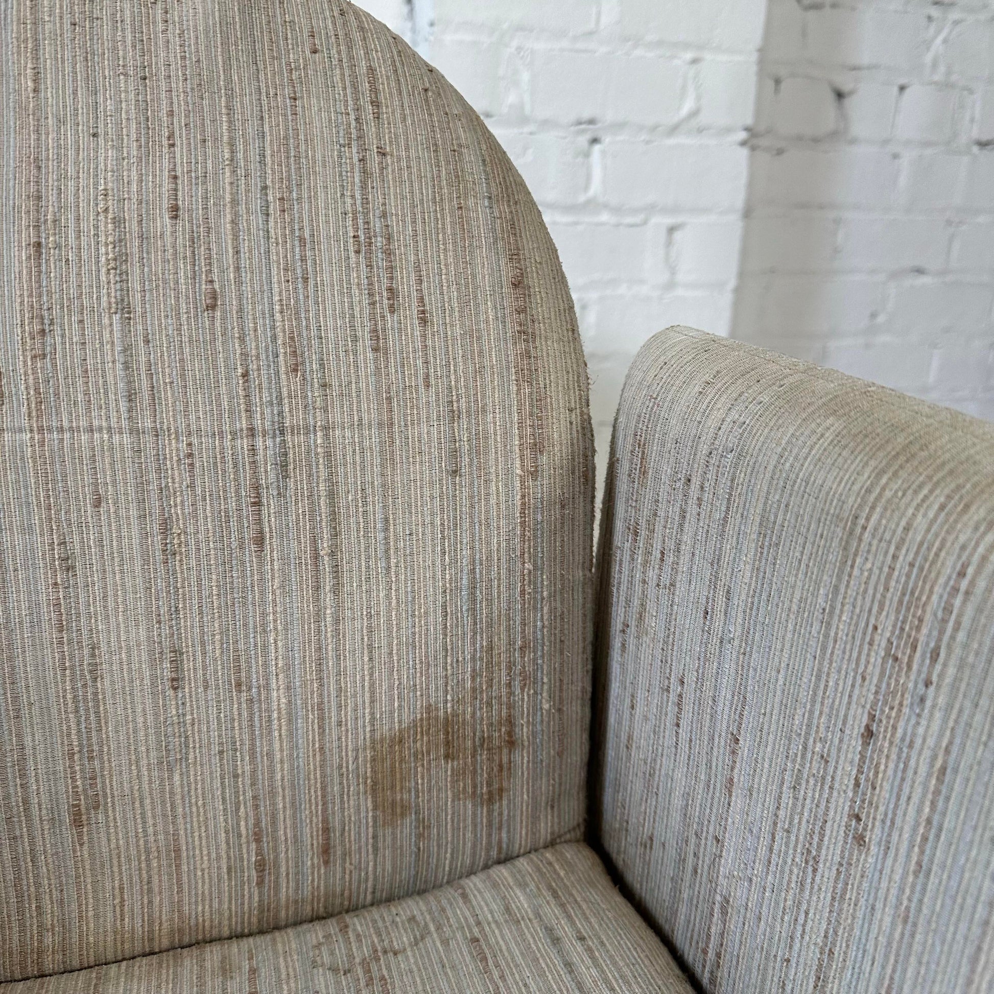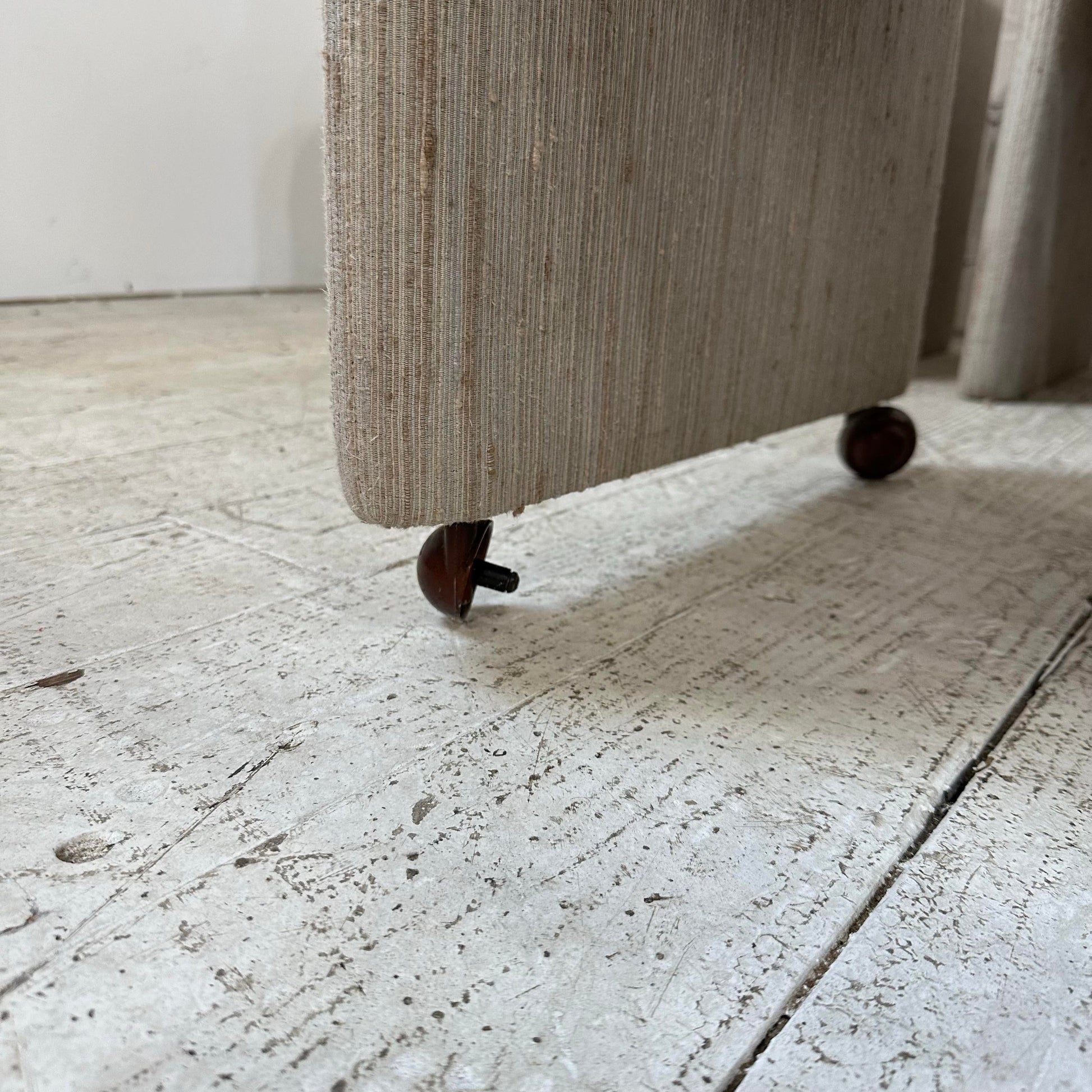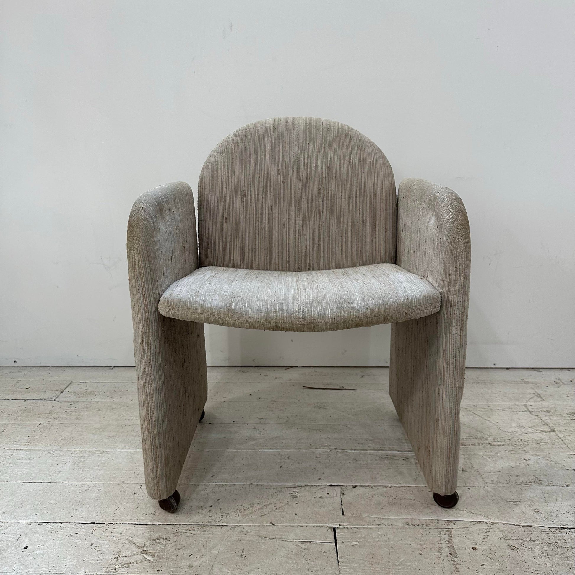 Set of 8 1980s “chiclet” style dining chairs that are fully upholstered from head-to-toe with casters. They are tagged “Collier”.