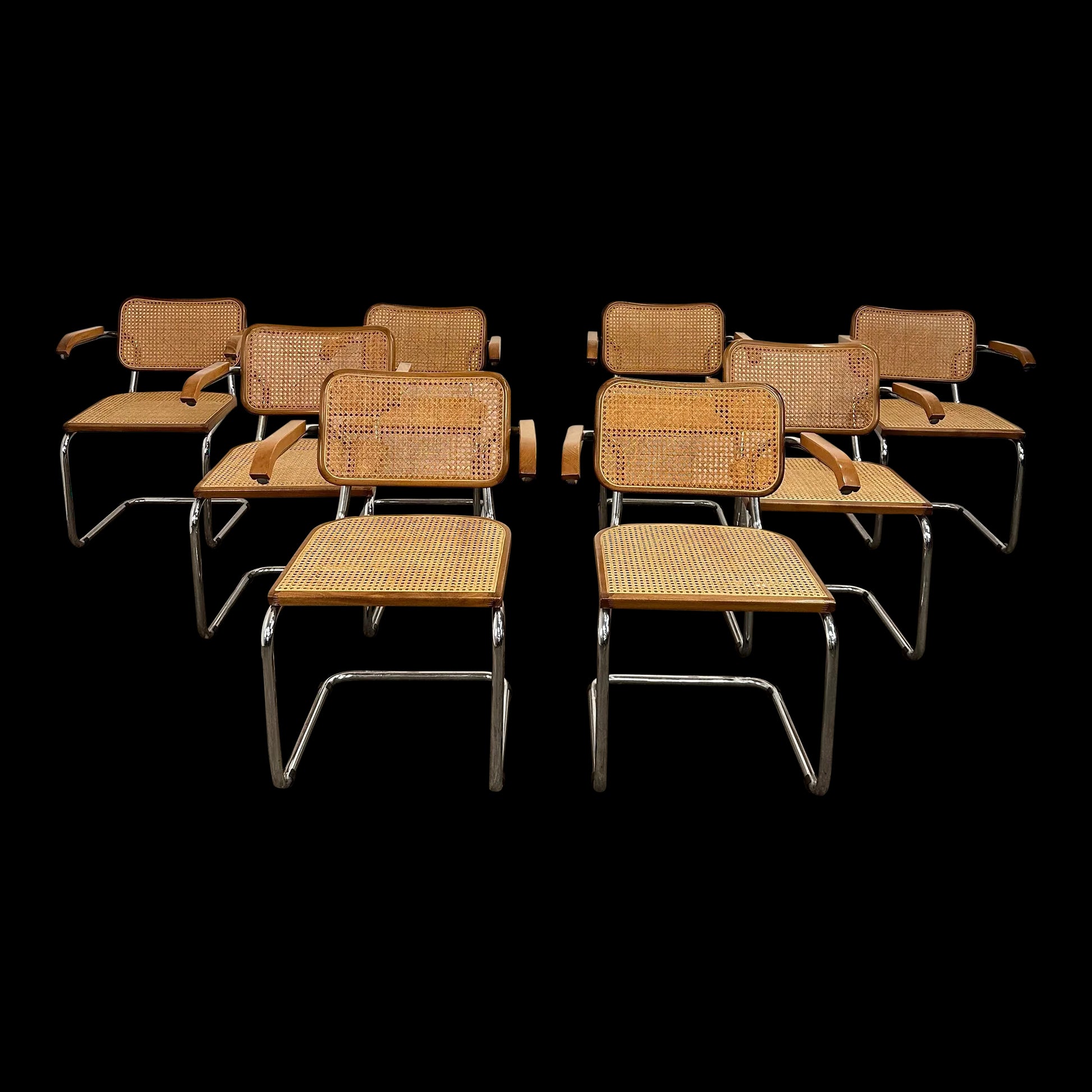 Set of 8 Marcel Breuer for Knoll Cesca Dining Arm Chairs Made in Italy