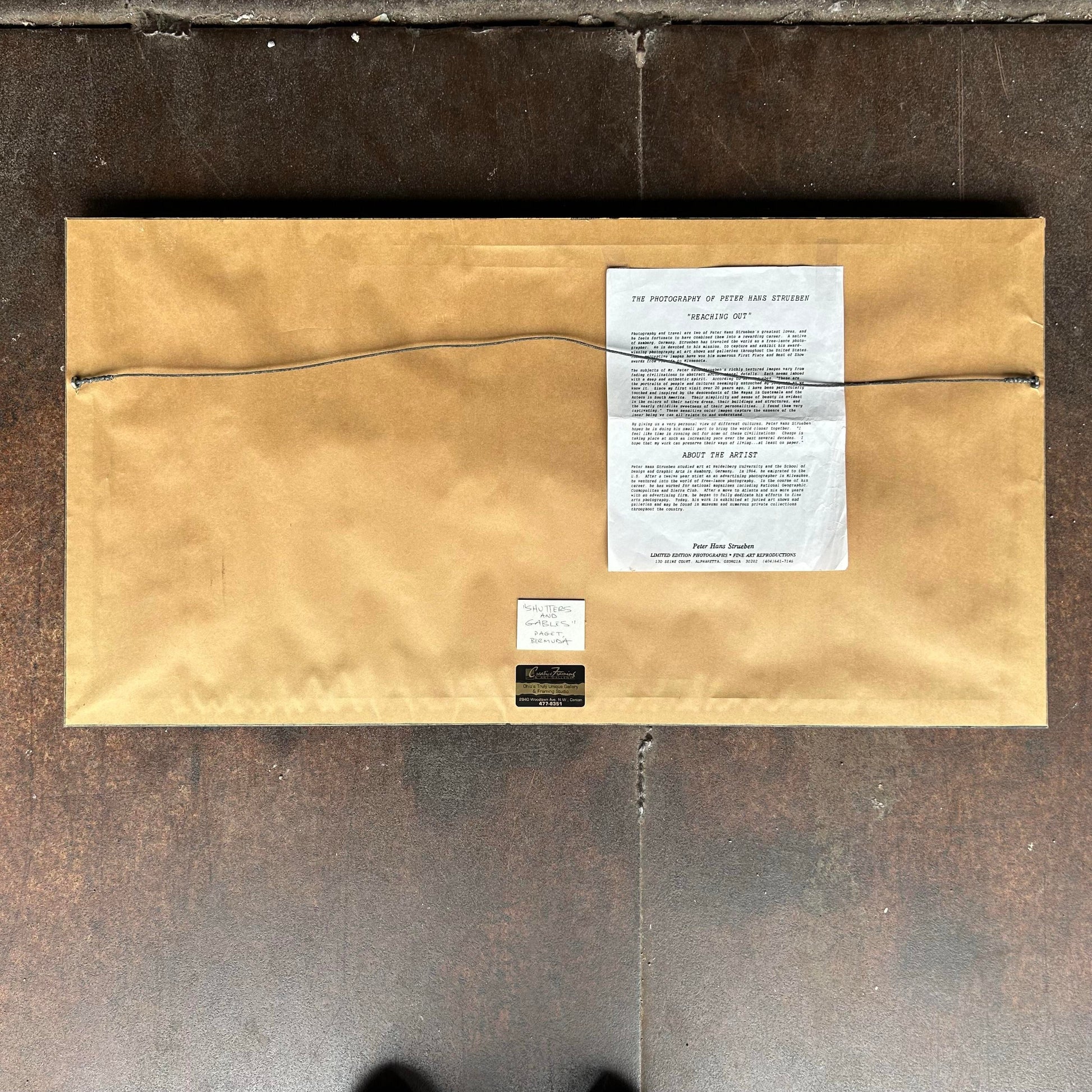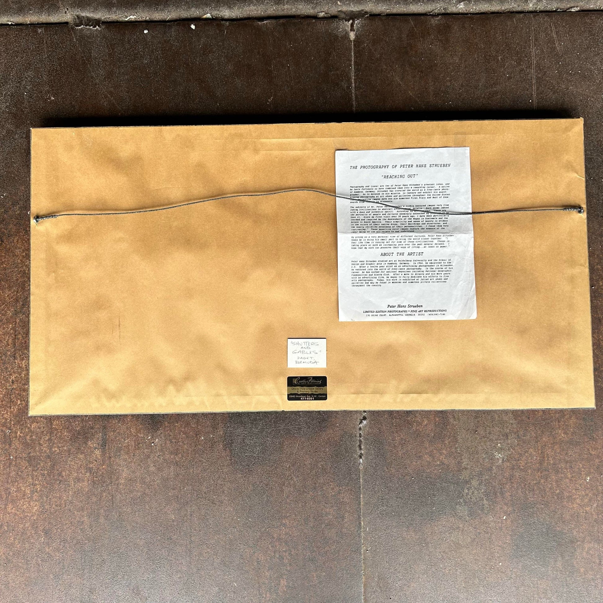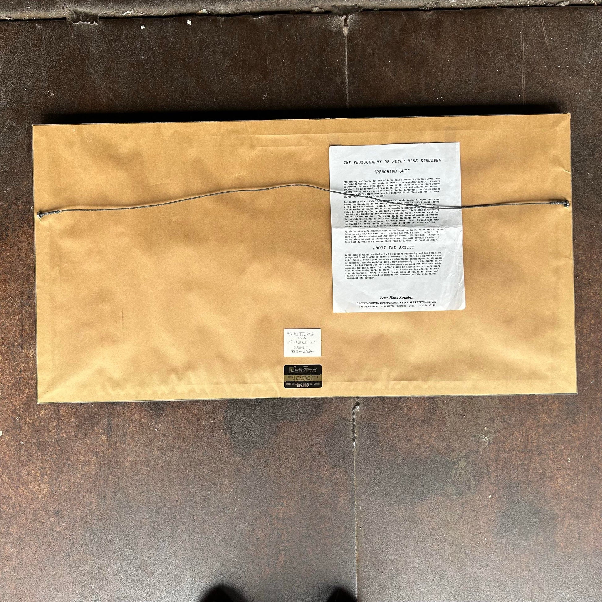 The set of three photographs depicts roofs in the city of Paget Bermuda. The set of photographs has been professionally framed in a black frame and glass. There’s a short biography on the back for the photographer. The set is signed and pencil and dated 1991.