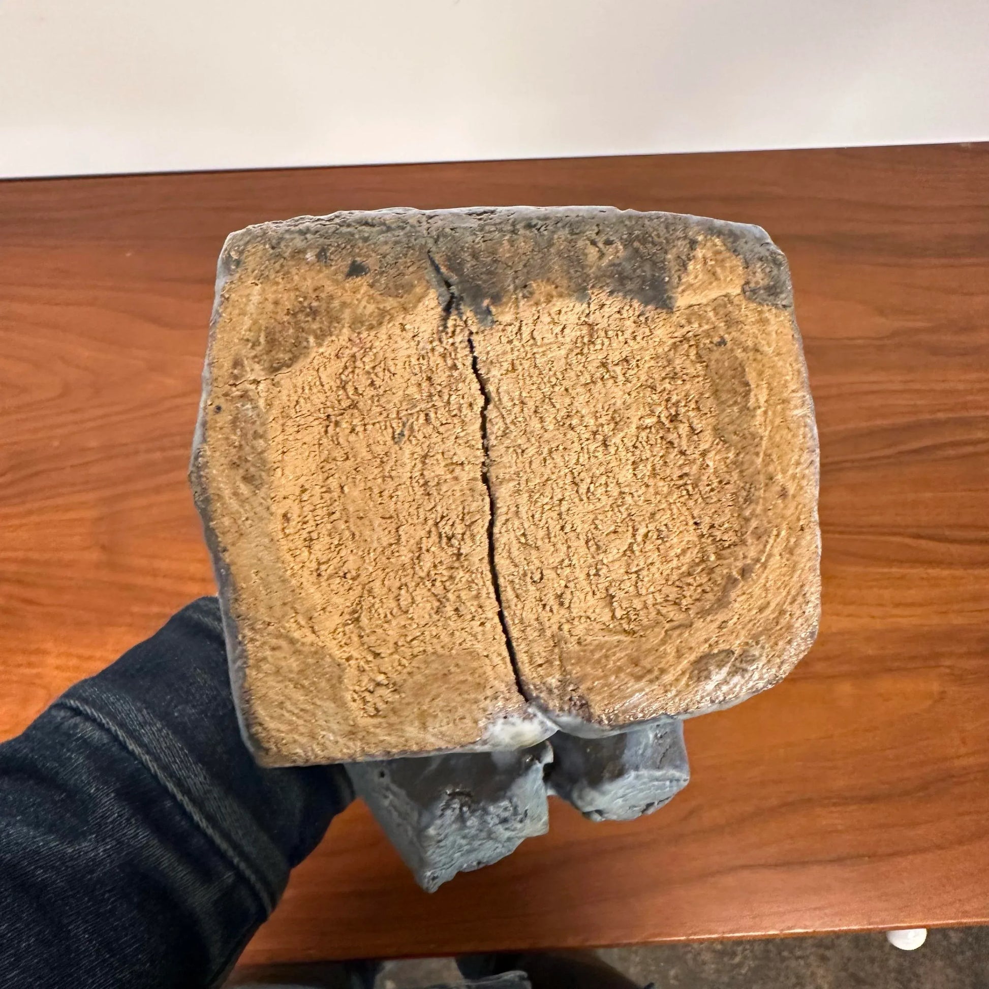 Solid Ceramic Nude Sculpture in Blue Glaze Unknown Artist