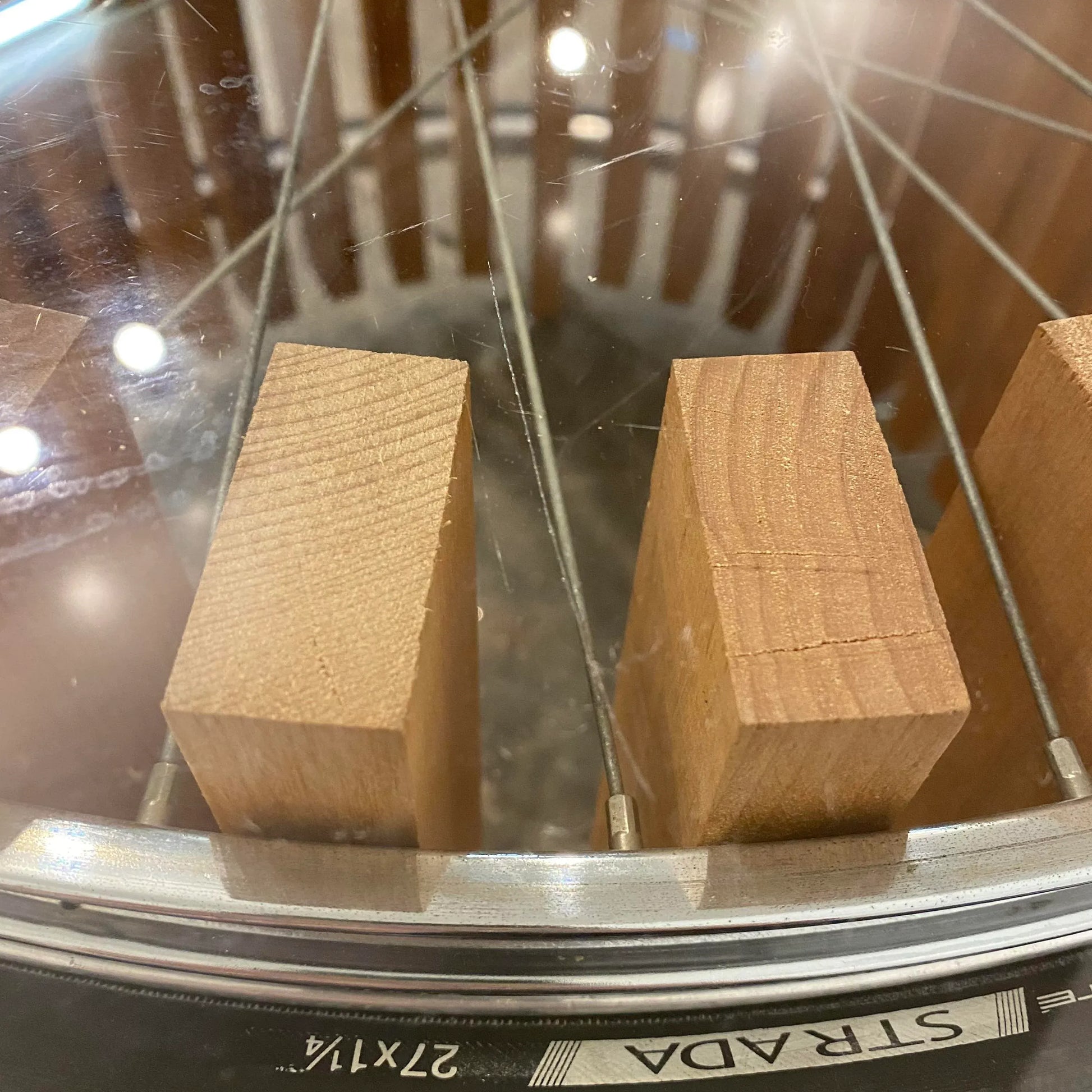 Studio bicycle table made by K. Griesen in Northeast Ohio. This unique side table uses Strada bike tires, glass, and wood to create a truly one of a kind piece. Would be perfect for a bicycle enthusiast, or anyone with a love of eclectic and one off items.